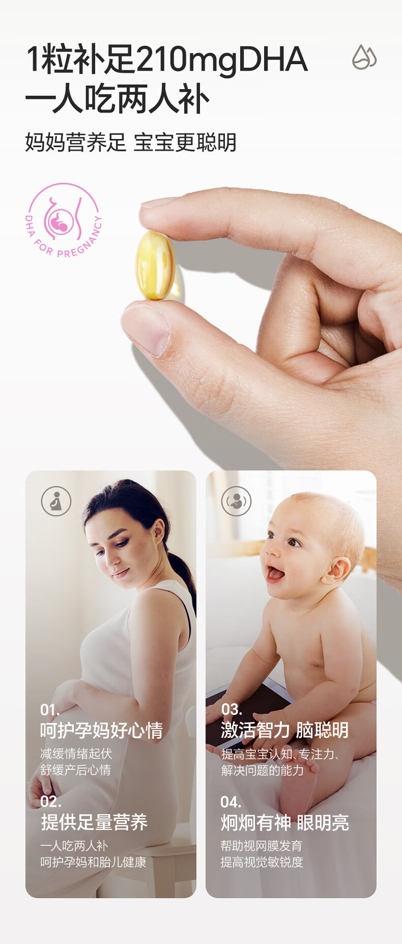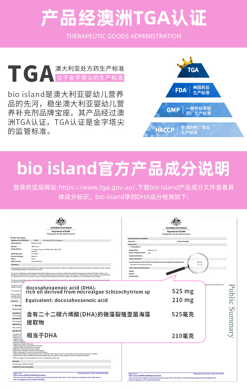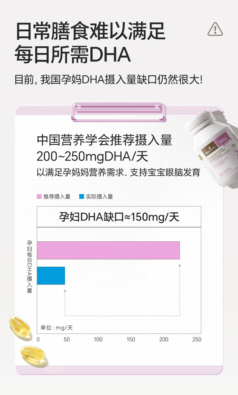 Bio Island佰澳朗德 孕妇DHA海藻油备孕期哺乳期软胶囊 60粒*3瓶 澳洲进口