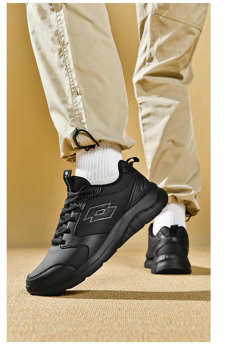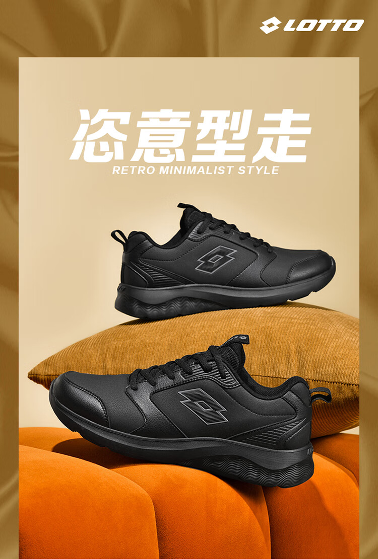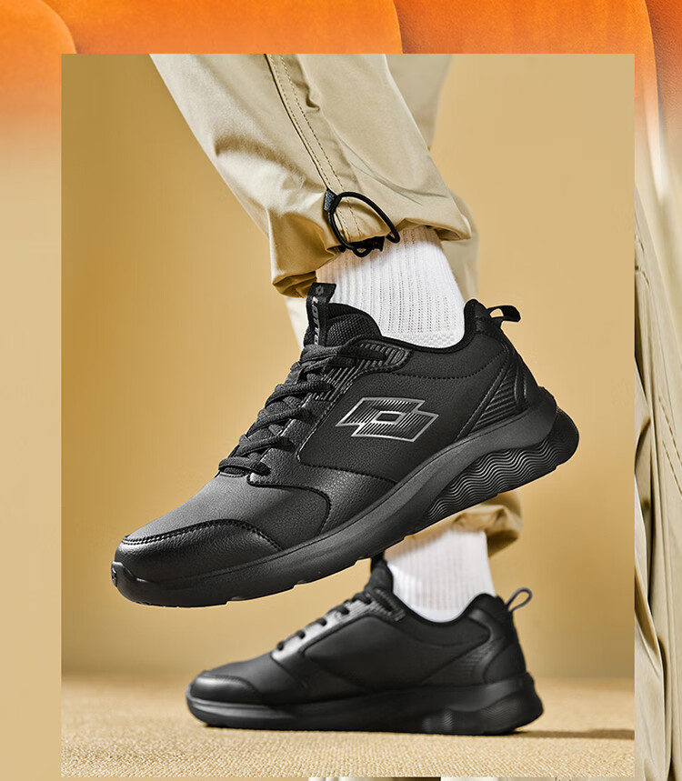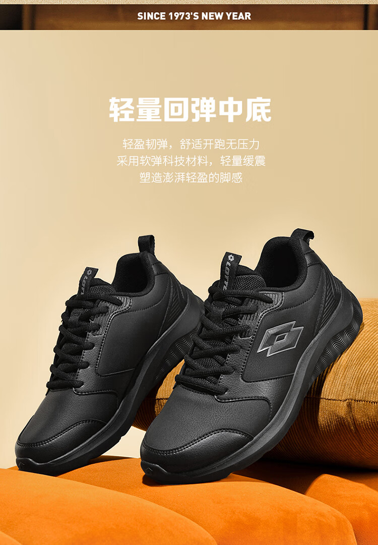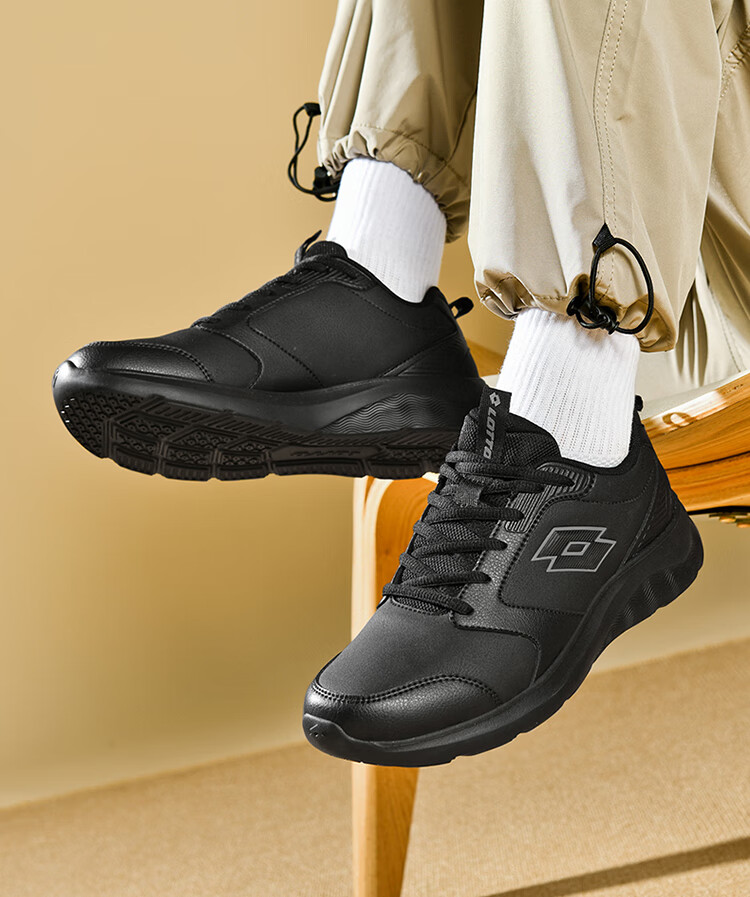 乐途(LOTTO)运动男鞋跑步鞋男秋冬加绒保暖皮面回弹缓震耐磨休闲鞋女鞋子 黑色【加绒保暖男款】 42