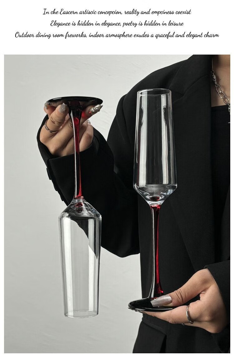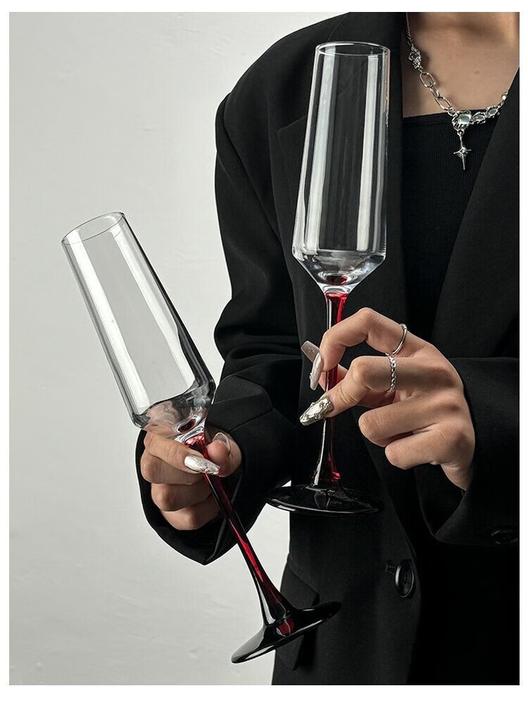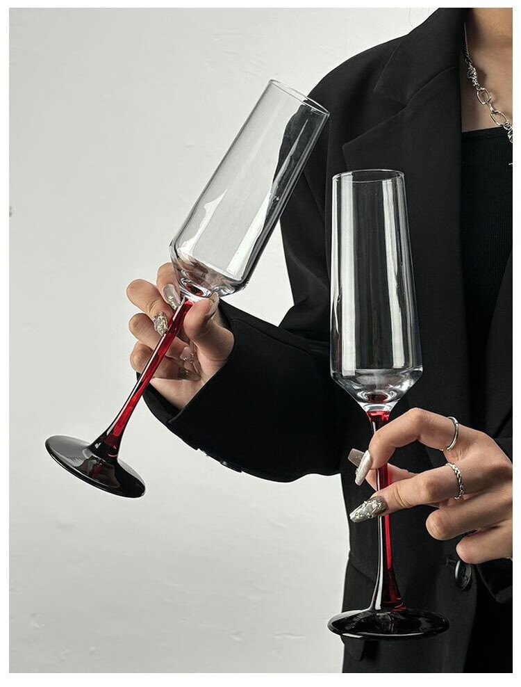 LZJV欧式红杆香槟杯家用高级感创意水晶玻璃红酒杯高脚杯一对起泡酒杯 红杆香槟杯