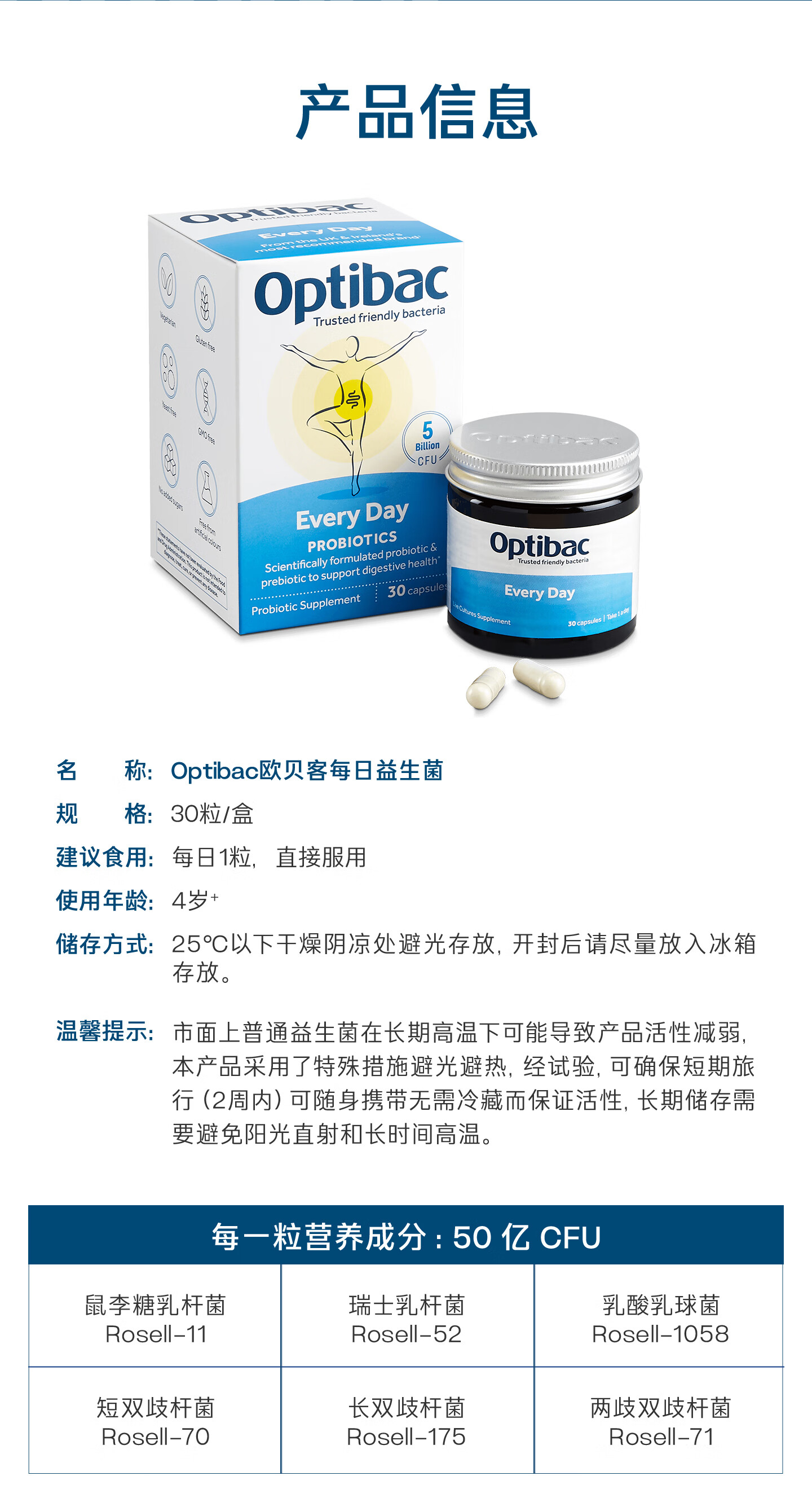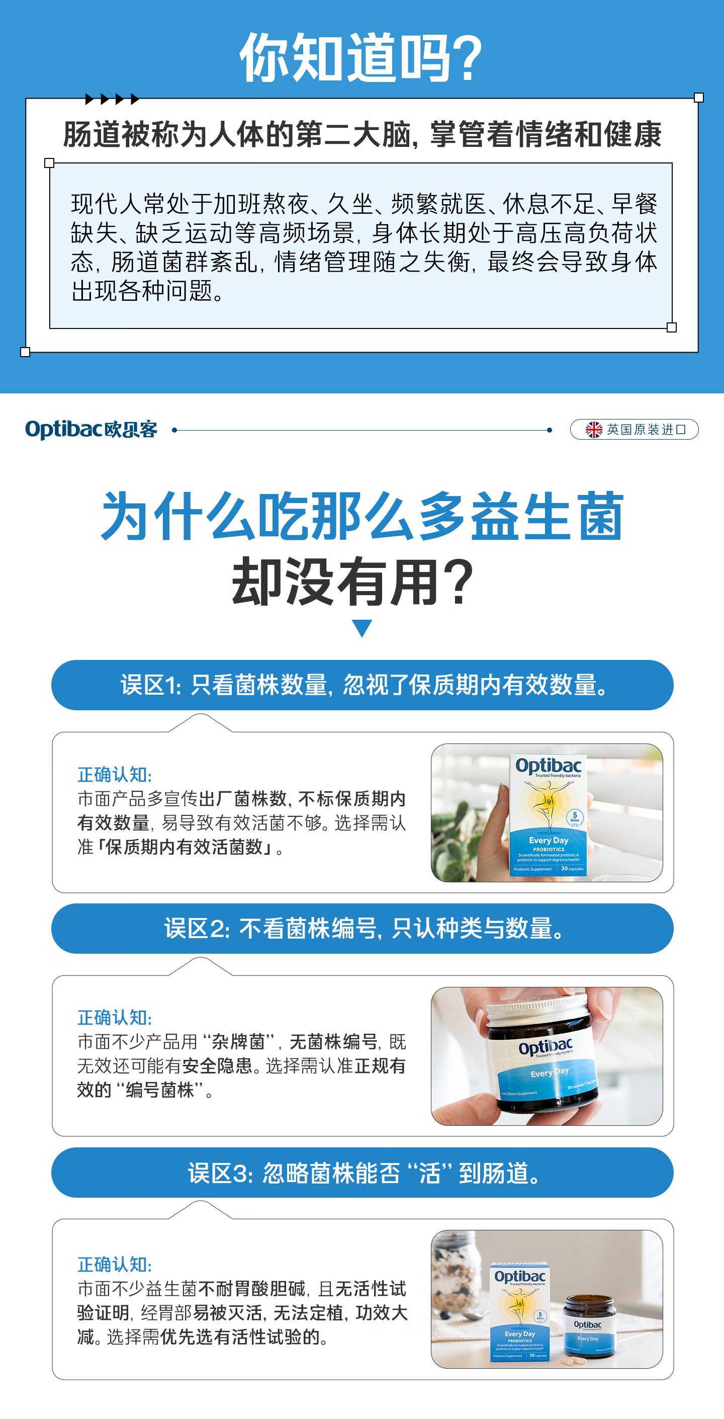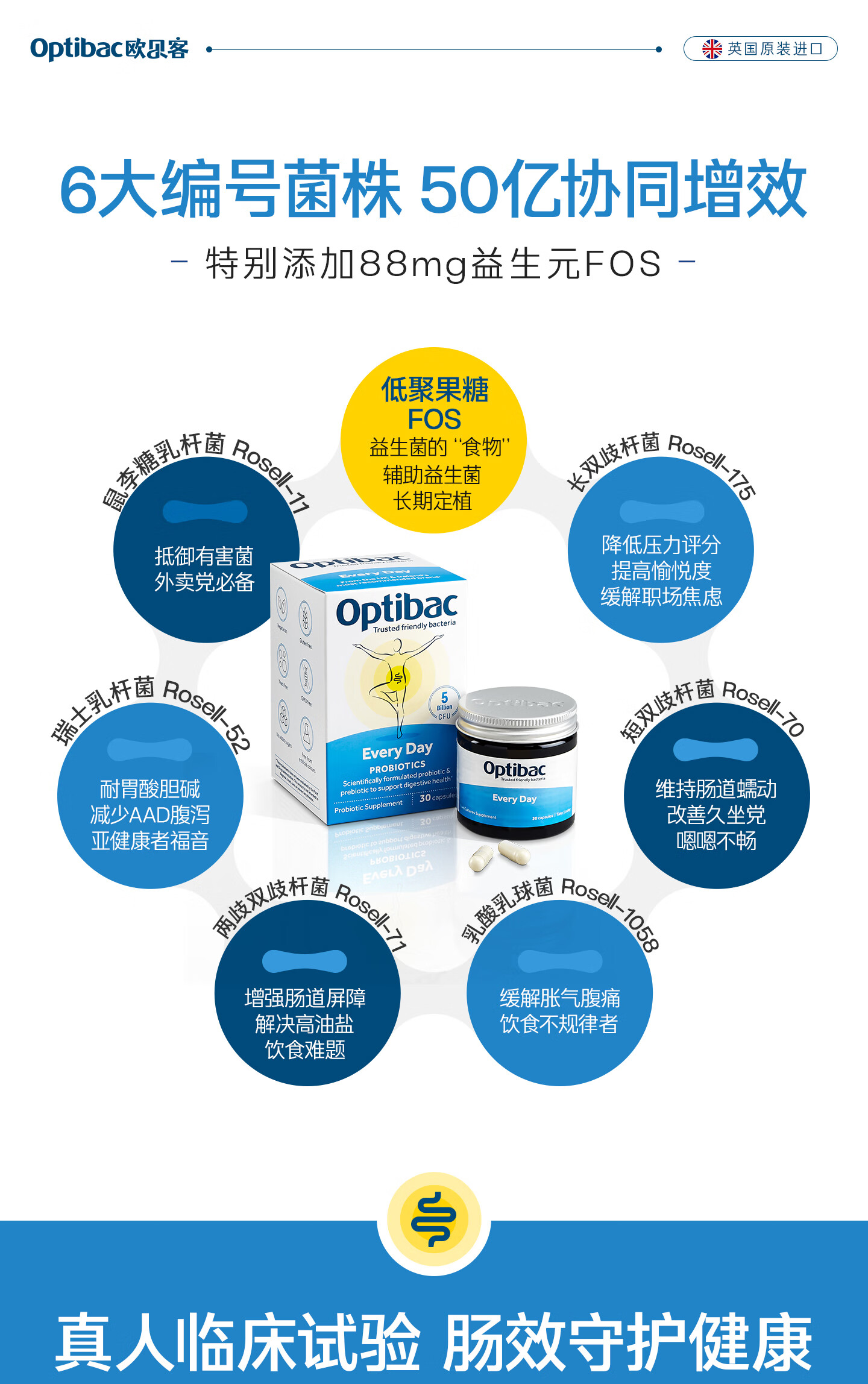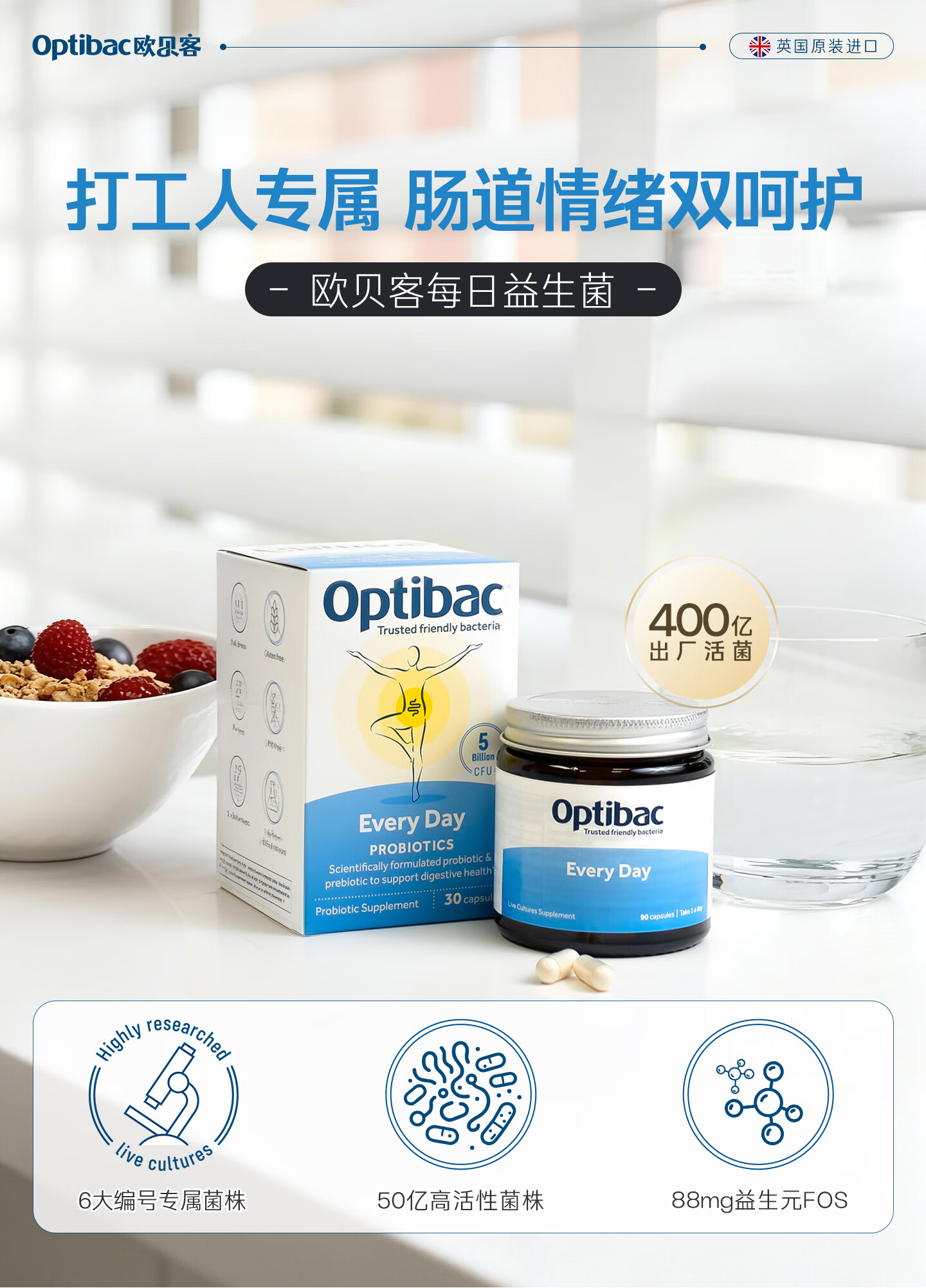 OptiBac欧贝客每日益生菌基础版进口益生元调理焦虑压力菌群送礼长辈父母 【守护肠胃健康】30粒*3盒