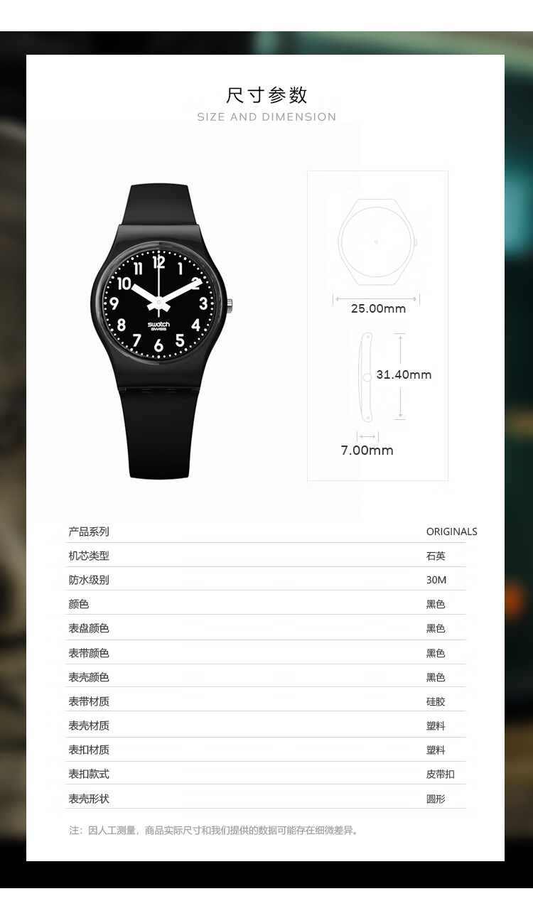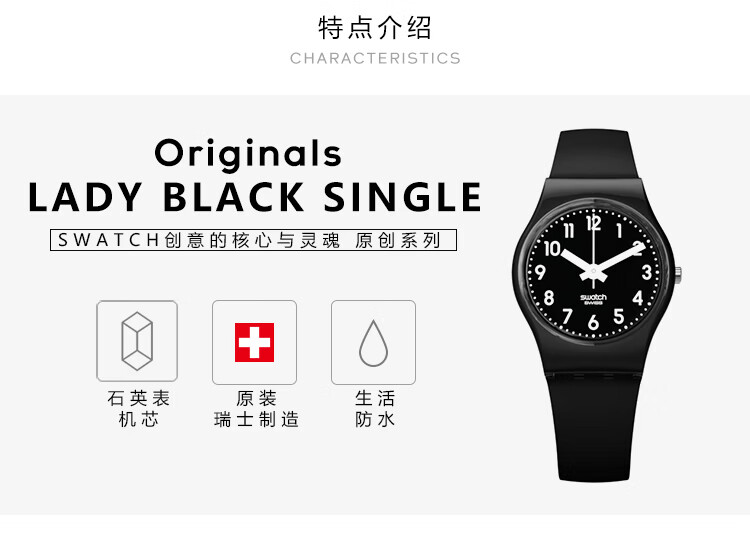 斯沃琪(Swatch)瑞士手表 原创系列纯黑之境石英女表 纯黑之境 LB170E
