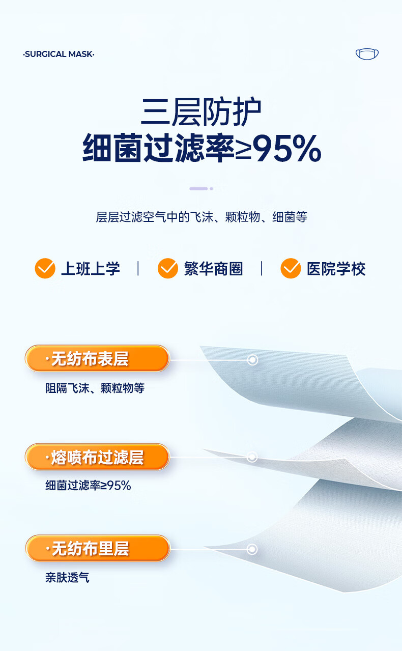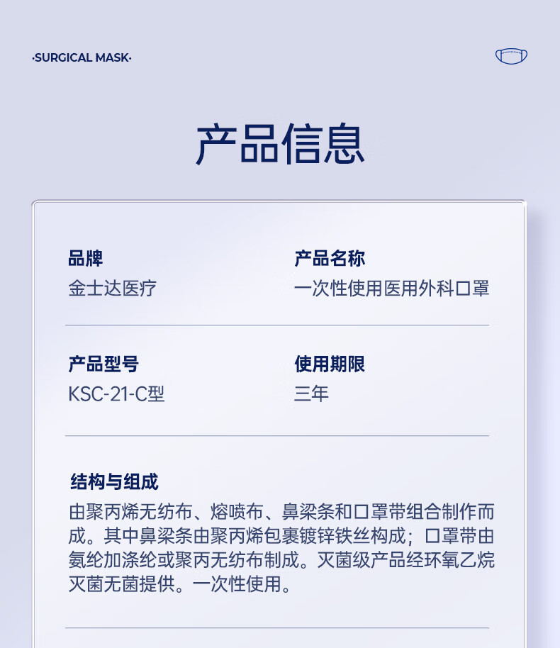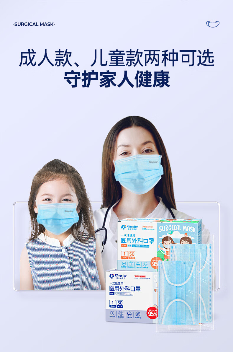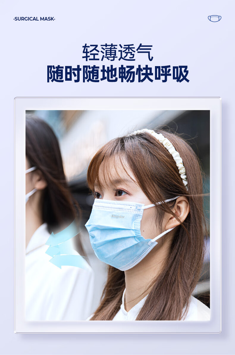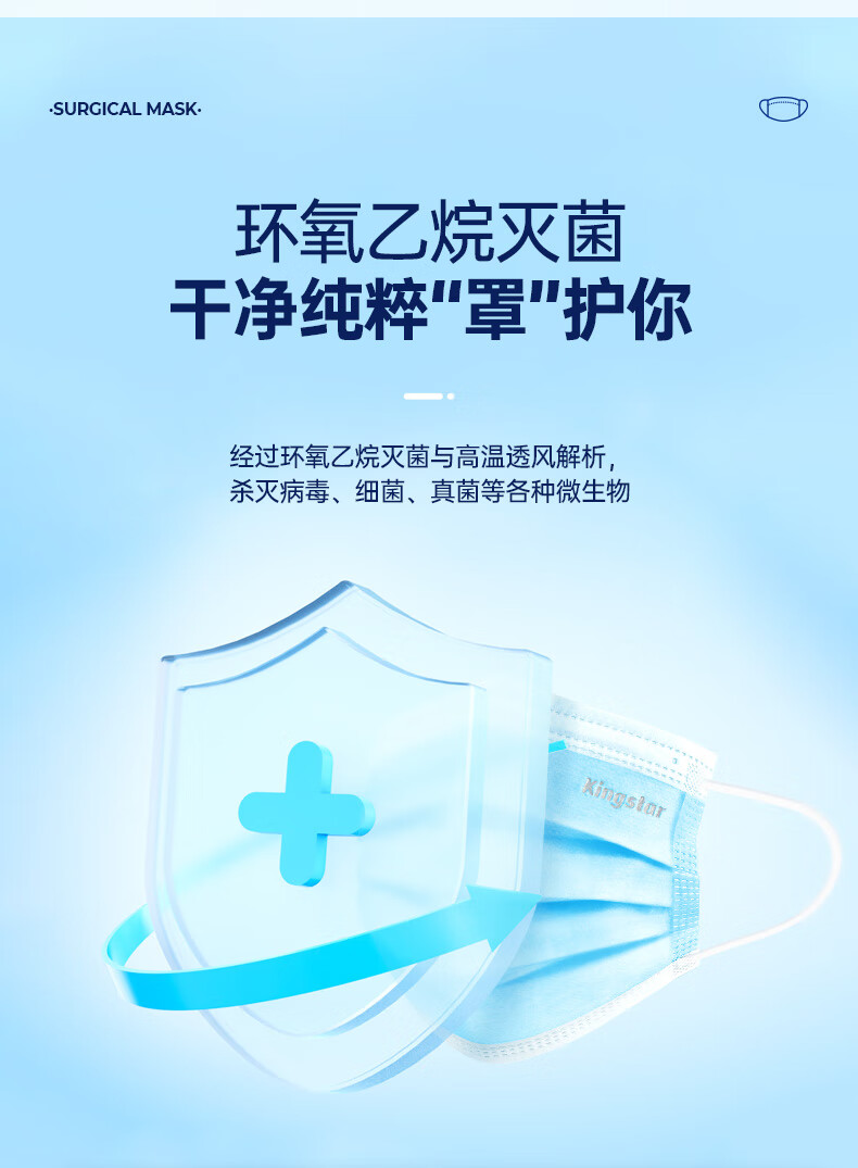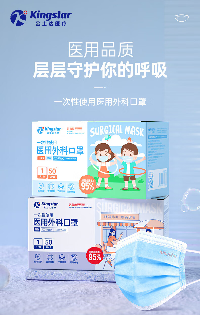 金士达tk一次性医用口罩 透气防尘 3层防护过滤细菌耳挂式成人口罩 【灭菌级独立装】成人外科口罩1盒共50只 口罩