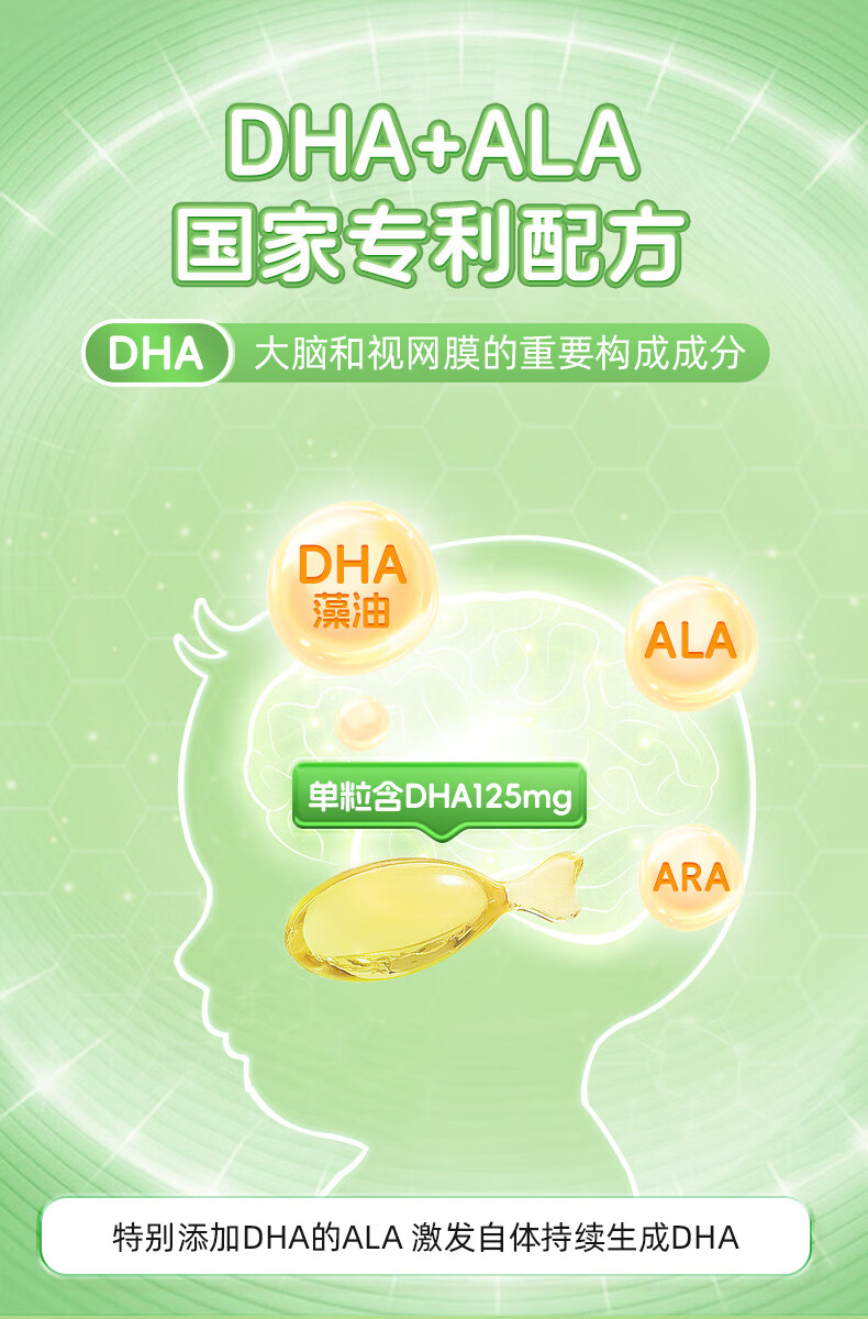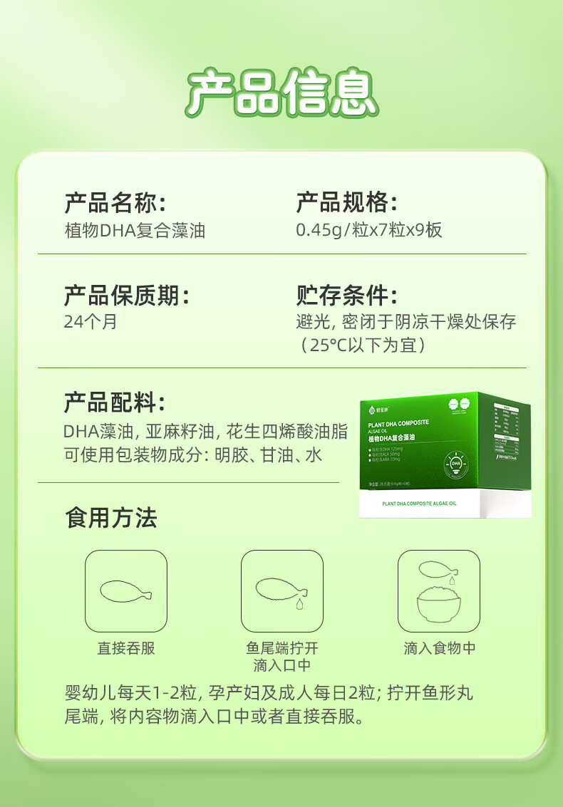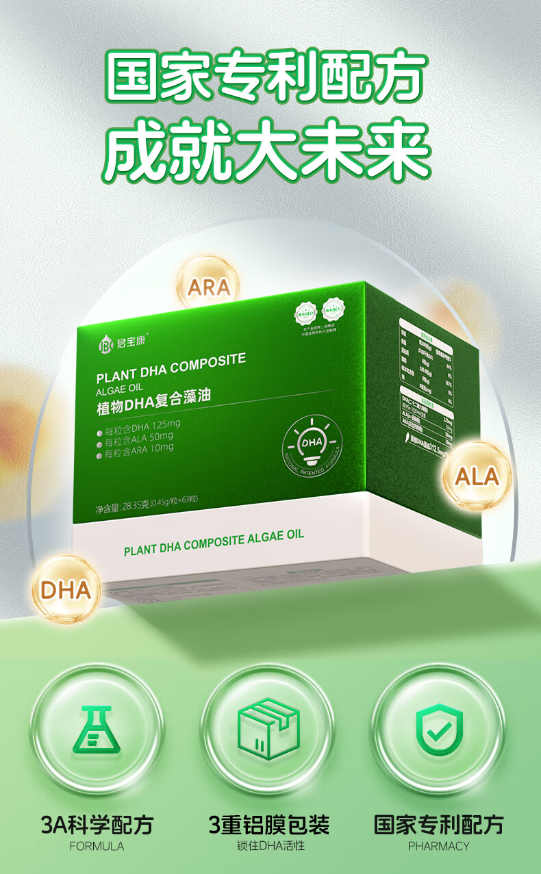 君宝康DHA植物藻油 高含量DHA 婴幼儿儿童宝宝孕妇dha 63粒/盒 【实惠套组】 63粒*3盒 加赠1盒,实发252粒
