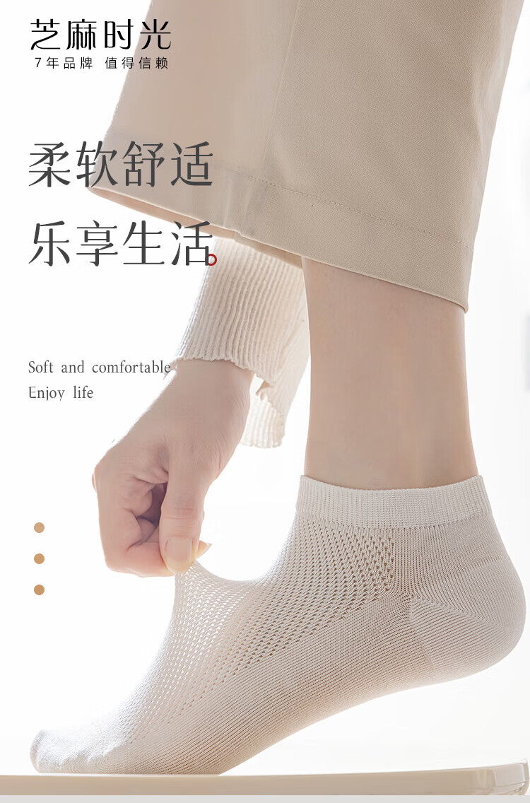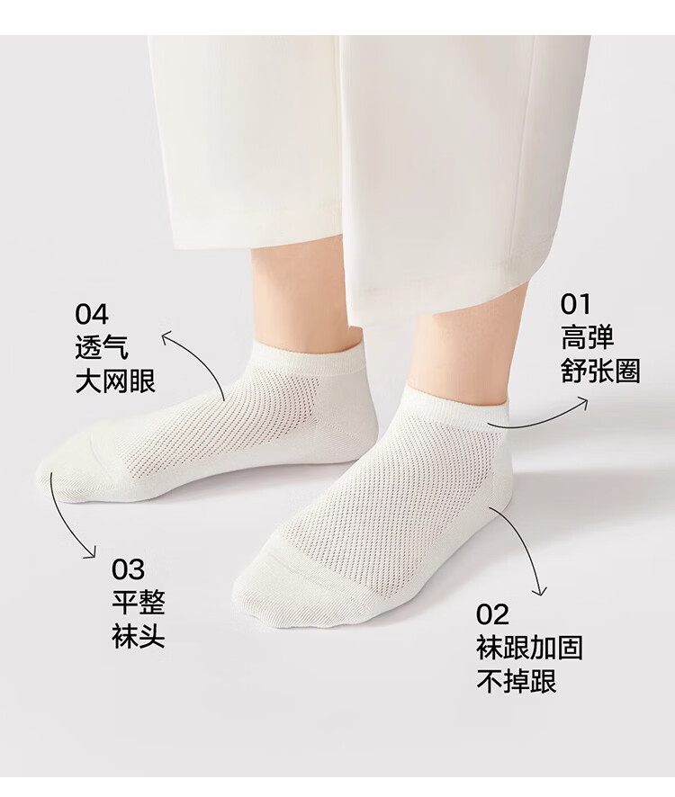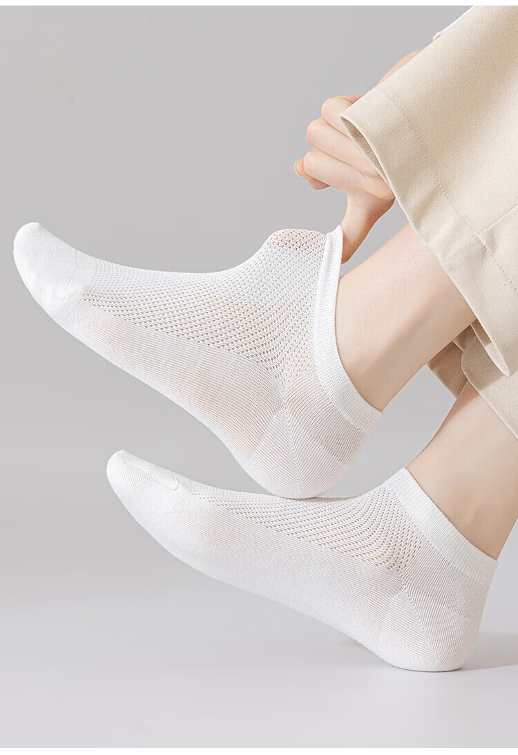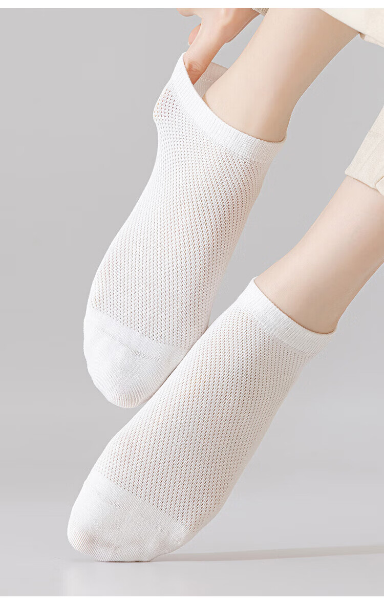 芝麻时光精梳棉 10A抗菌防臭袜子网眼透气女袜短款精梳棉 船袜 10混色 随机 10双 均码 【38-43码】