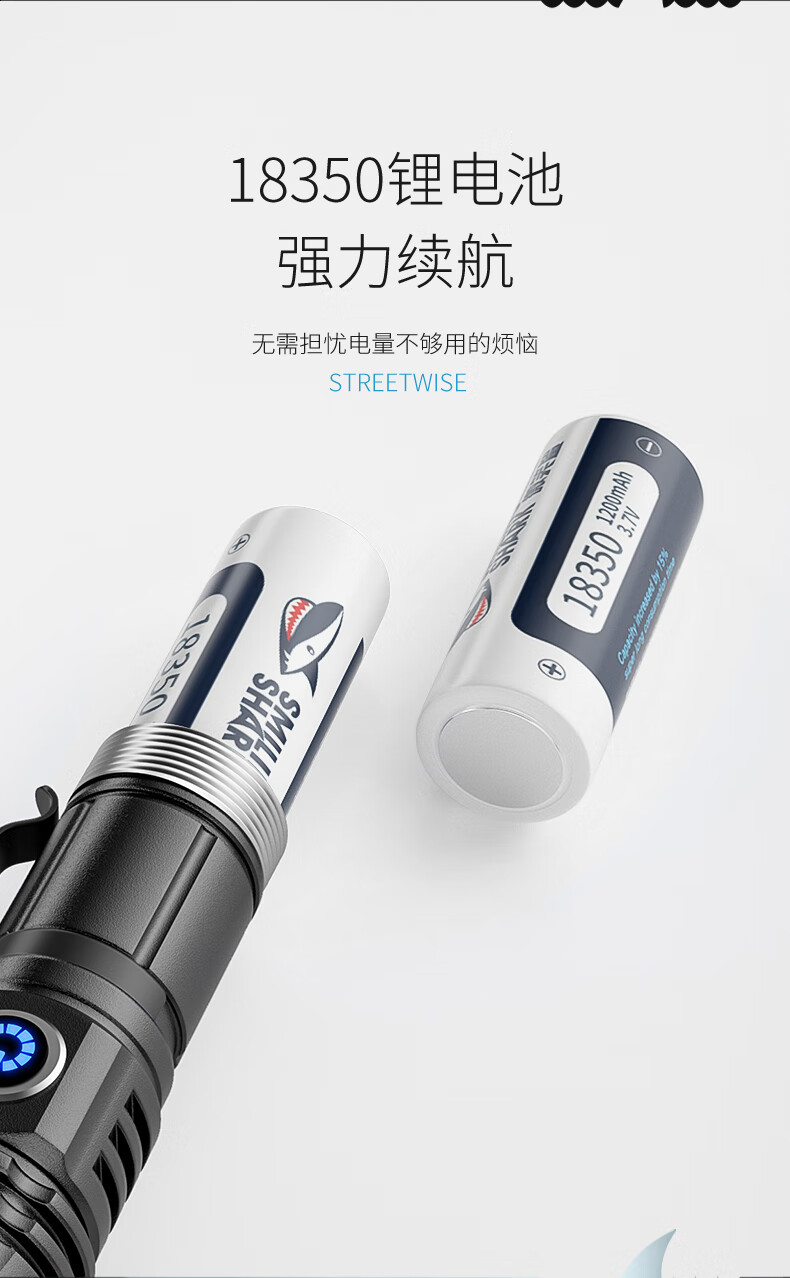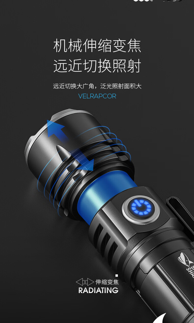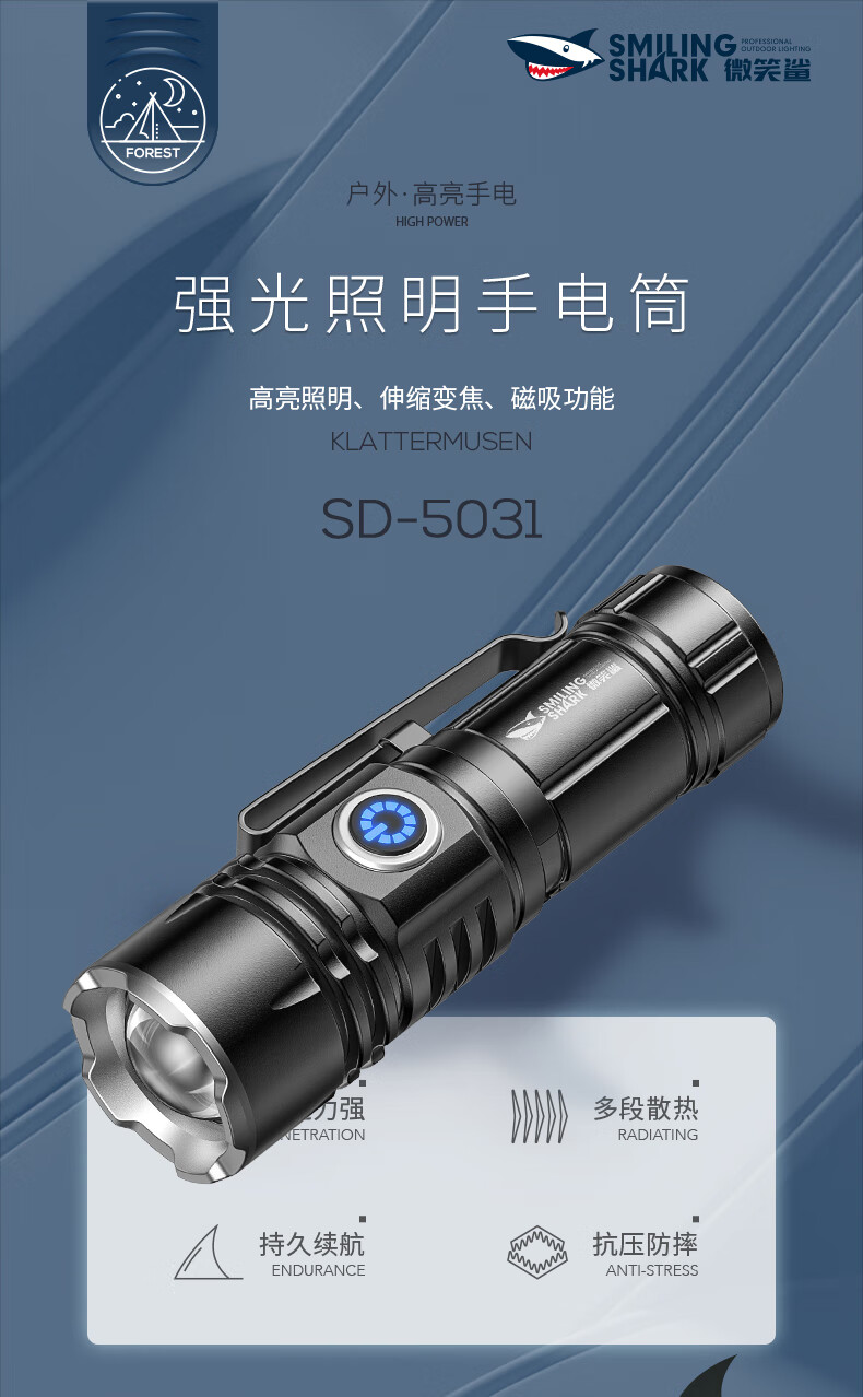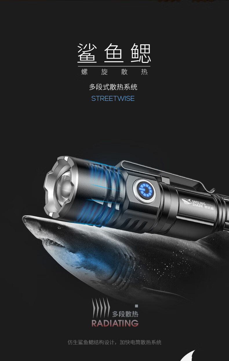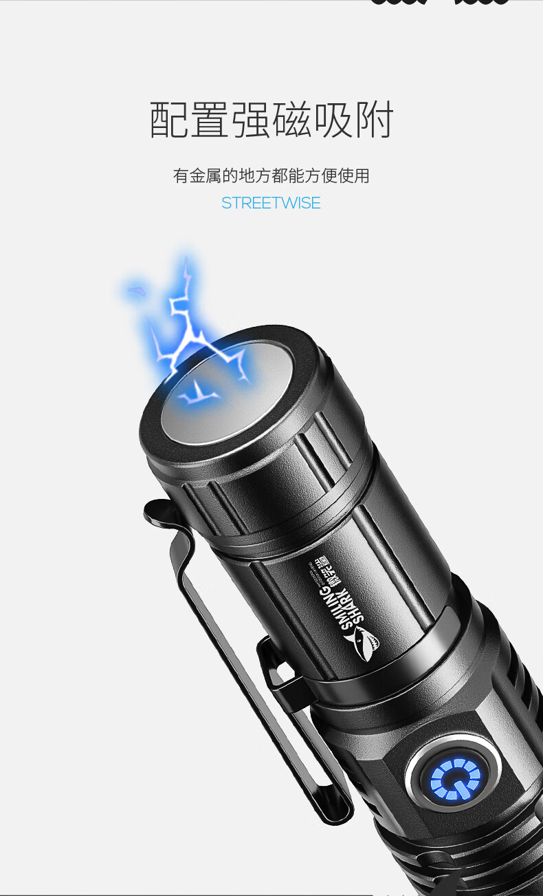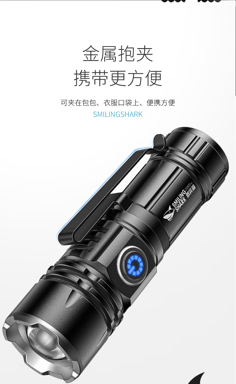微笑鲨迷你手电筒2026新款强光户外超亮充电变焦远射家用耐用小型便携式 M60灯芯【尾部强磁吸附/笔夹】配2电