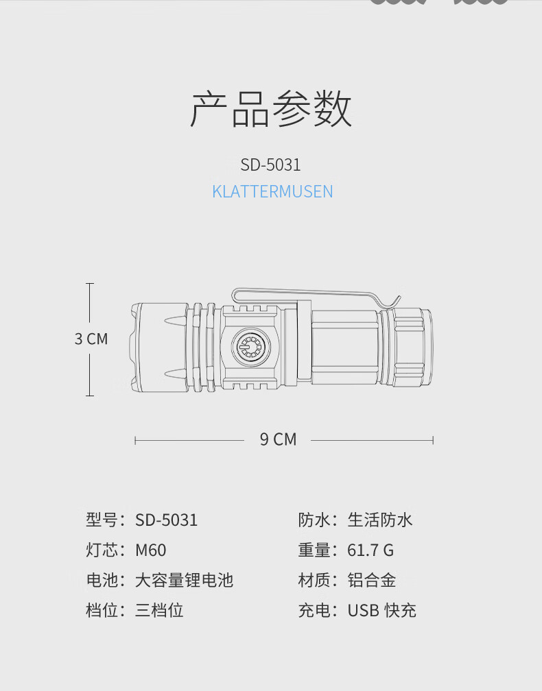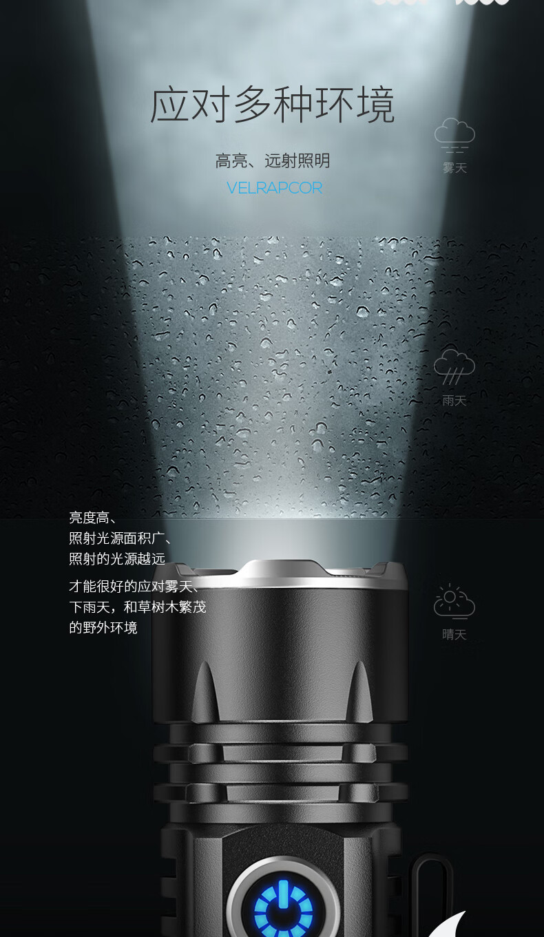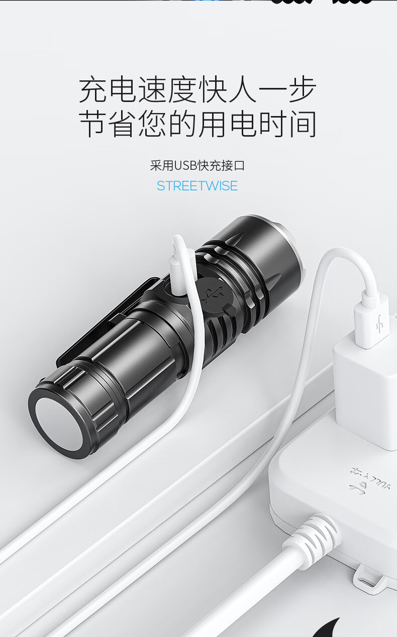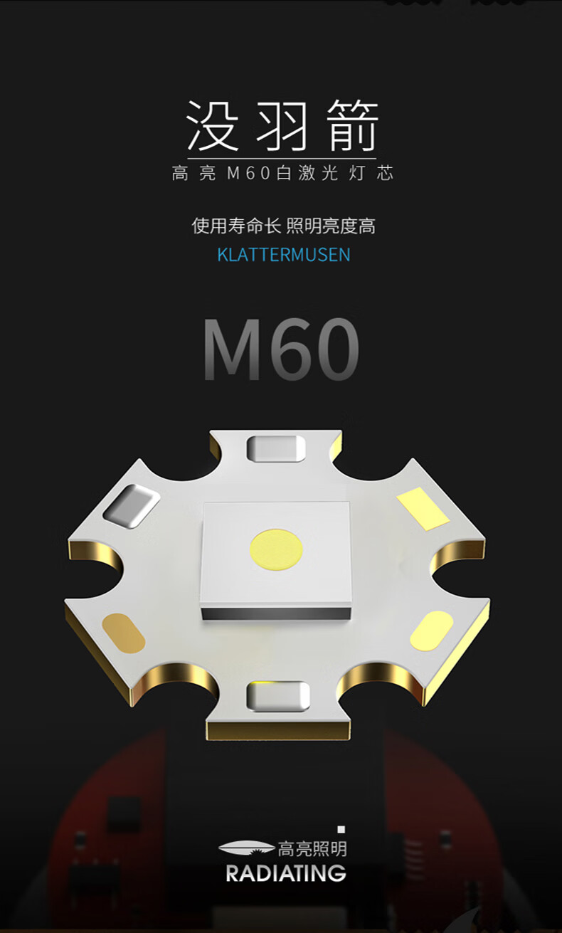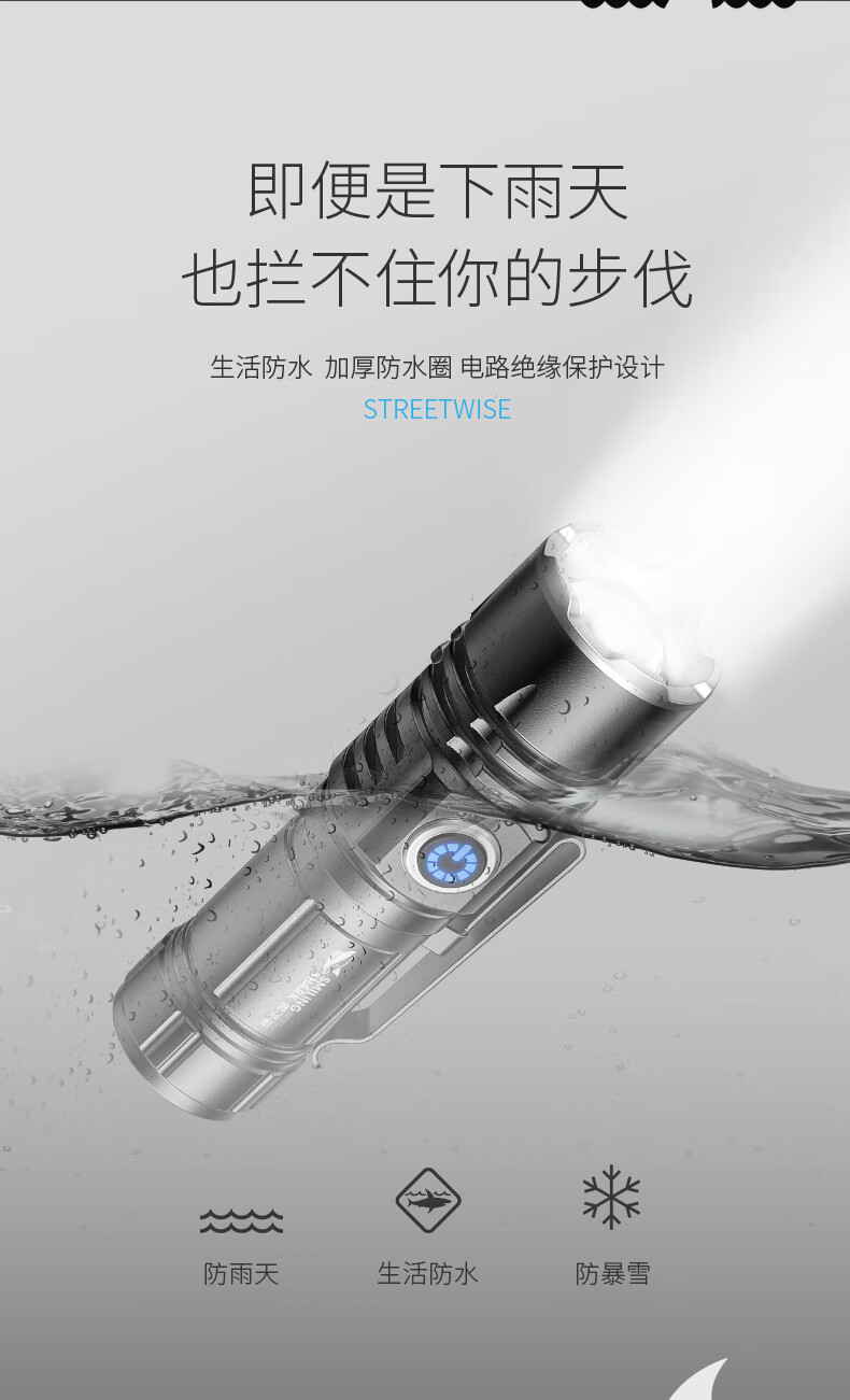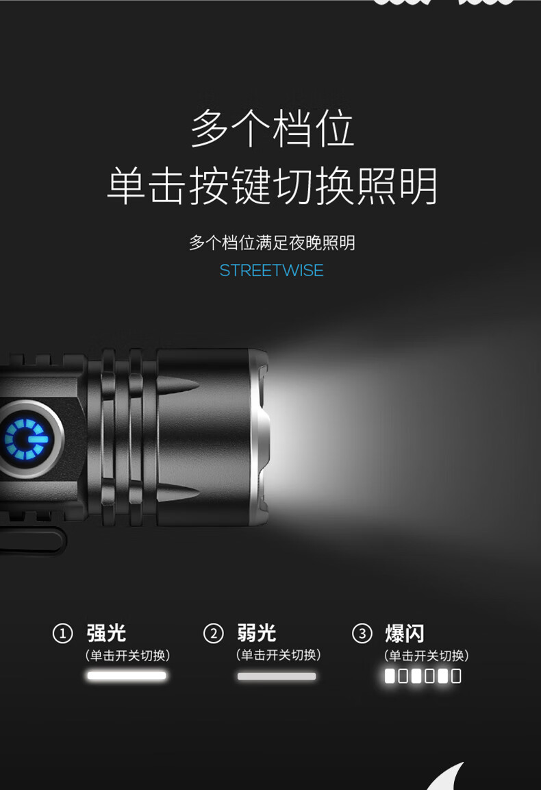 微笑鲨迷你手电筒2026新款强光户外超亮充电变焦远射家用耐用小型便携式 M60灯芯【尾部强磁吸附/笔夹】配2电