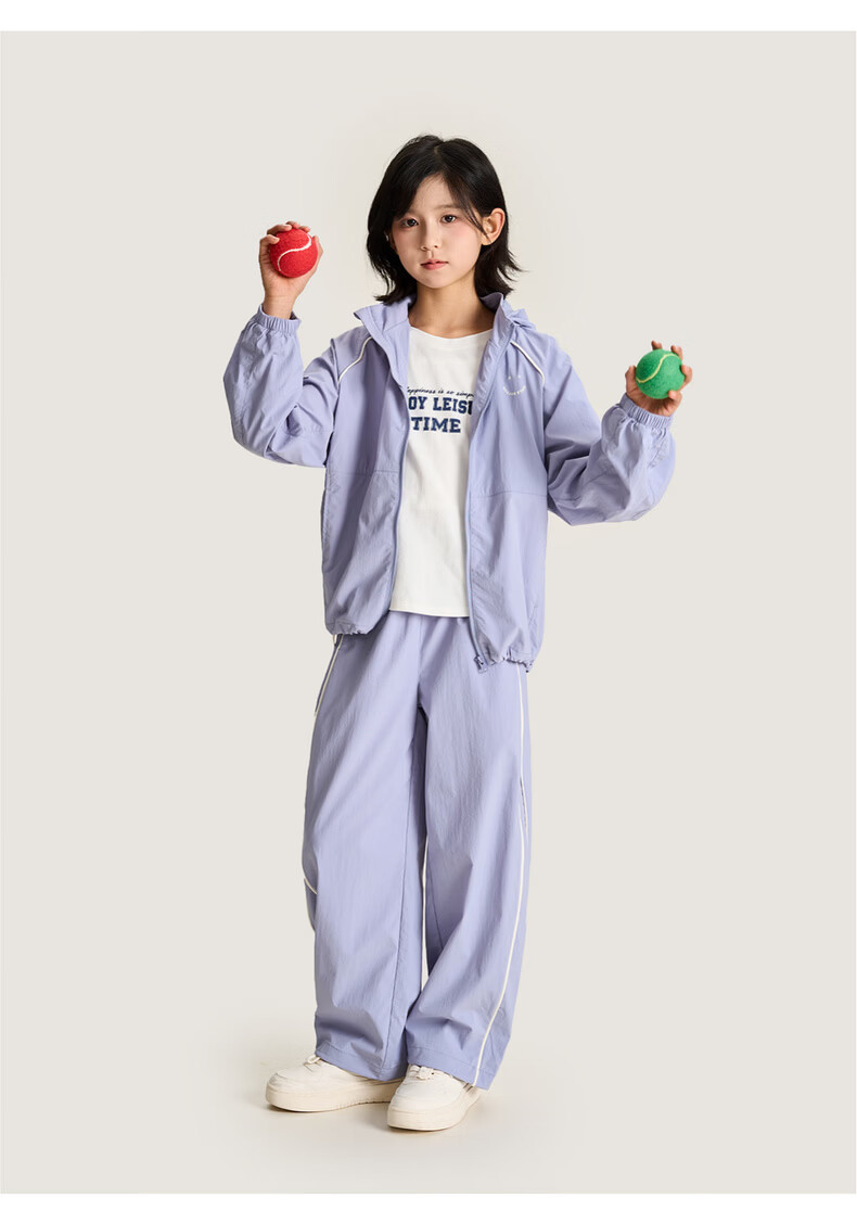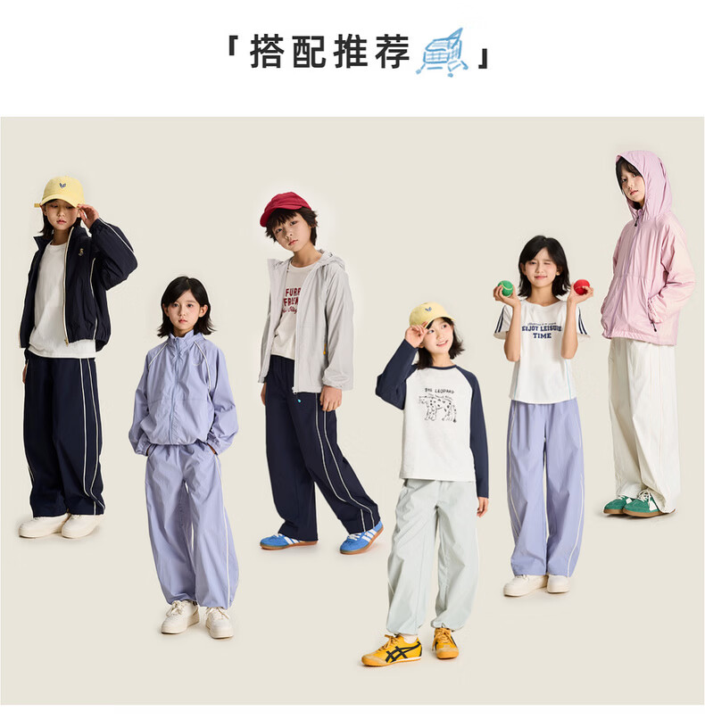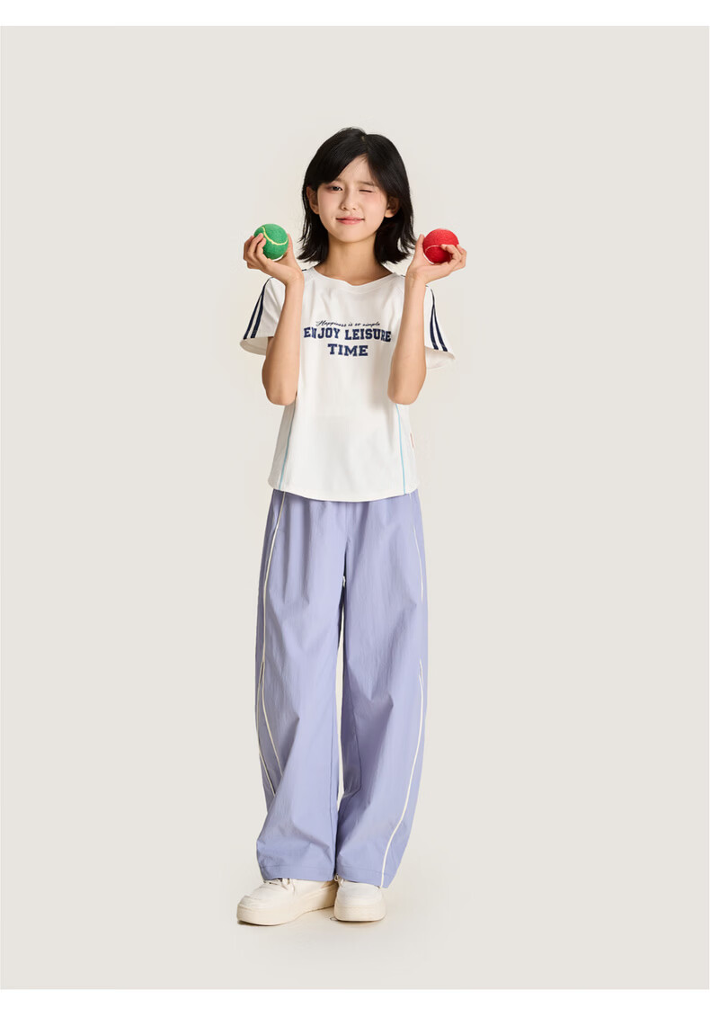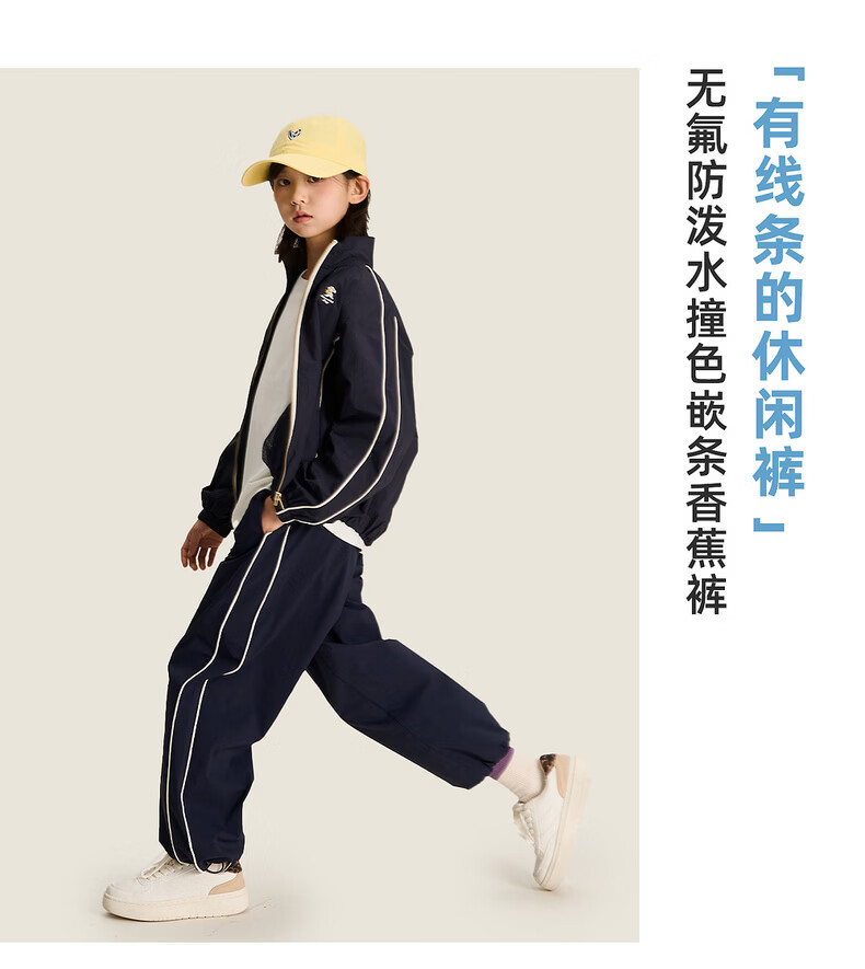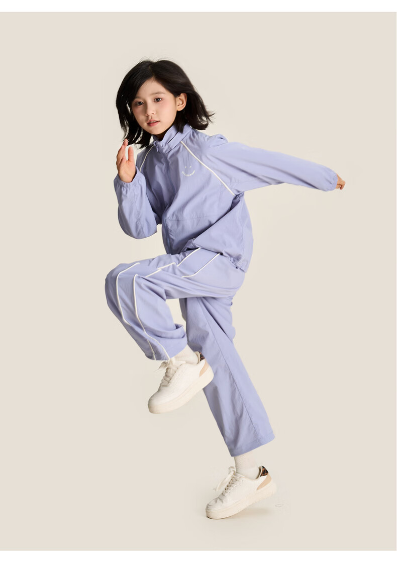 棉叔叔【侧缝嵌条休闲裤】棉叔叔儿童无氟防泼水撞色男女童香蕉裤2.24 鸢尾紫 165 165