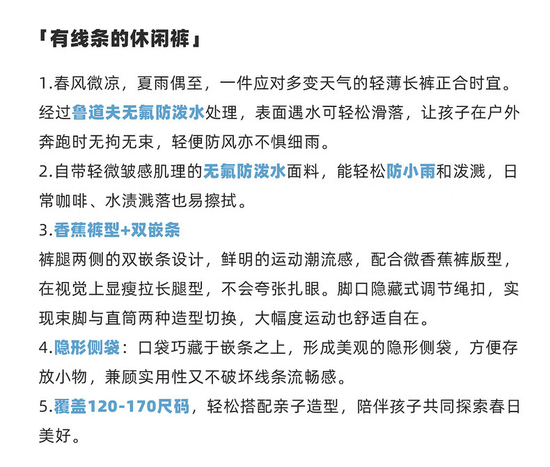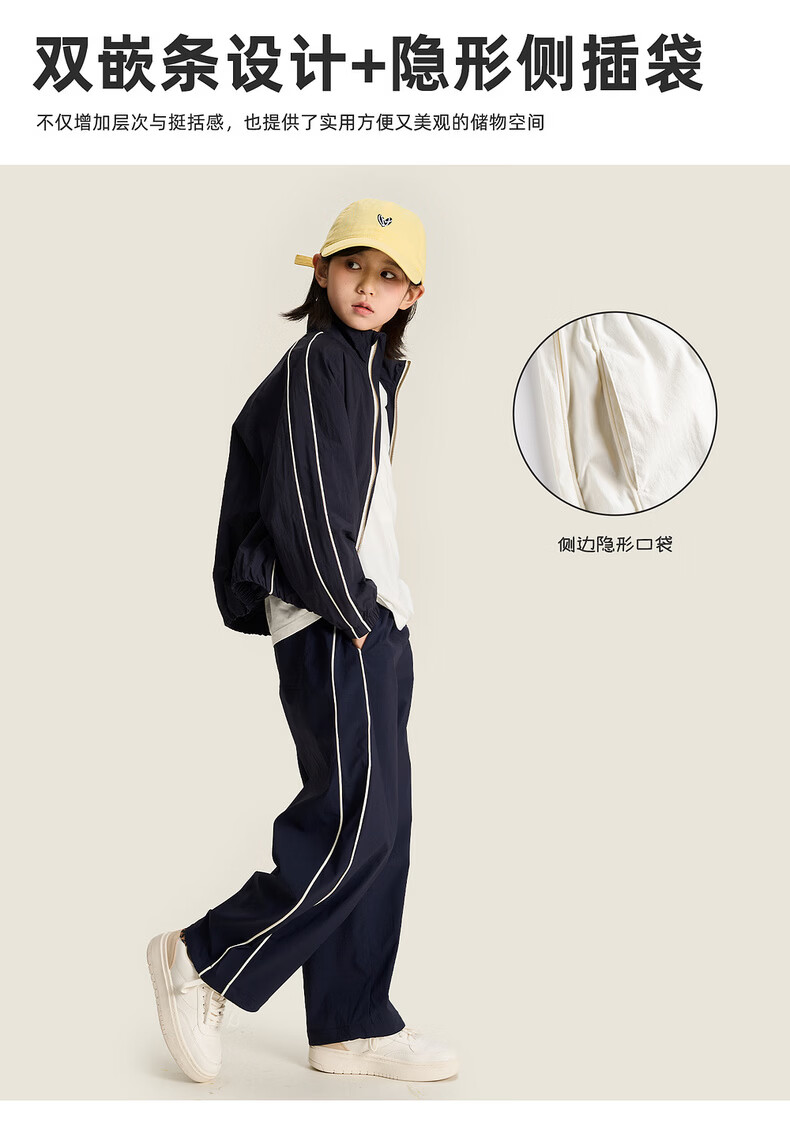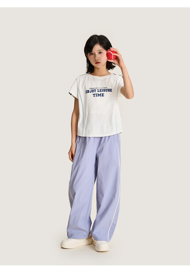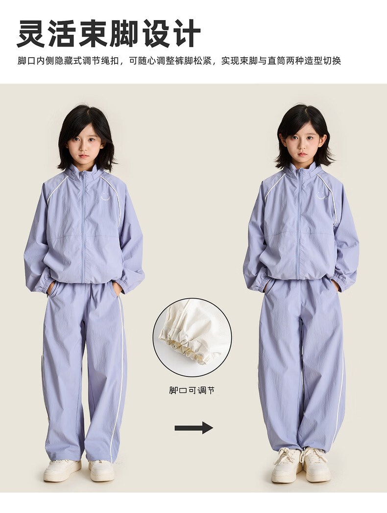 棉叔叔【侧缝嵌条休闲裤】棉叔叔儿童无氟防泼水撞色男女童香蕉裤2.24 鸢尾紫 165 165