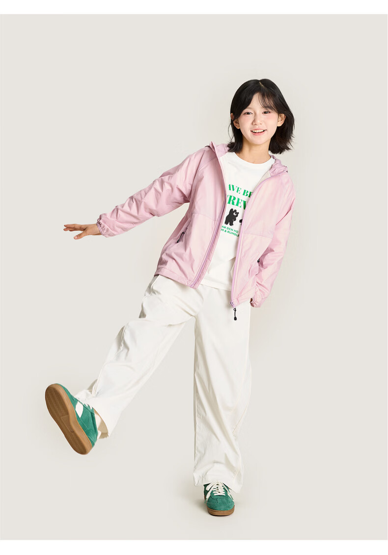 栀了成长记女童装时髦洋气连帽上衣2026春季儿童百搭蕾丝防晒外套 粉色 半身裙 100 cm