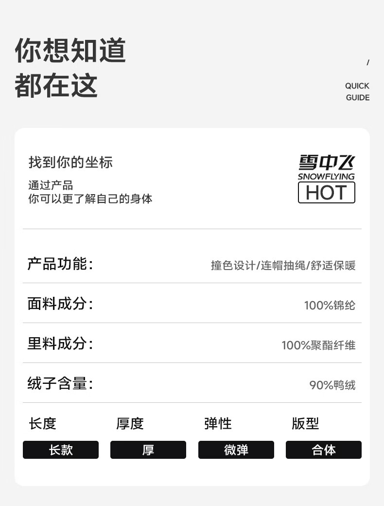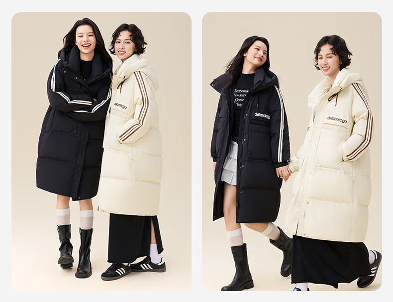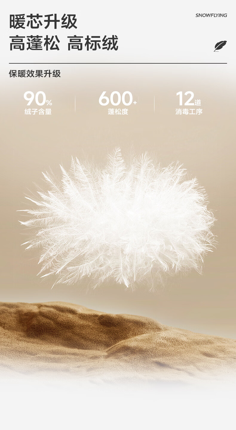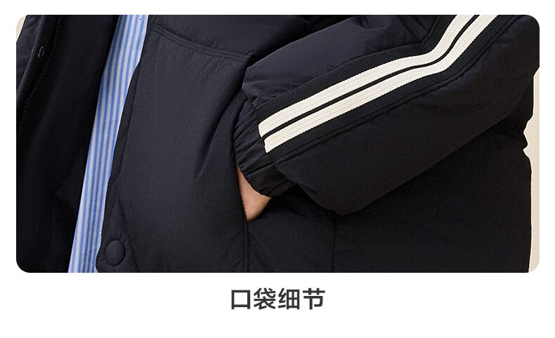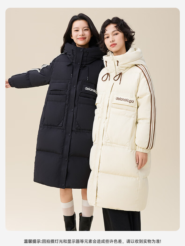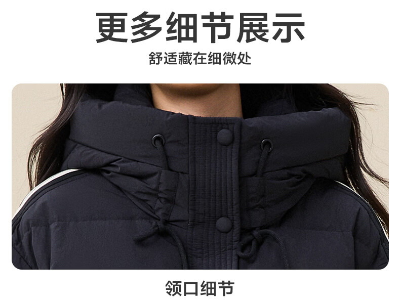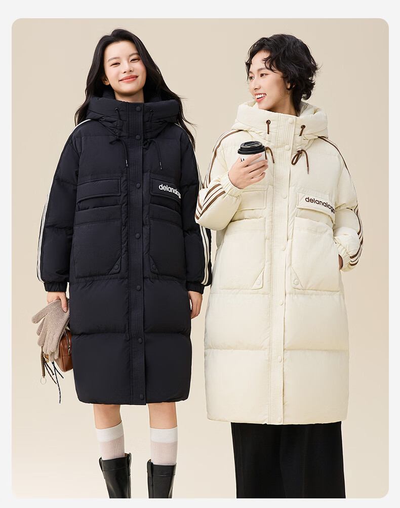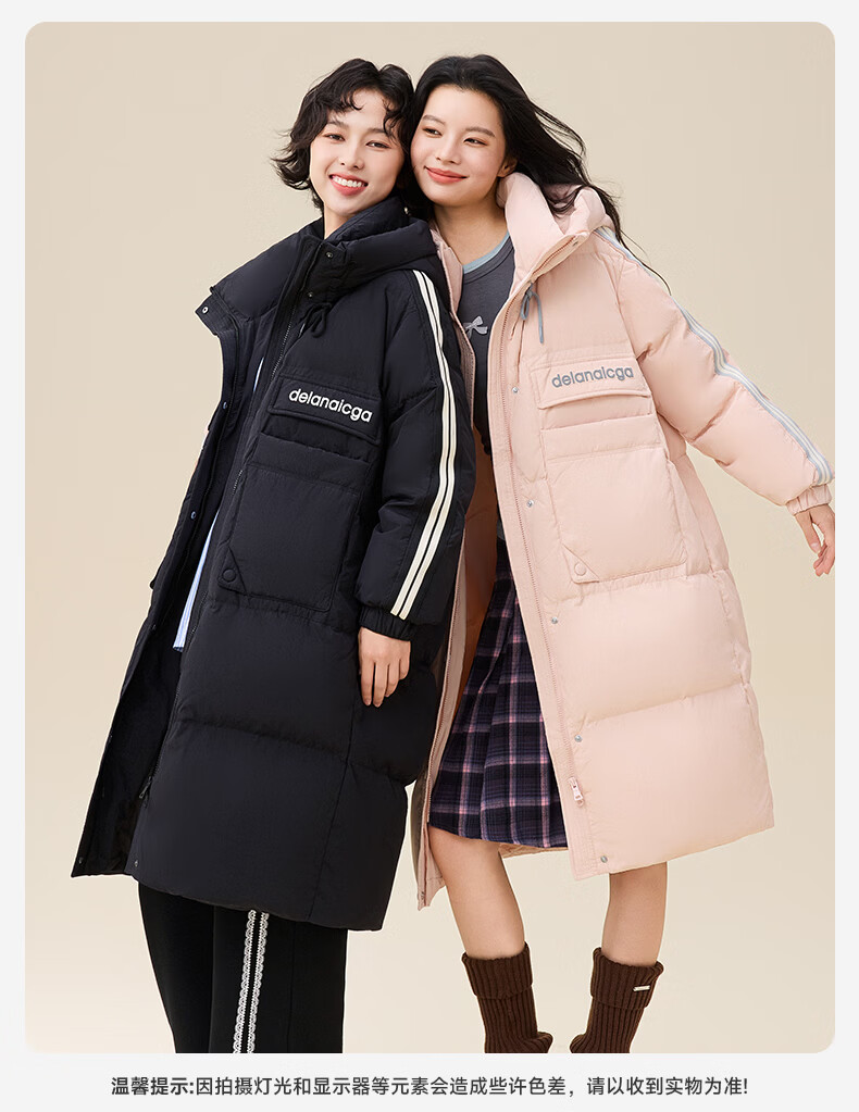 雪中飞运动休闲中长款羽绒服女2026年新款撞色条纹加厚冬季保暖百搭外套 浅粉红 S (155) (80-120斤)