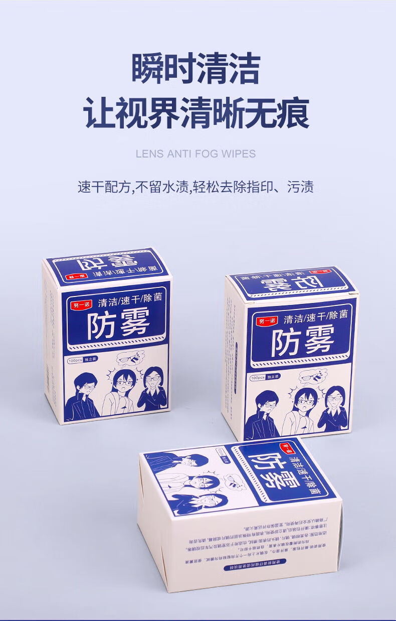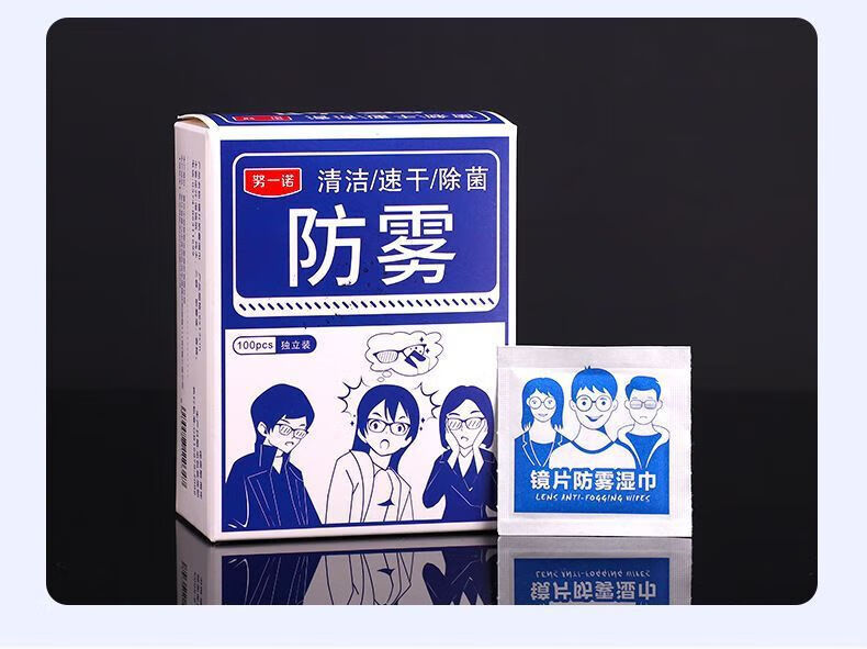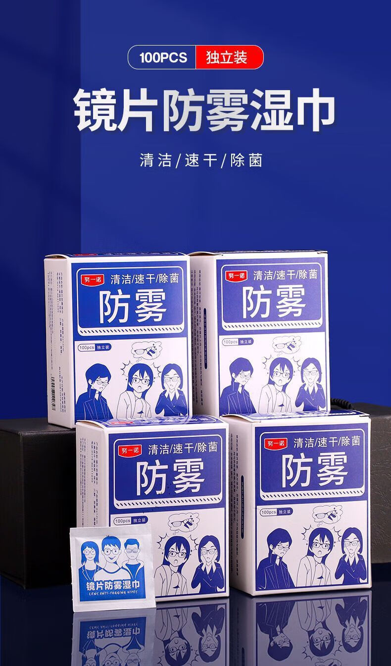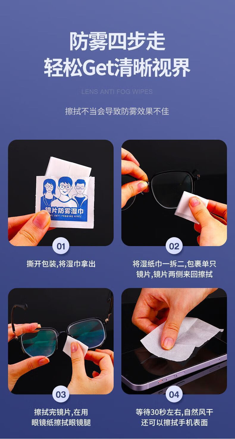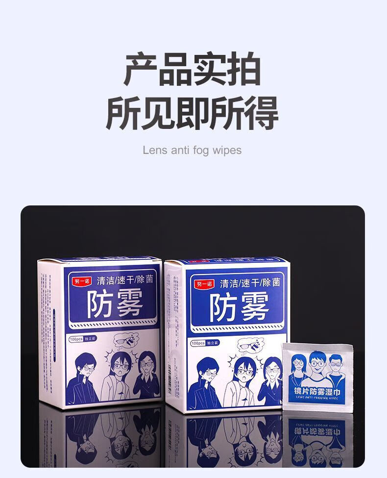 眼镜清洁湿巾镜片防起雾擦镜布纸擦眼睛湿纸巾专用防 眼镜防雾湿巾-100片-1盒