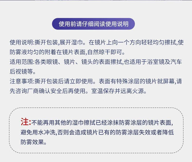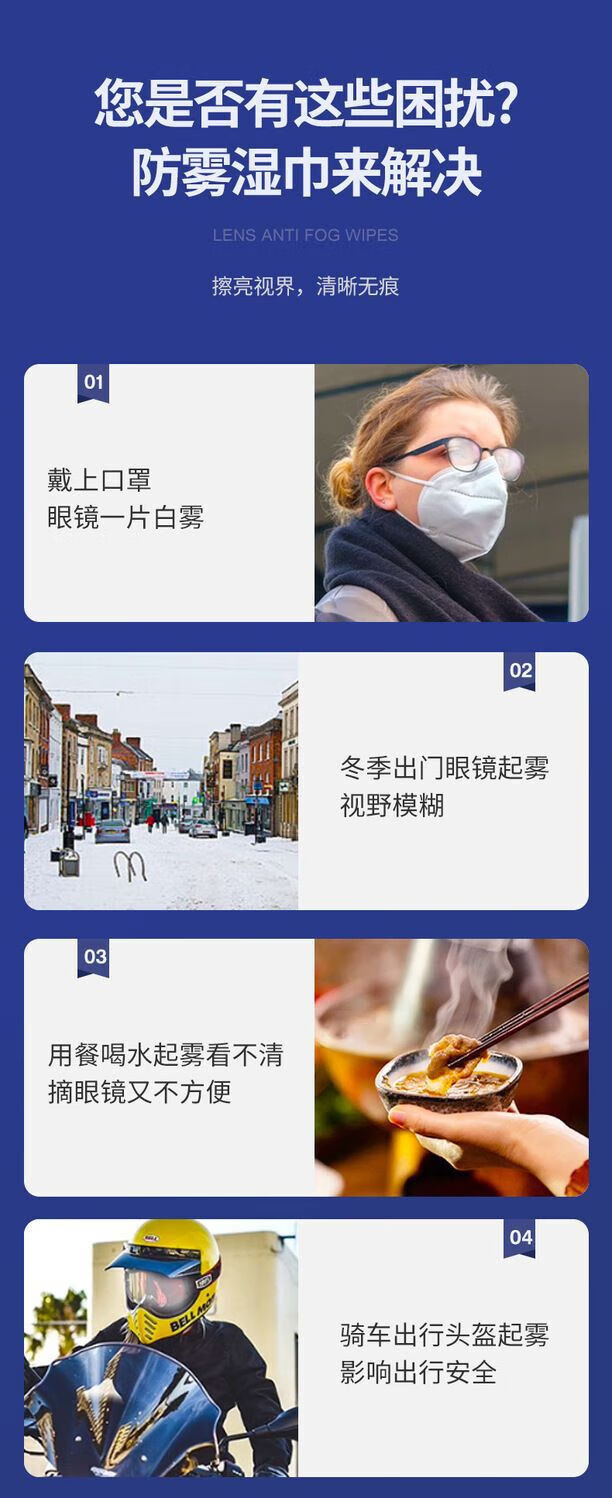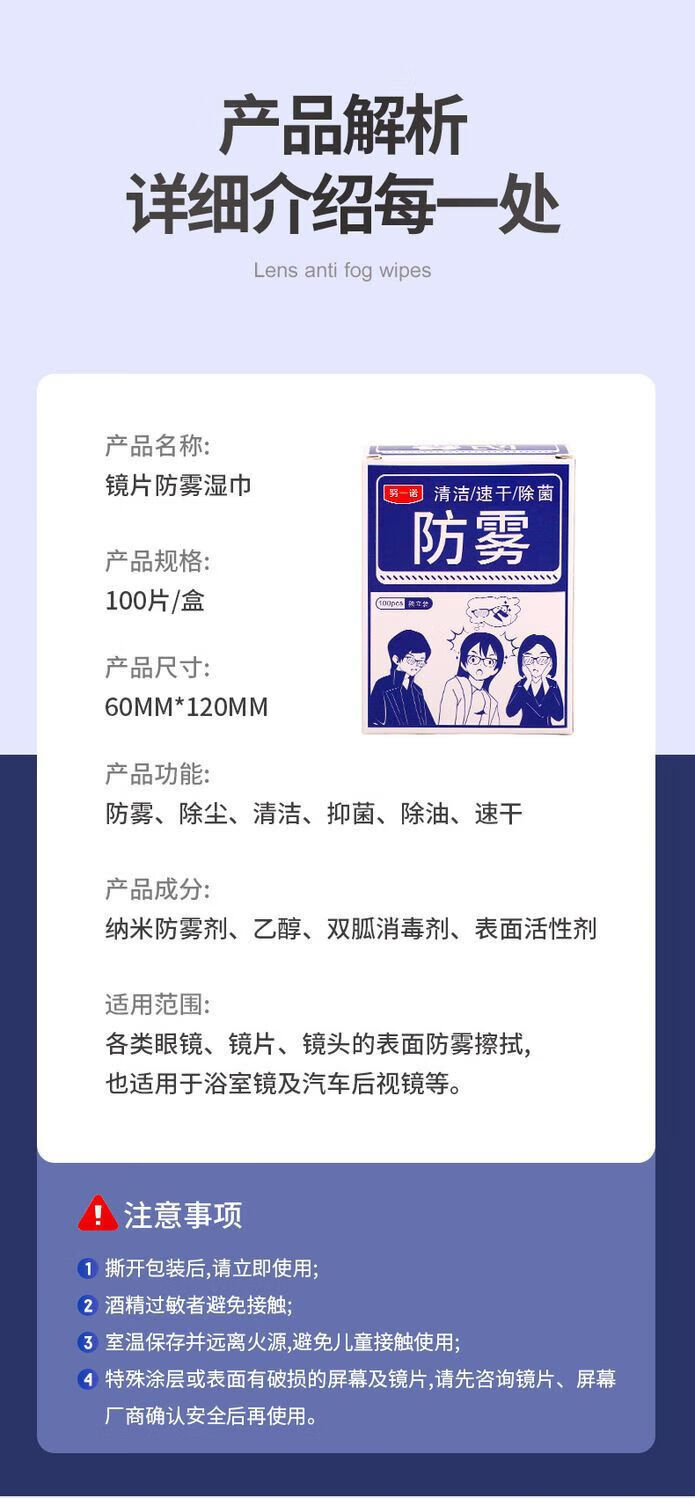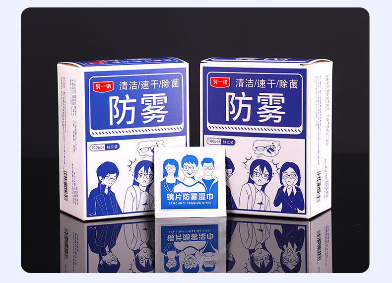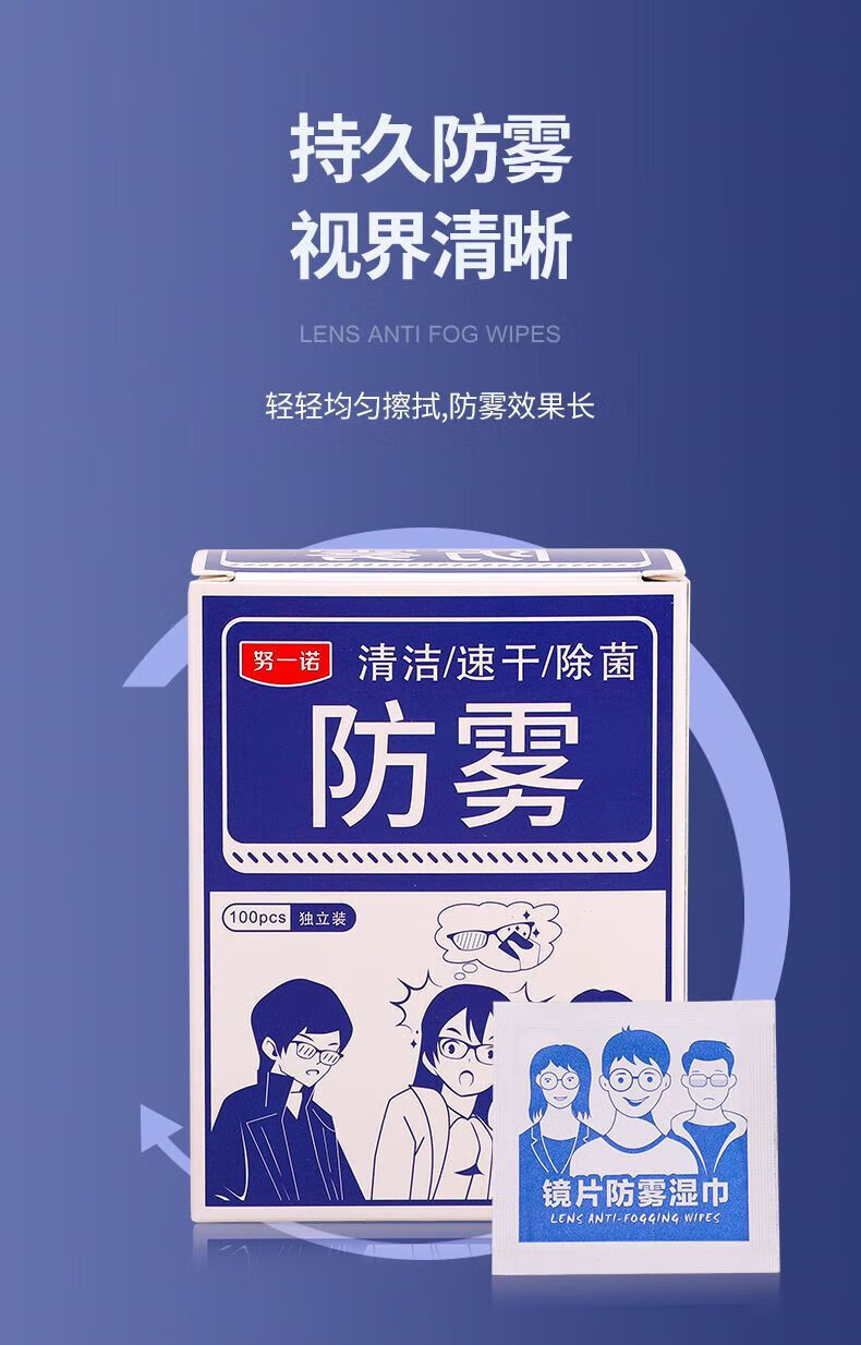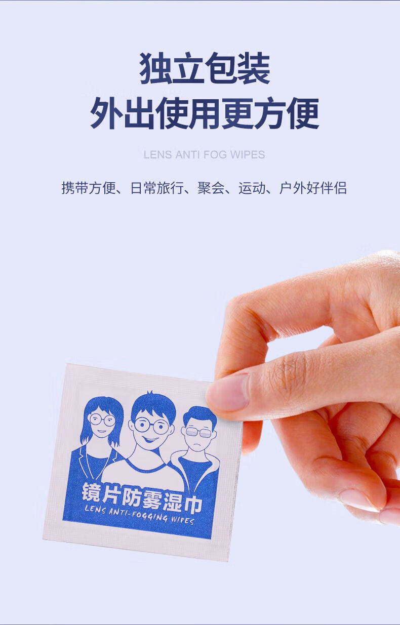 眼镜清洁湿巾镜片防起雾擦镜布纸擦眼睛湿纸巾专用防 眼镜防雾湿巾-100片-1盒