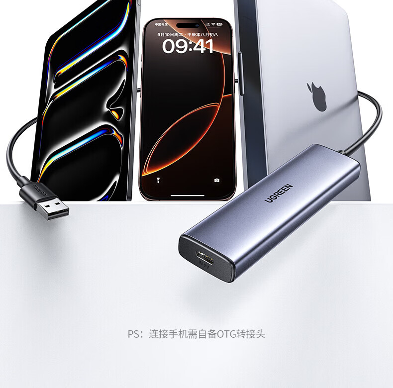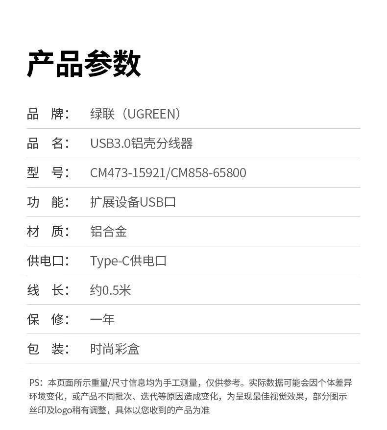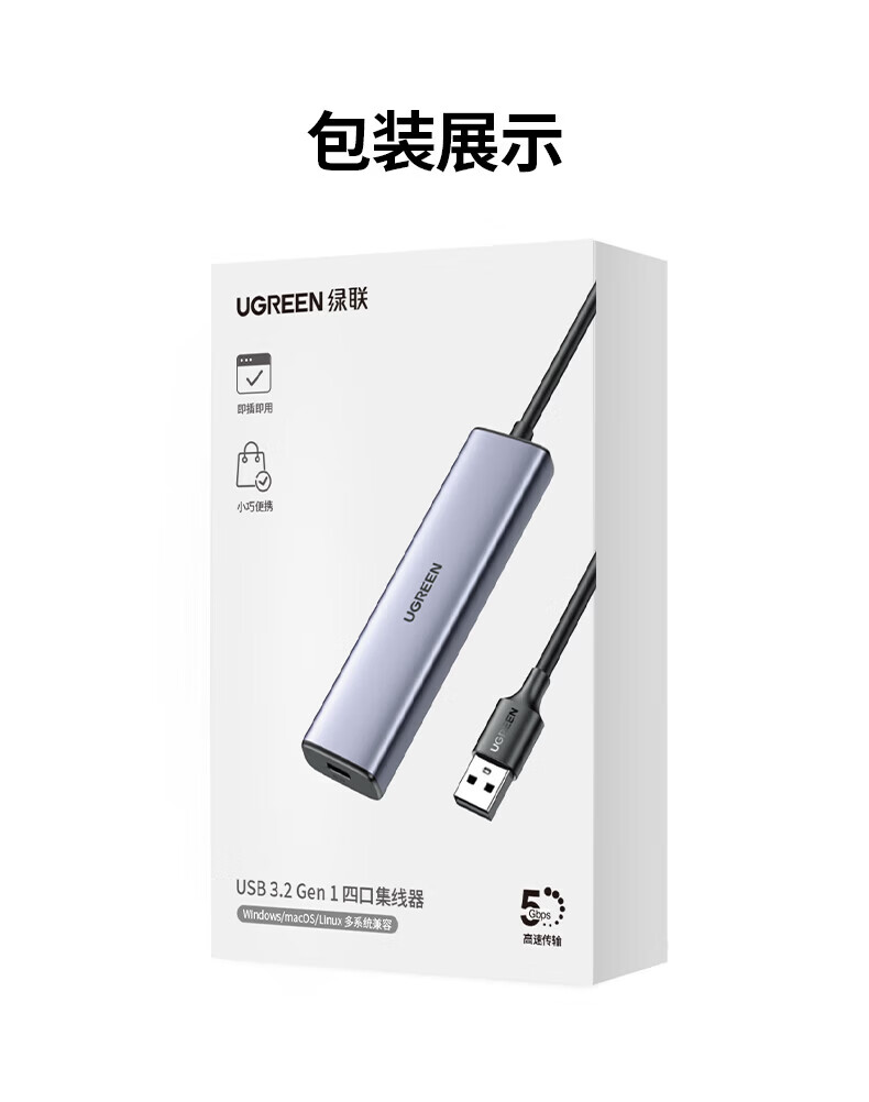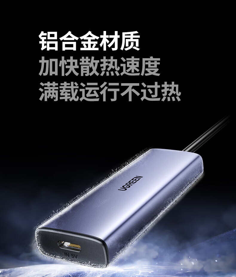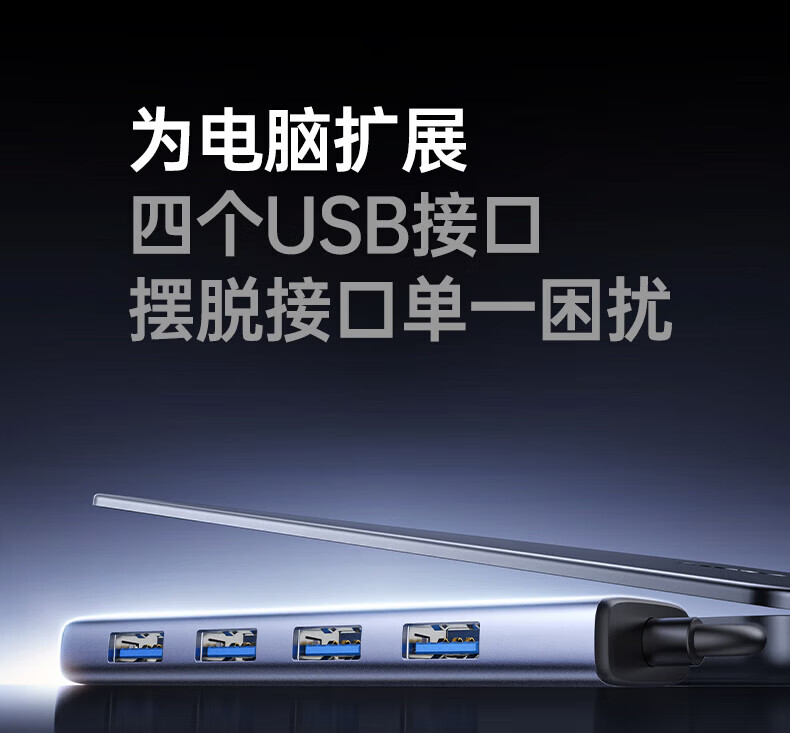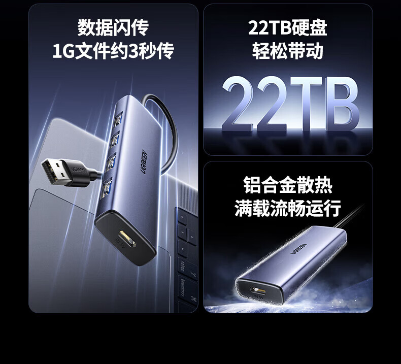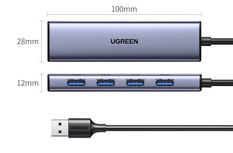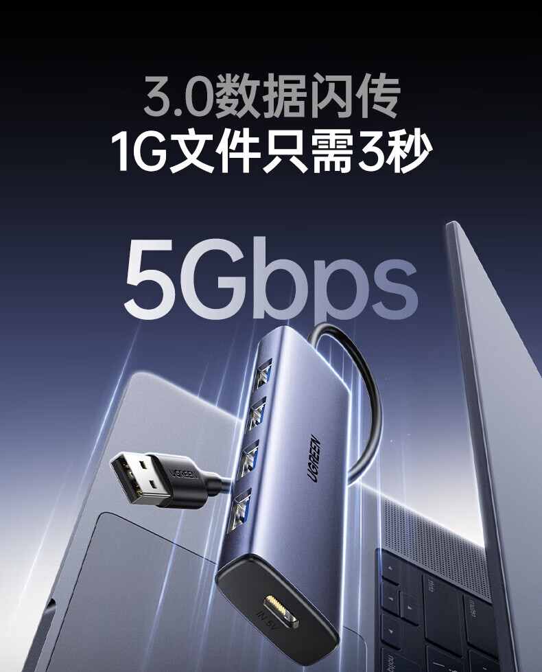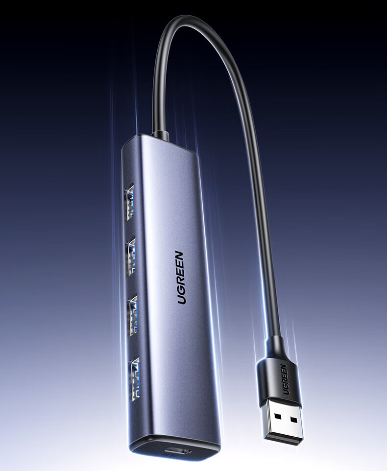 绿联(UGREEN)USB扩展器3.0扩展坞 带Type-C供电接口 一拖四拓展坞分线器HUB高速4口集线转接头转换器笔记本电脑 【4*USB3.0+C口供电】USB接口丨金属漆款 0.5米