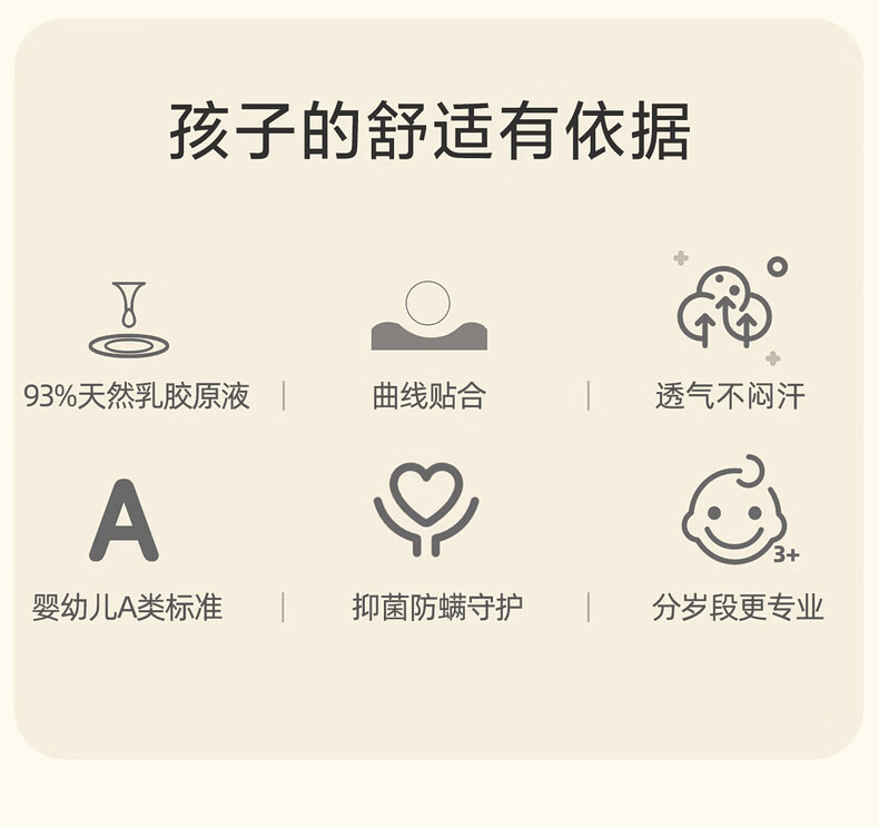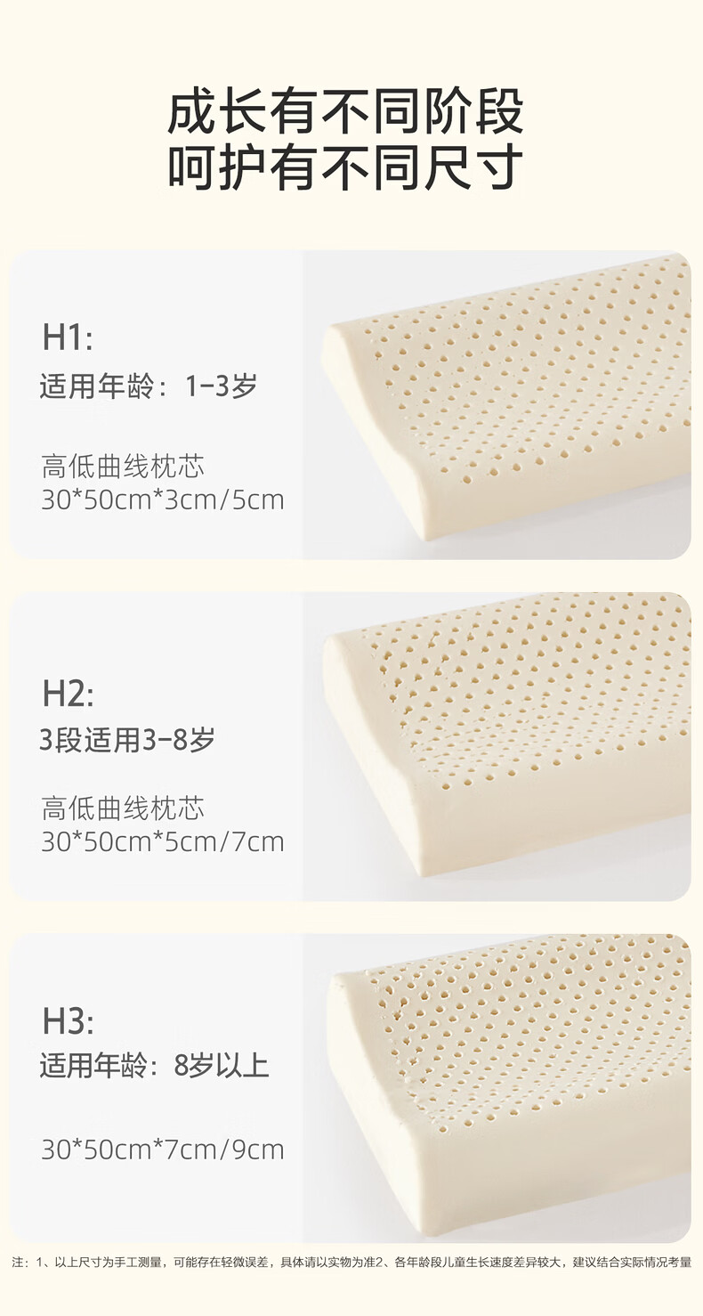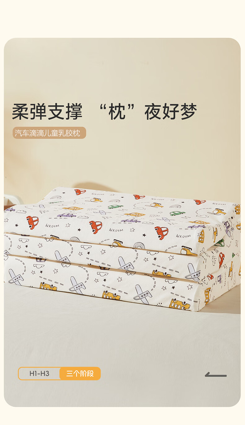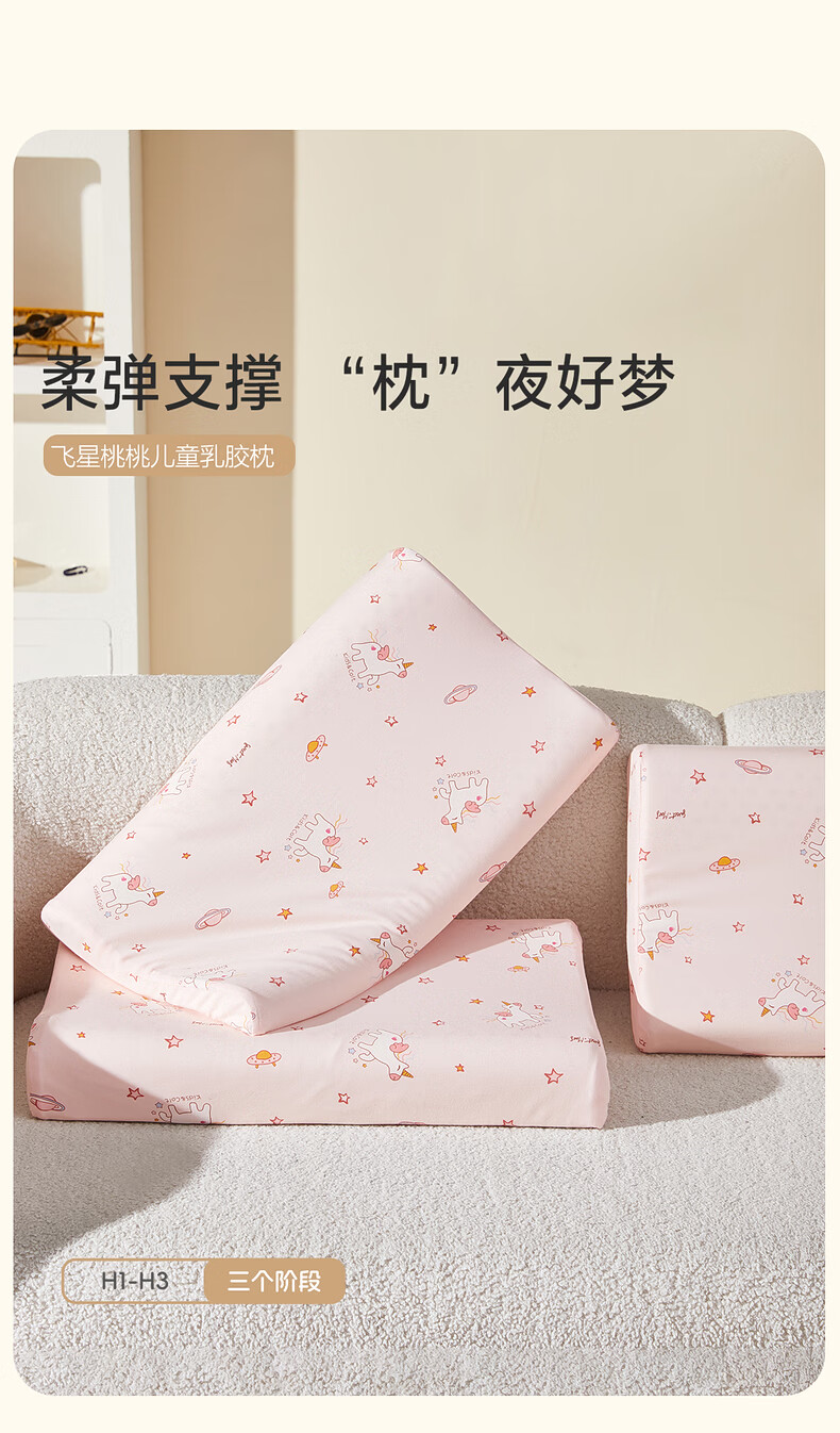 水星家纺枕头乳胶枕 93%天然乳胶枕 婴幼儿A类抗菌儿童乳胶枕 飞星桃桃【93%泰国原液/科学枕高】 单只 30cm×50cm×3~5cm