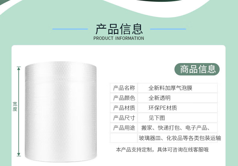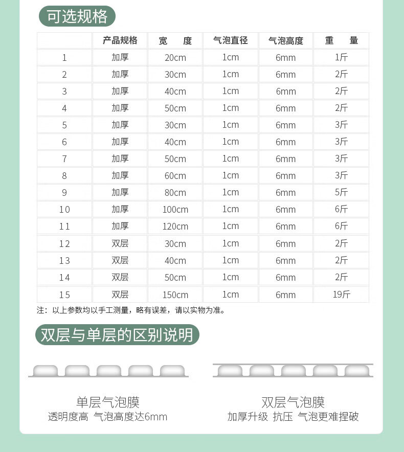 雾美 双层加厚气泡膜包装膜宽30cm/40cm/50cm气泡垫泡沫泡泡纸搬家打包膜 防震气垫膜批发快递 【双层特厚款】宽50cm*1kg