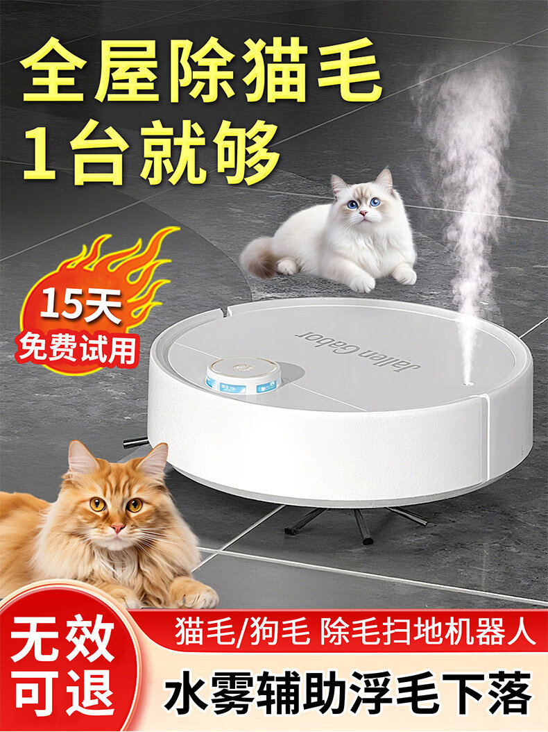 others宠物扫地机养猫专用吸毛器扫地机器人全自动吸猫毛吸狗毛神器智能自动拖地扫吸拖一体 雅致黑 喷雾吸毛扫地机