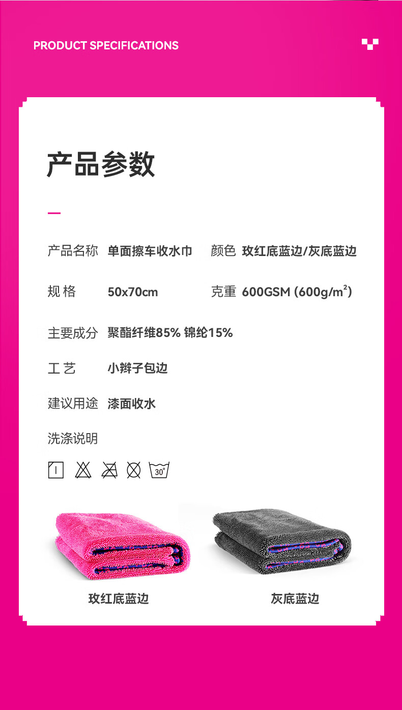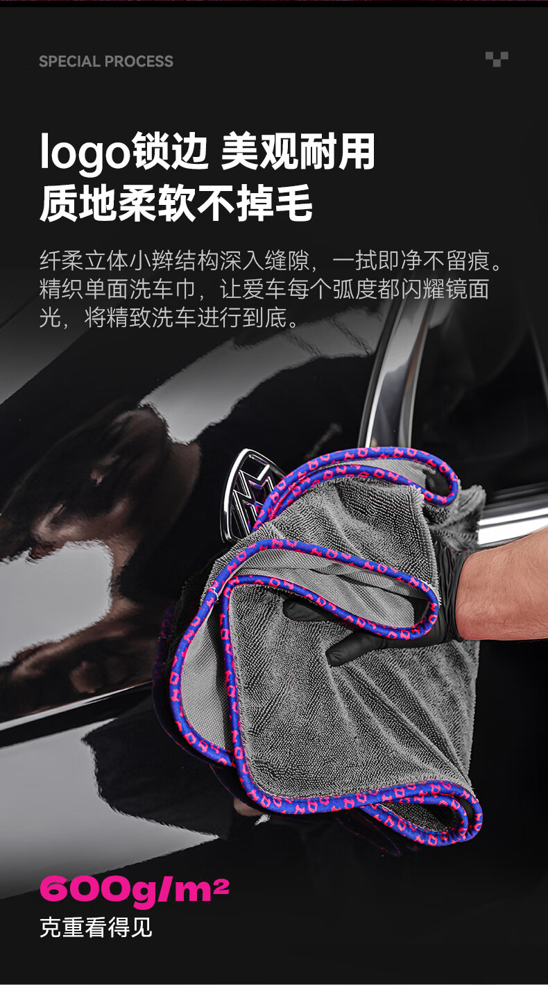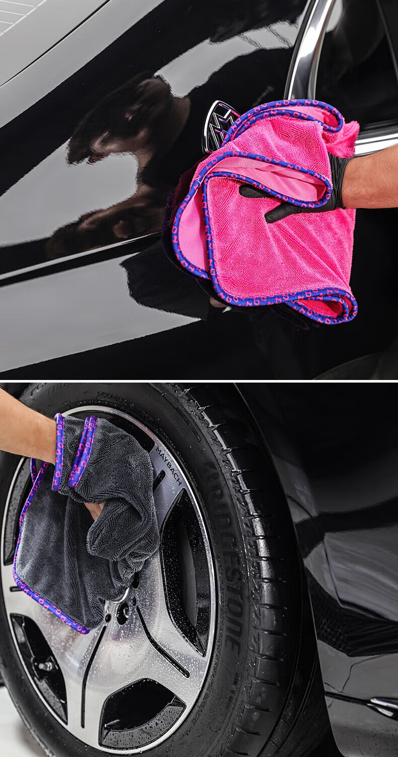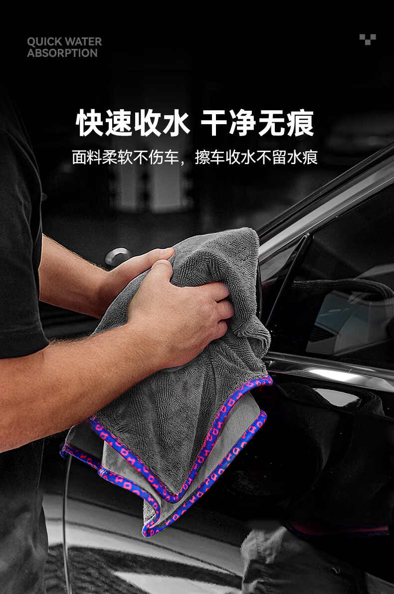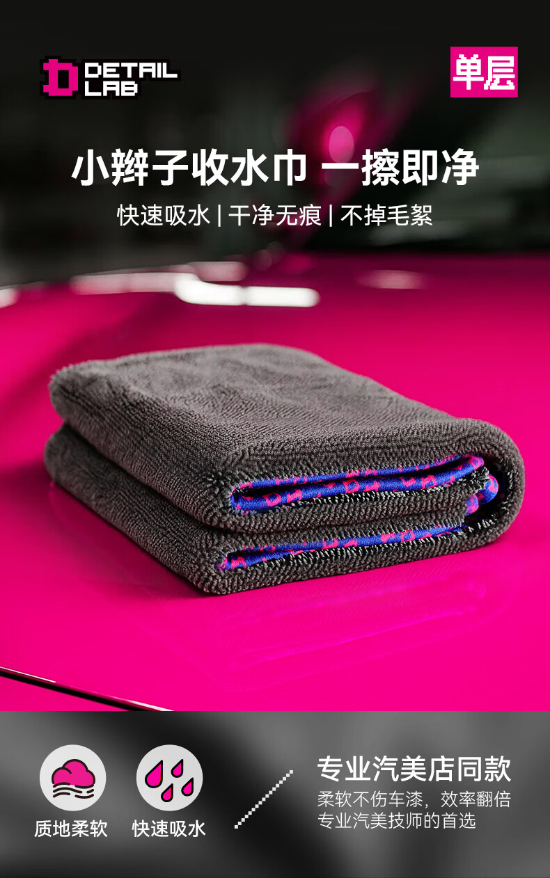 Detail Lab单面小辫子收水毛巾洗车单层强力吸水抹布擦车巾不掉毛专业 单层收水巾-灰底蓝边(50*70cm)