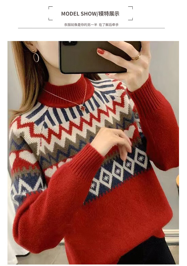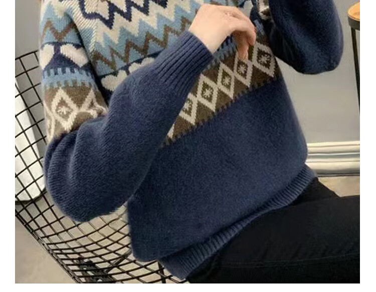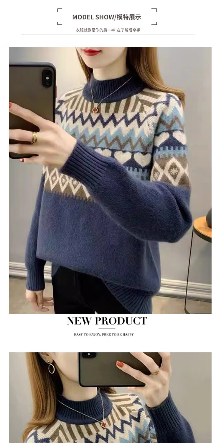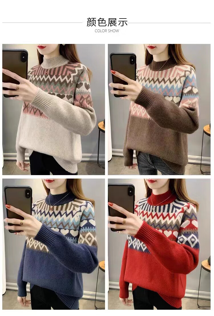 香影芬2025新款半高领复古毛衣女秋冬洋气条纹针织打底上衣宽松洋气女装 卡其色 S (建议95-105斤)