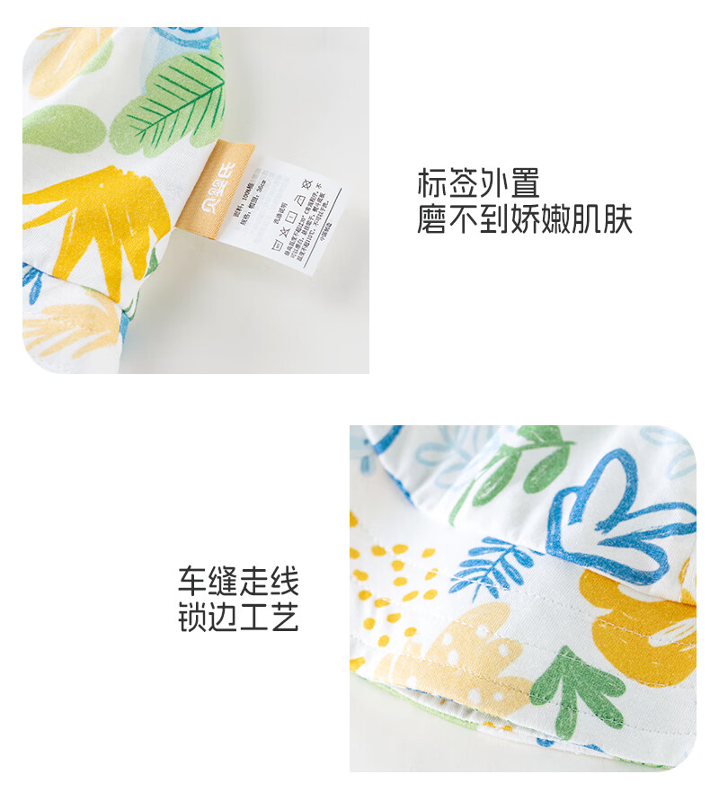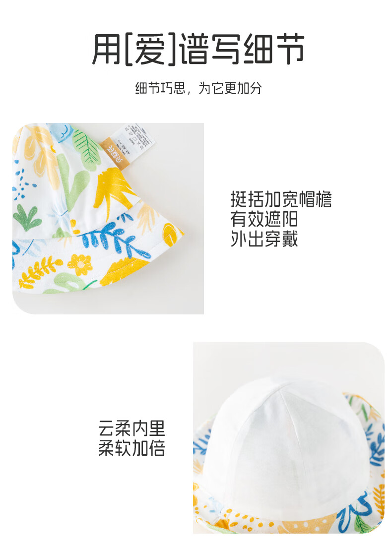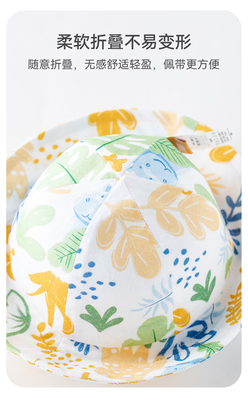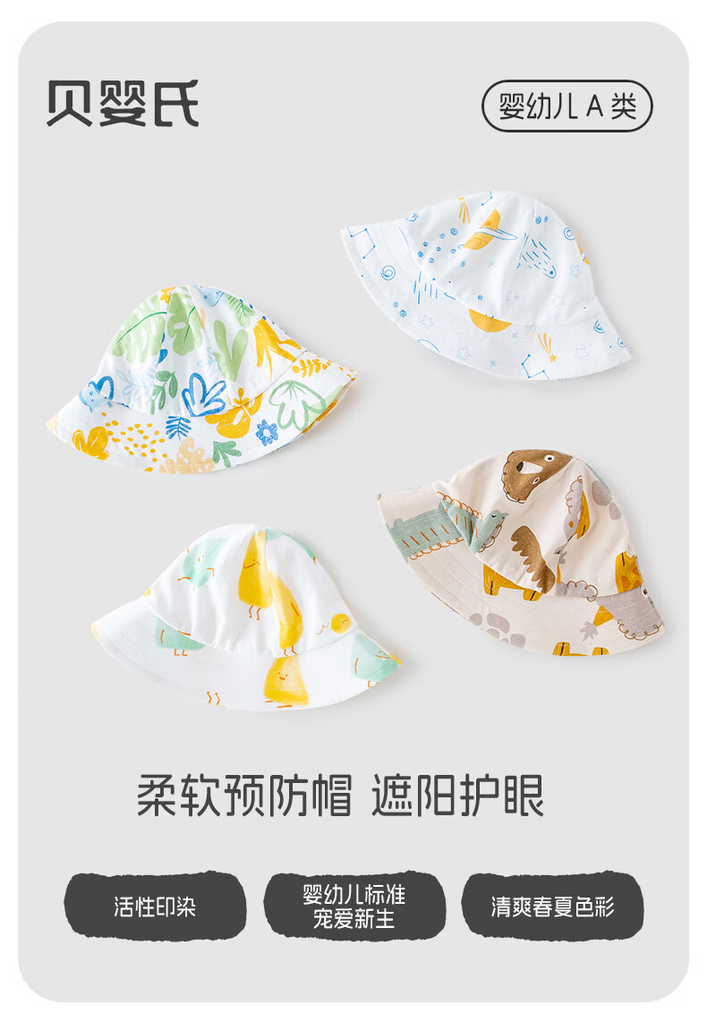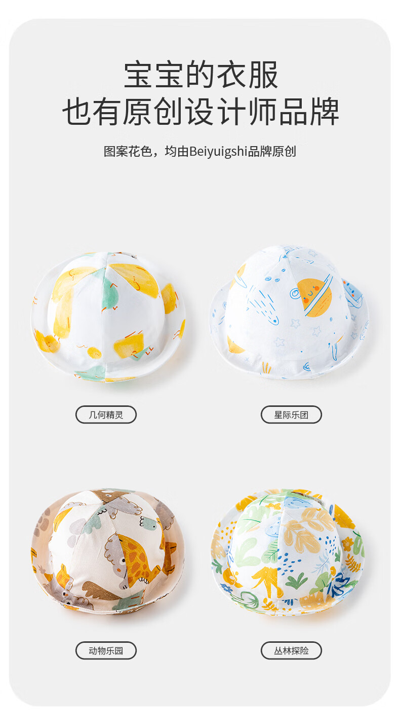 贝婴氏新生儿松紧圆帽夏季男女宝宝胎帽囟门帽婴儿渔夫帽子时尚 丛林探险 1-2岁