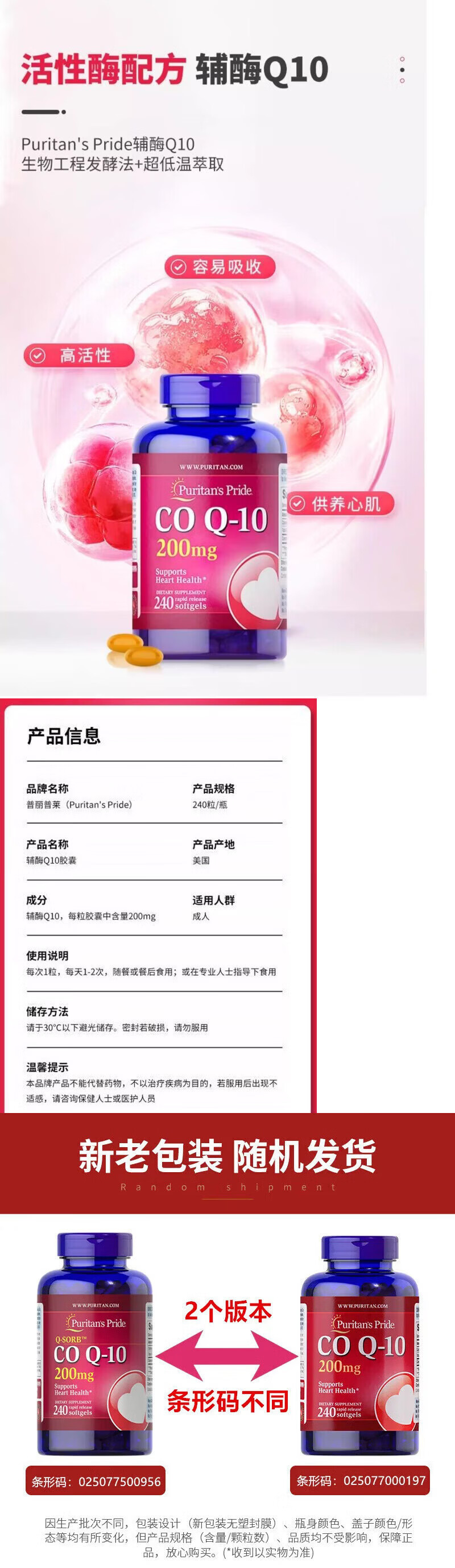 普丽普莱(Puritan's Pride)美国进口辅酶q10 高含量软胶囊备孕 保护心脏心脑血管 日常养护 240粒*2瓶