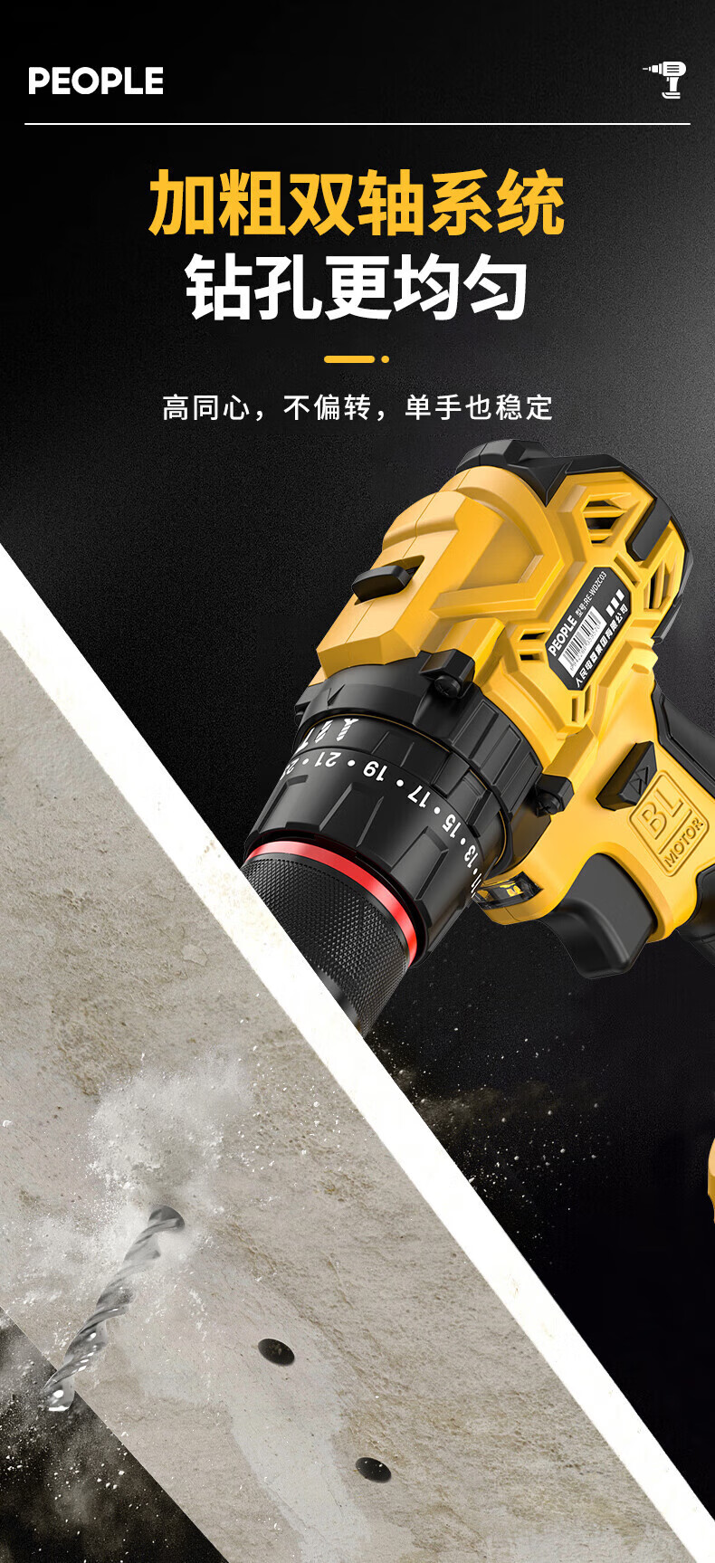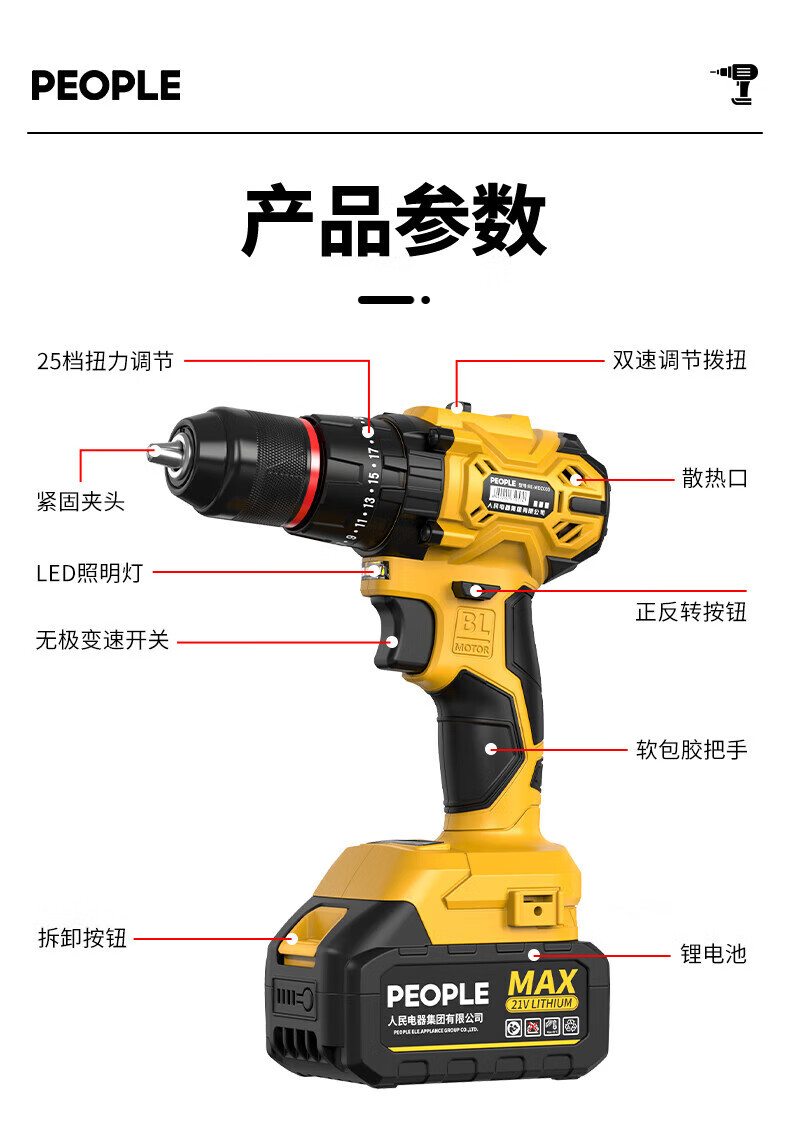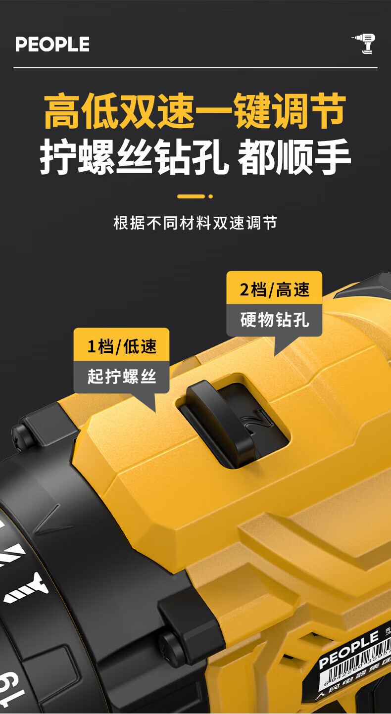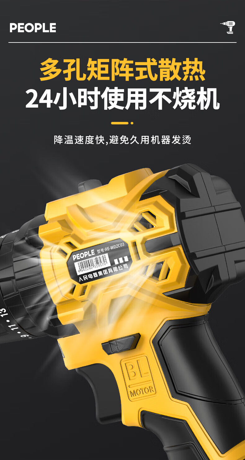 人民冲击无刷锂电钻钻墙打孔家用多功能12V/16.8V/21V充电双速手电钻 【工业级】12V-2电1充