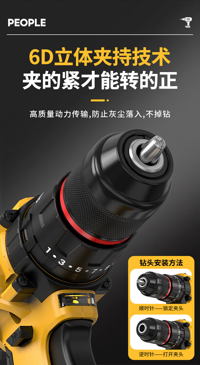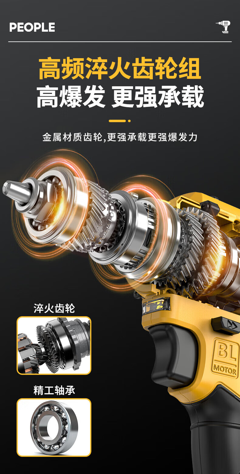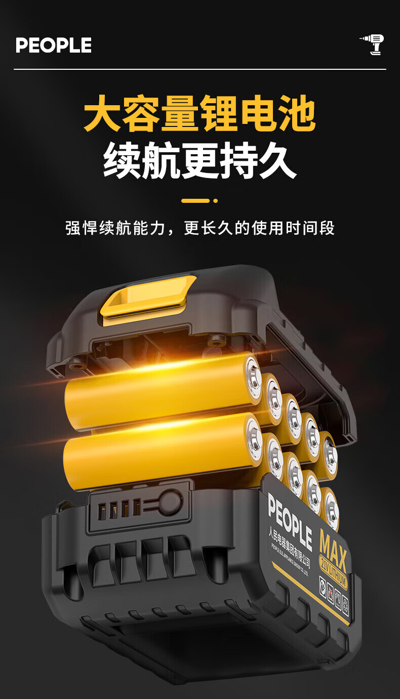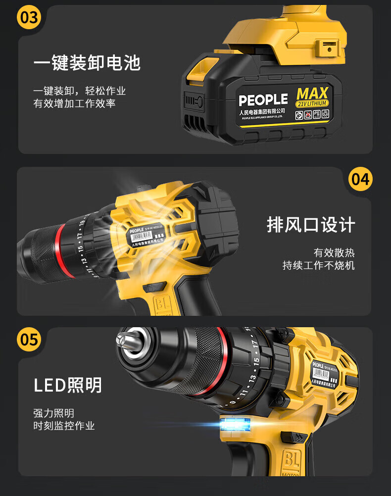 人民冲击无刷锂电钻钻墙打孔家用多功能12V/16.8V/21V充电双速手电钻 【工业级】12V-2电1充