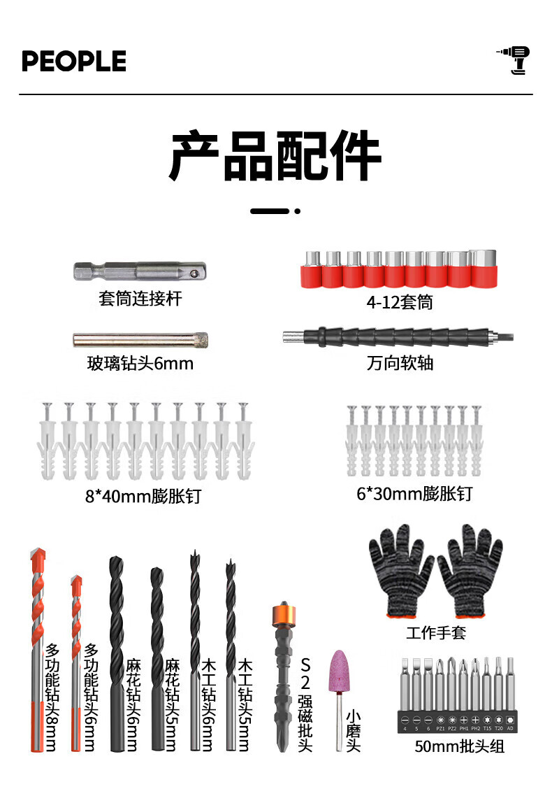 人民电钻钻墙打孔电动手电钻锂电池充电多功能冲击电钻三合一家用钻头 【21V--2.0Ah】2电1充
