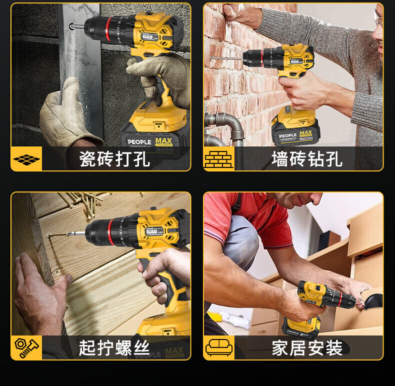人民电钻钻墙打孔冲击钻三合一家用锂电池12V/16.8V/21V充电双速有刷 【12V】2电1充