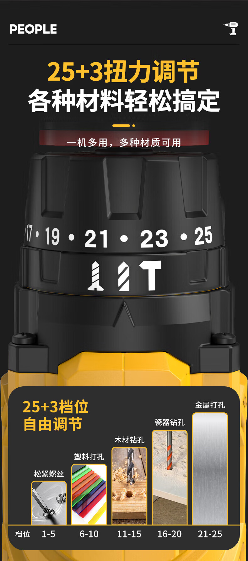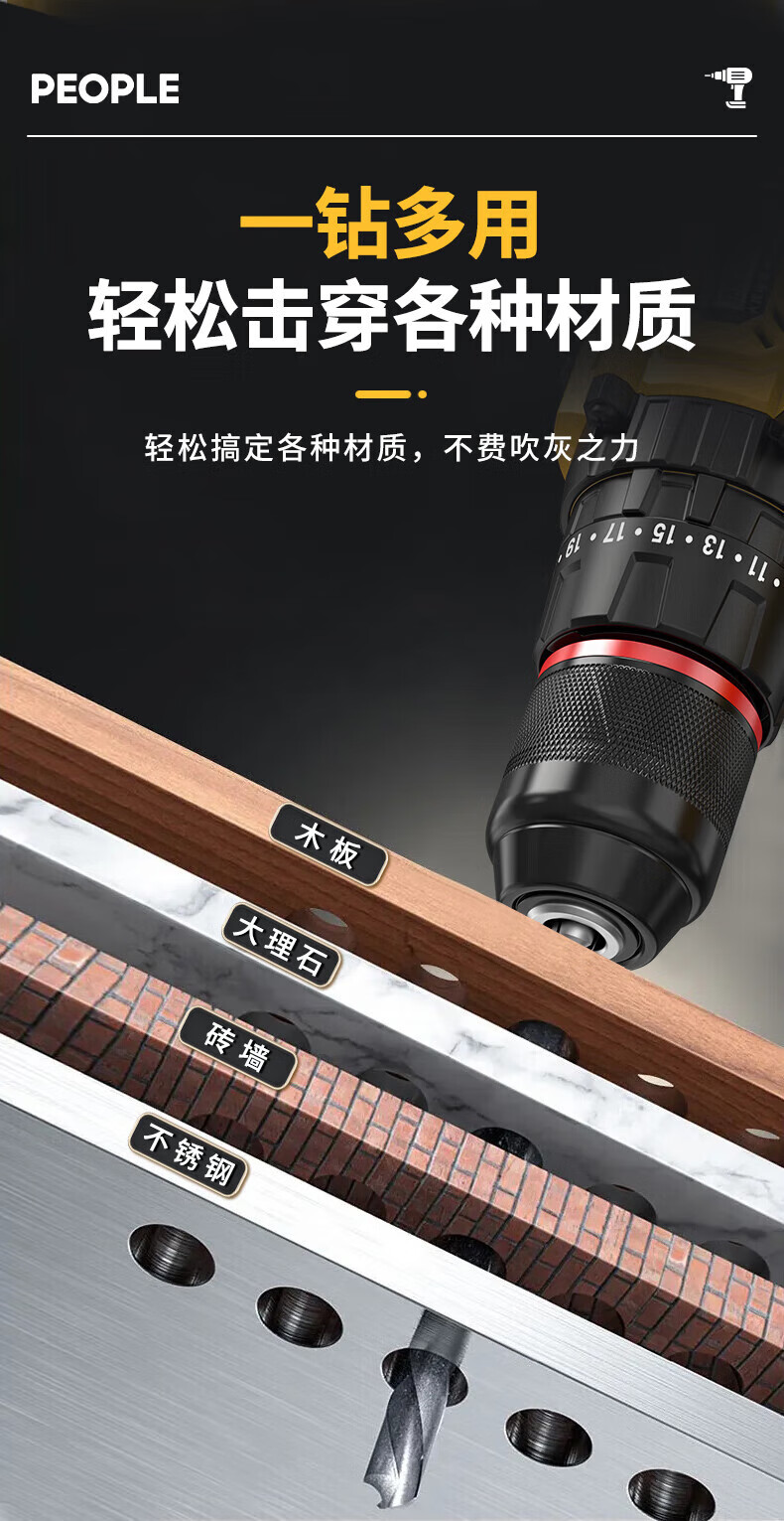 人民无刷电钻钻墙打孔锂电池家用充电式双速多功能无线手电钻 【16.8V】1电1充