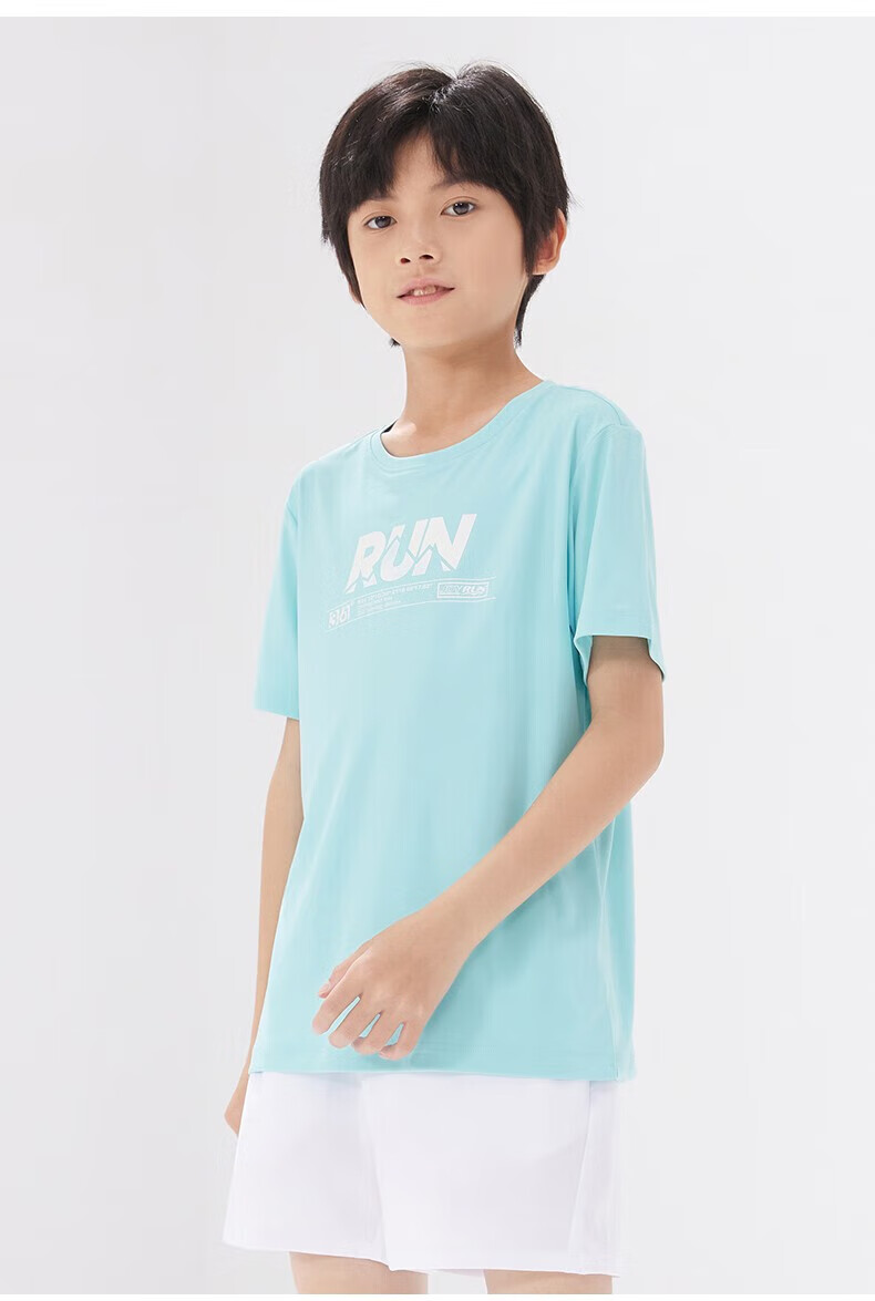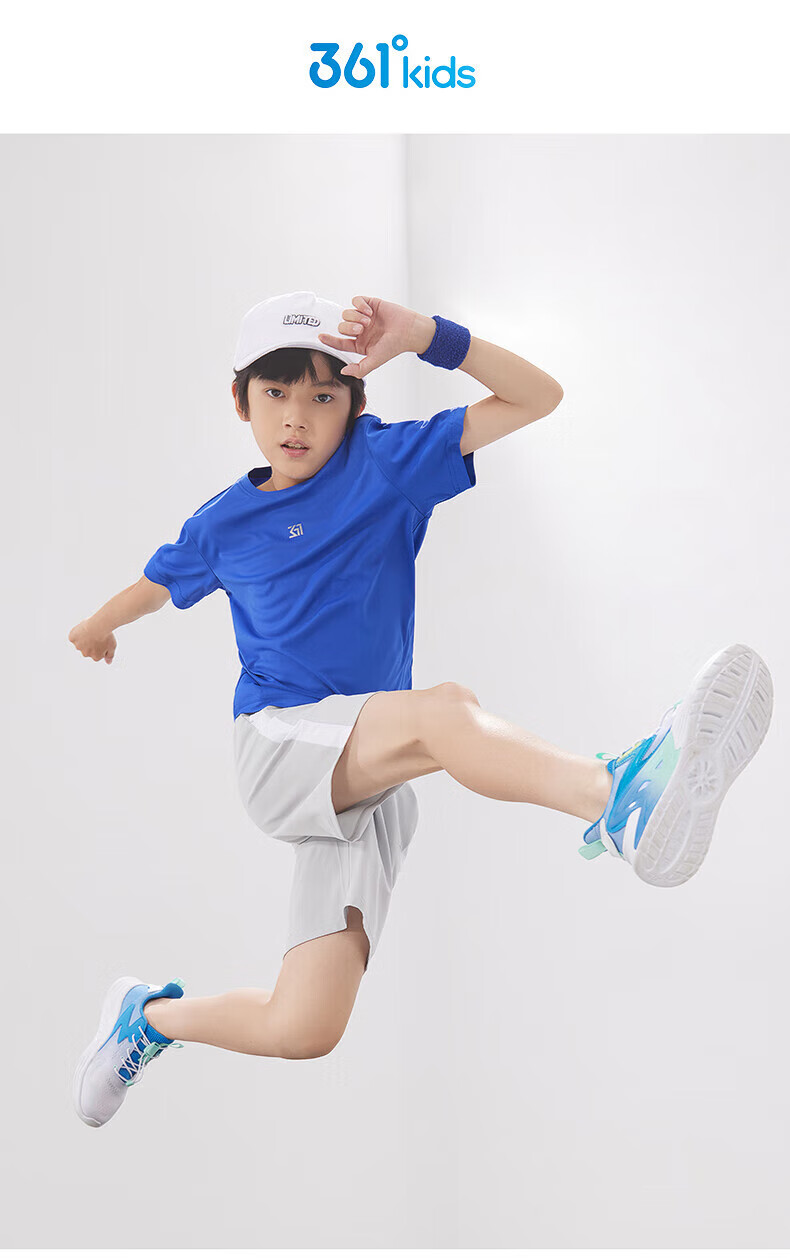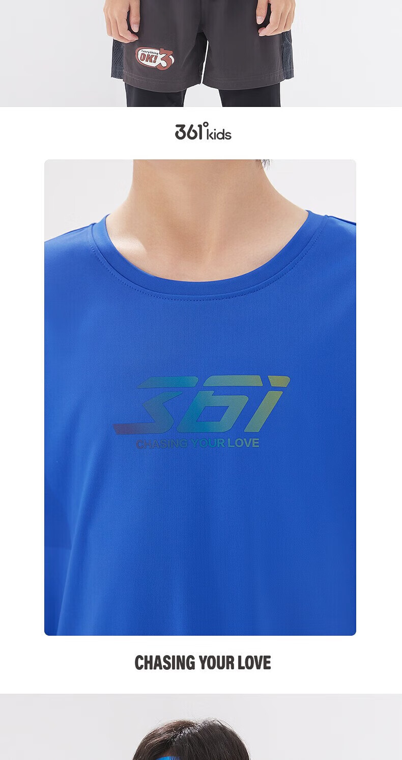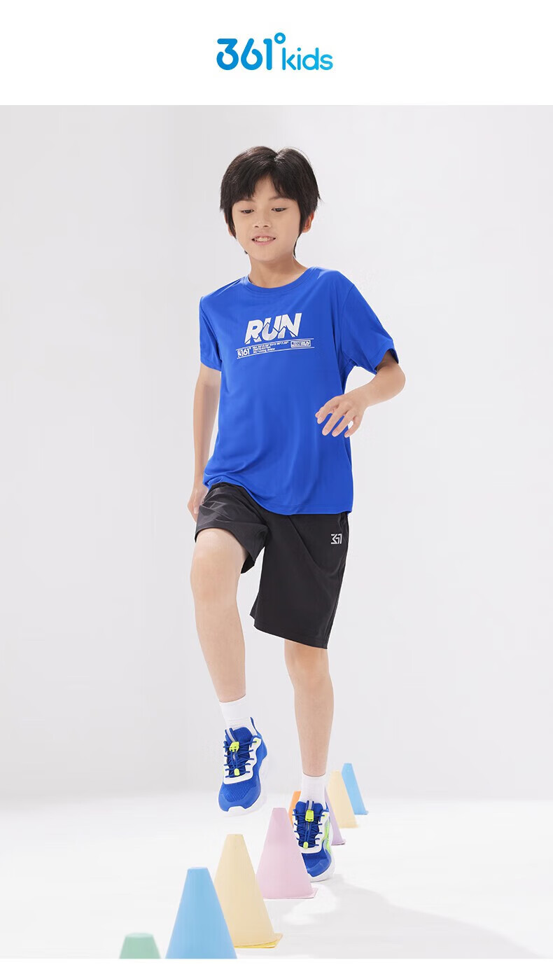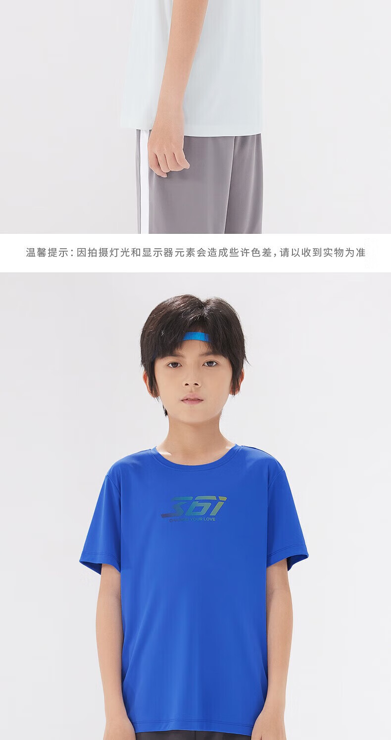 361°童装男女童短袖针织衫年夏季新款速干儿童T恤中大童冰爽上衣 机灵蓝1214-男童 130 cm