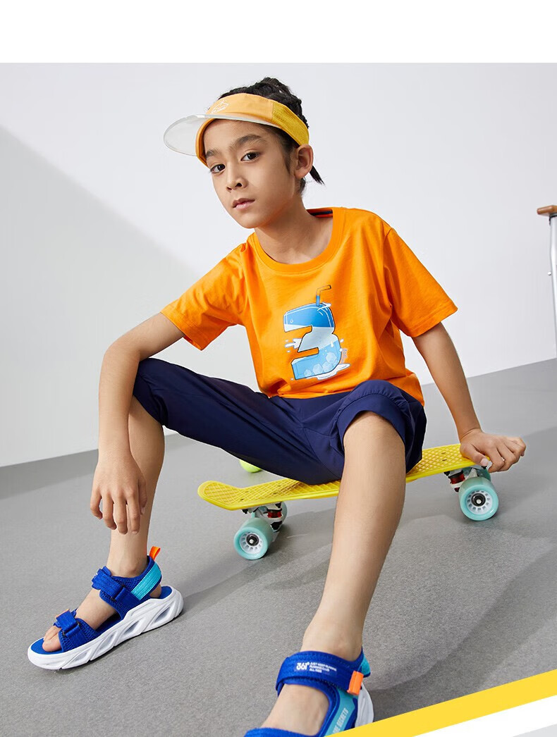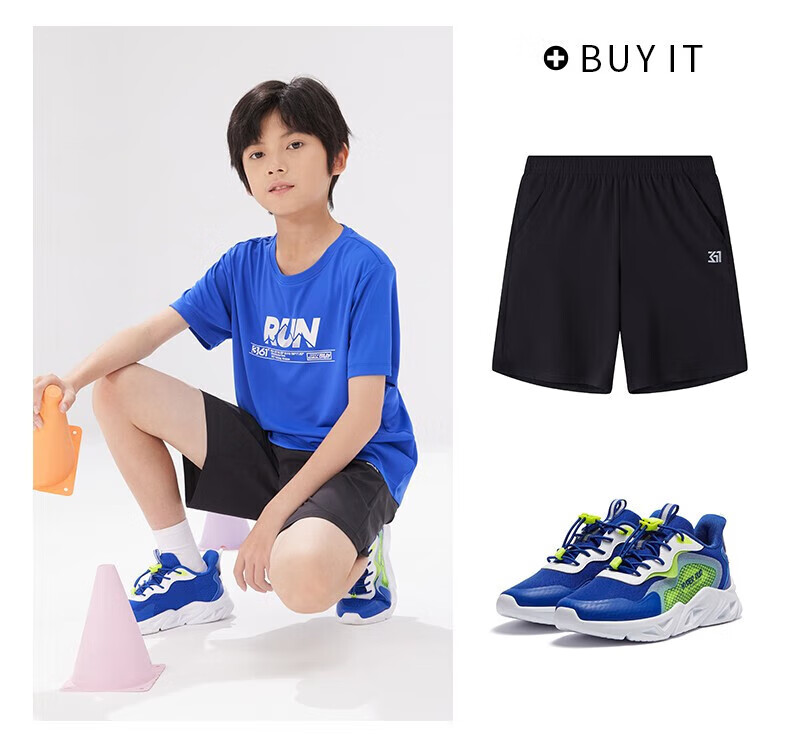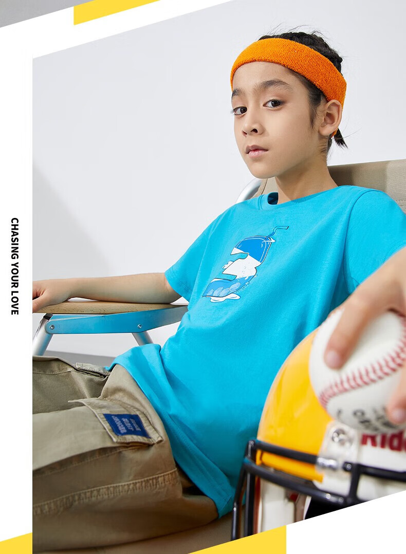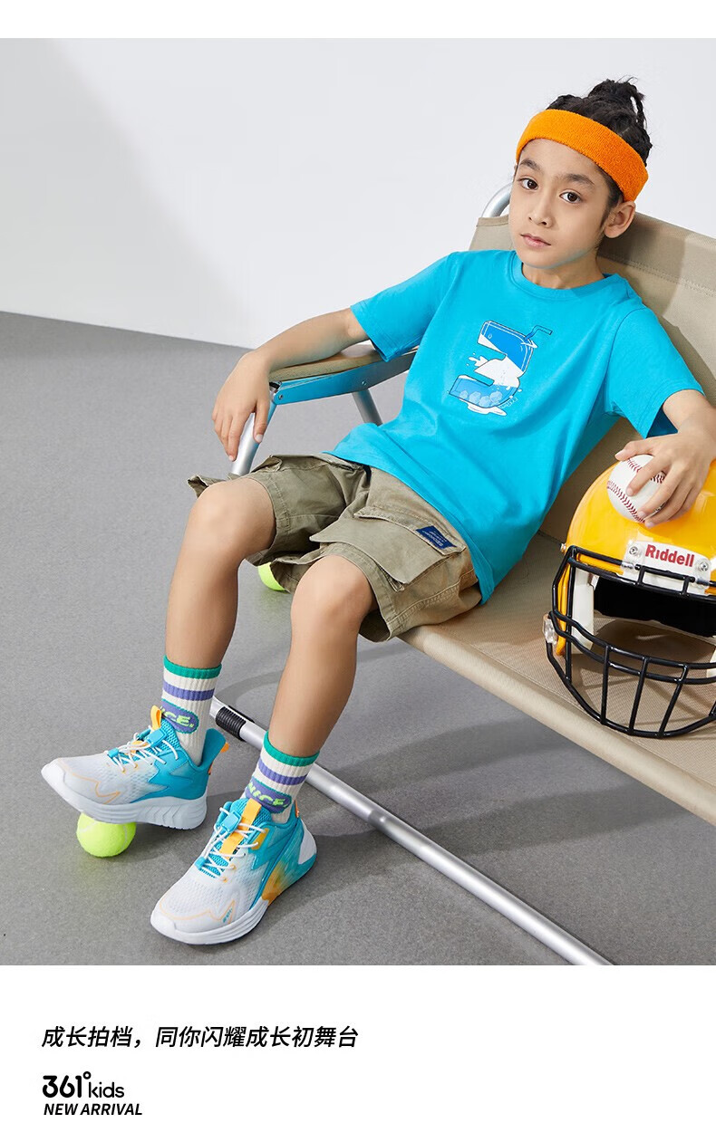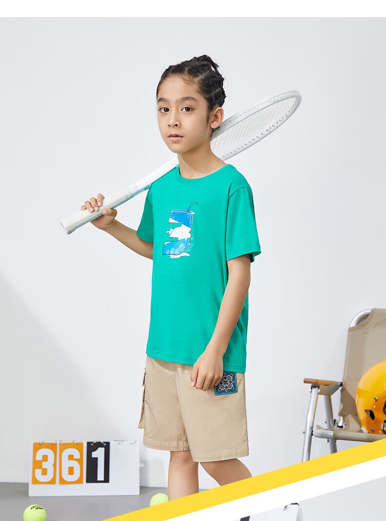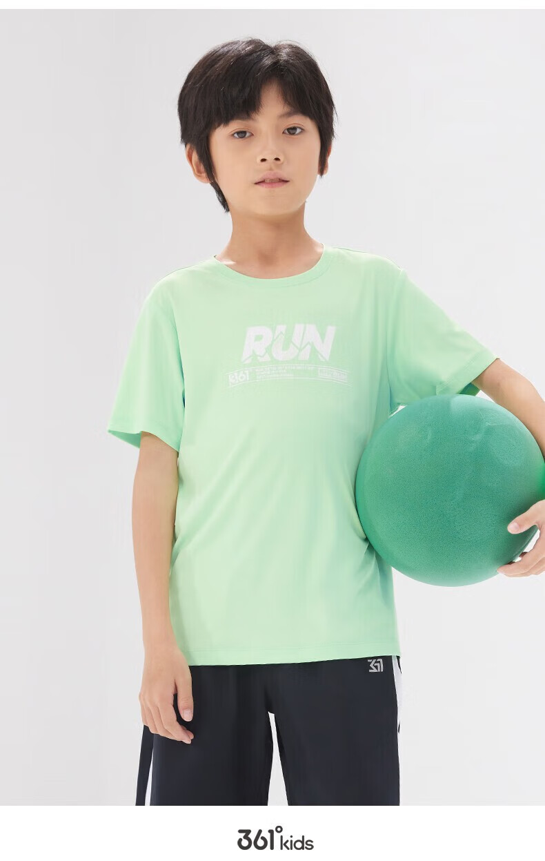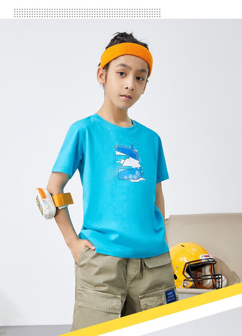 361°童装男女童短袖针织衫年夏季新款速干儿童T恤中大童冰爽上衣 机灵蓝1214-男童 130 cm