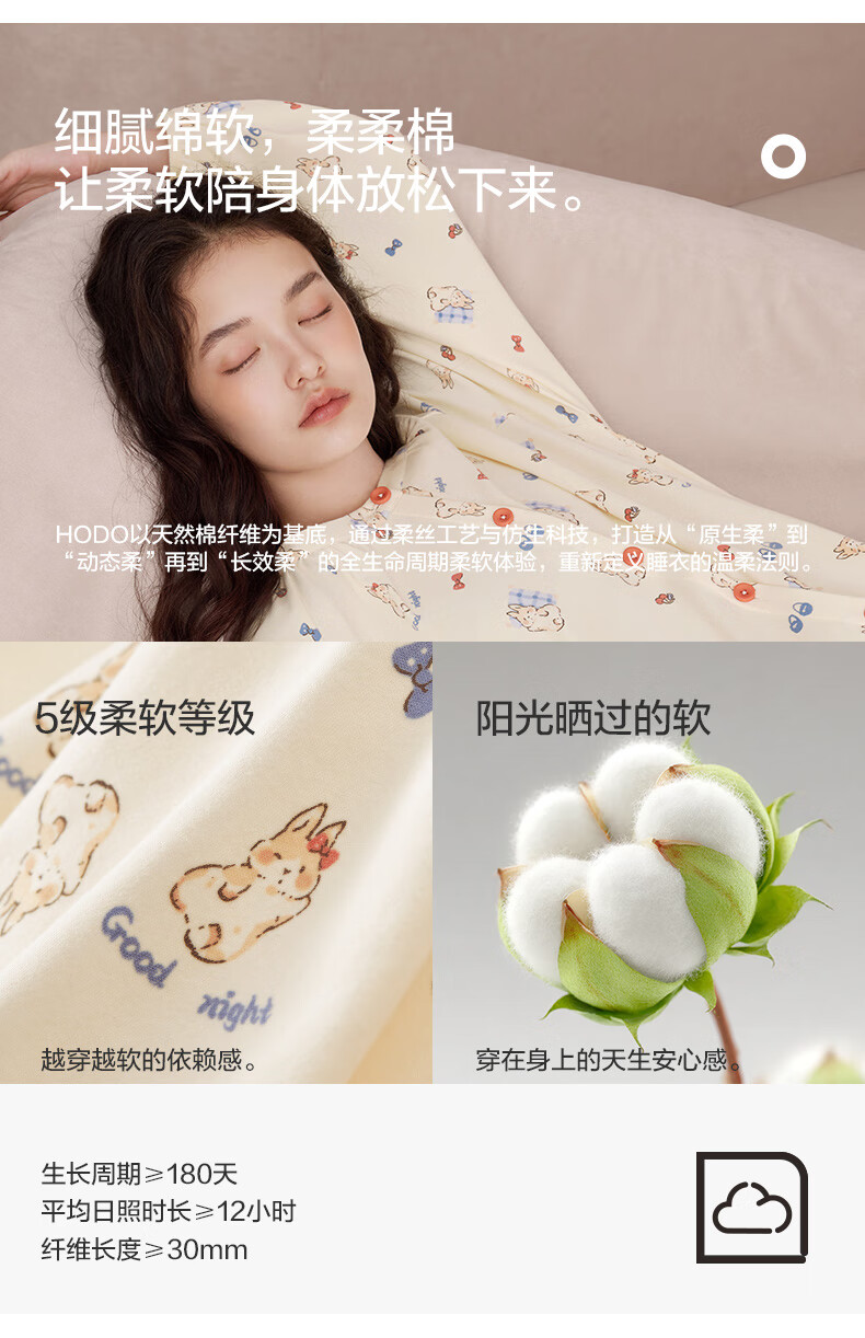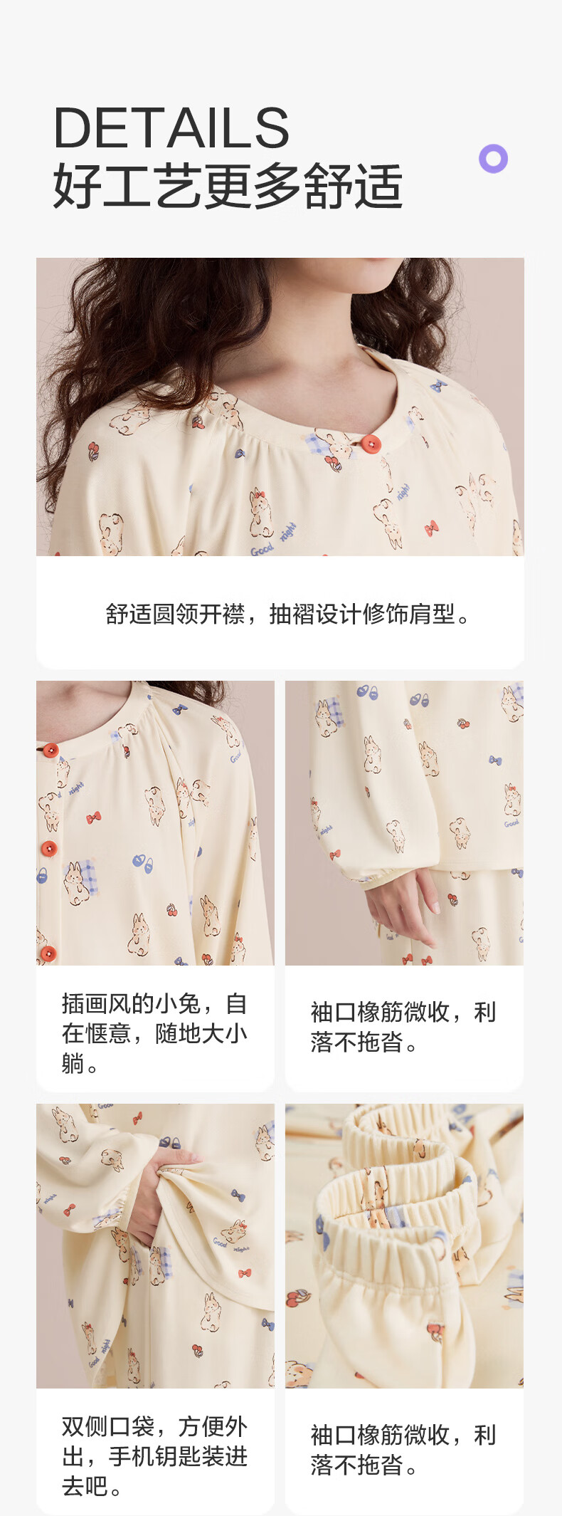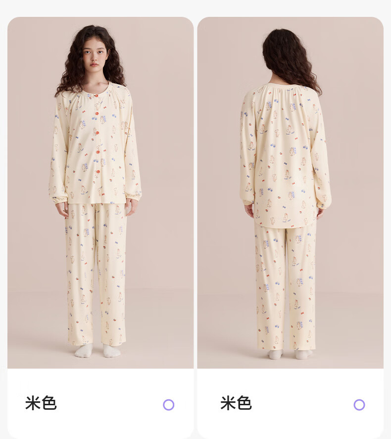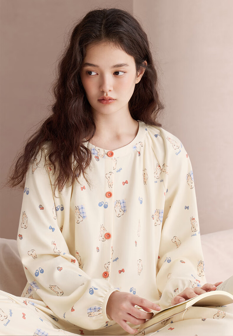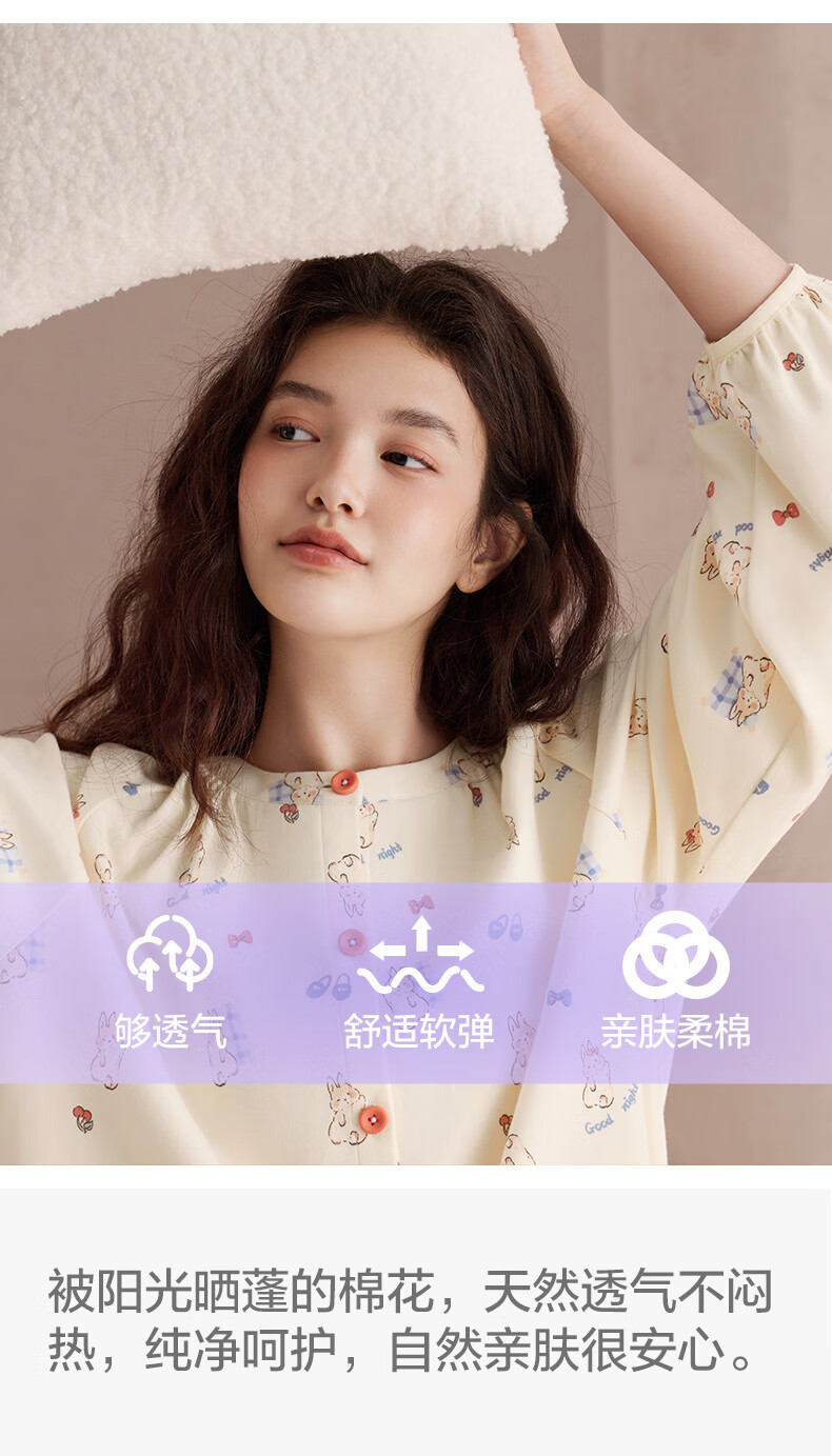 红豆(Hodo)【柔柔棉】纯棉睡衣女长袖可爱印花秋新款全棉透气外穿家居服套装 米色 L (165)