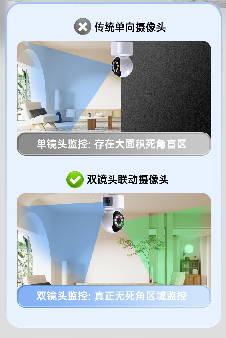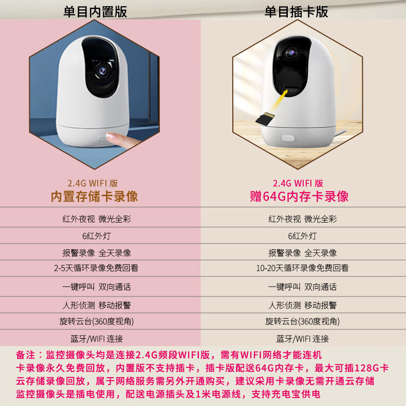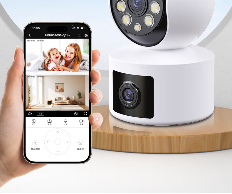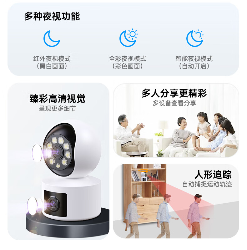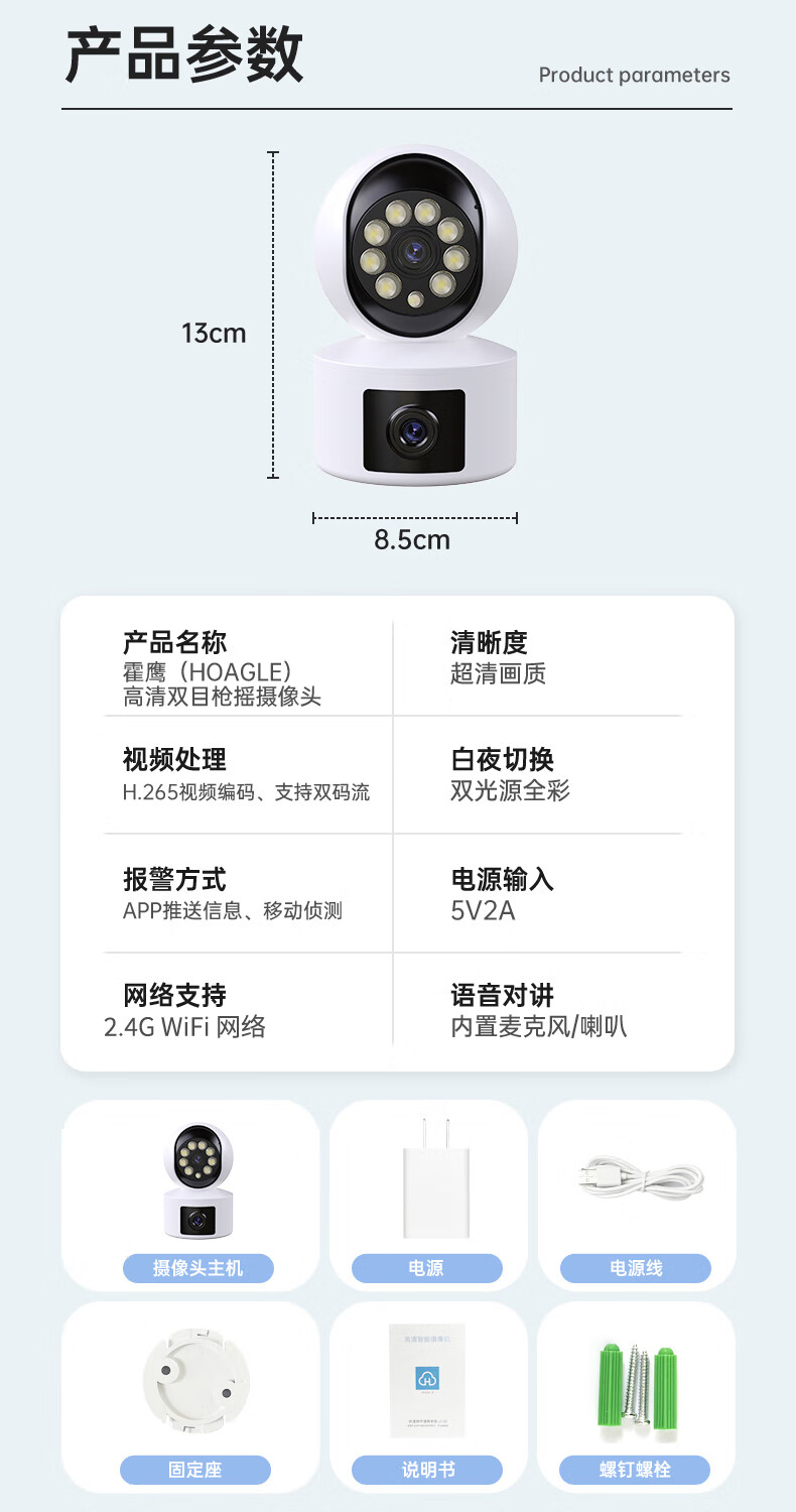 霍鹰智能看护摄像头一键呼叫双向语音对讲老人小孩都会用人形移动检测报警录音录像远程监控器宠物照看 【双镜头插卡版】64G卡+录像回看+语音对讲