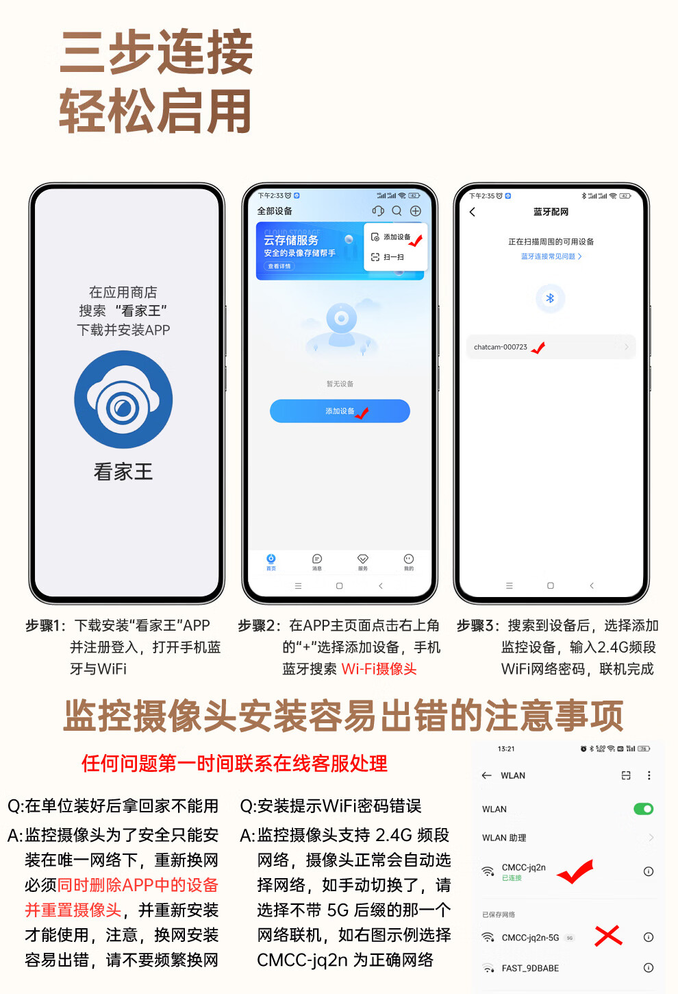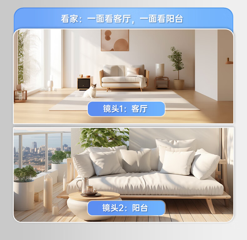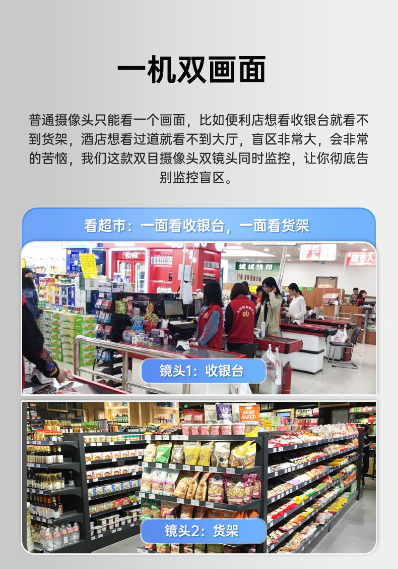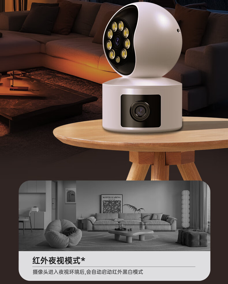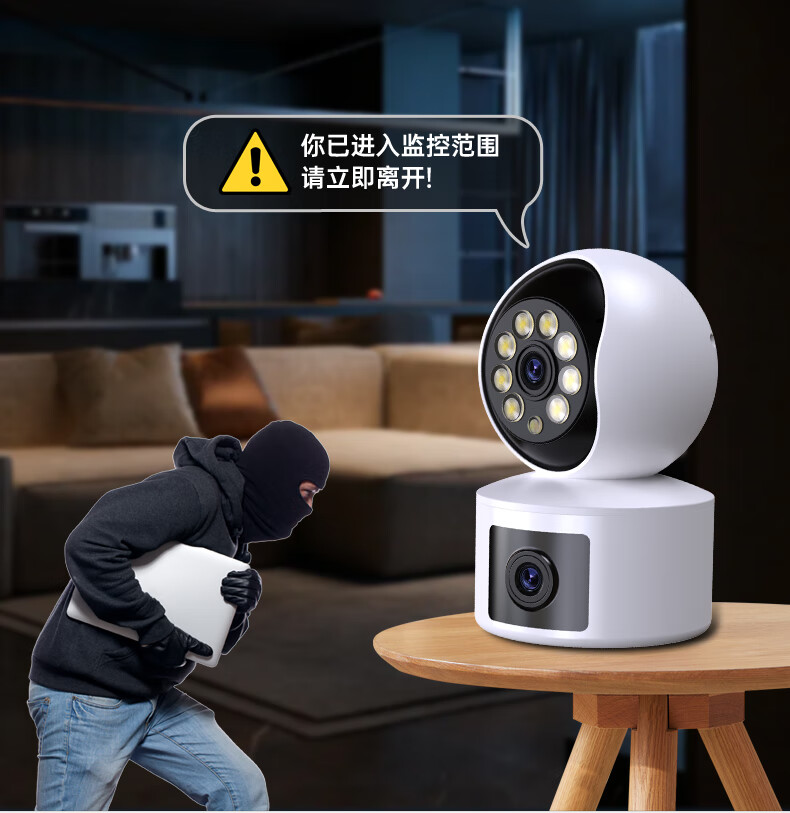 霍鹰智能看护摄像头一键呼叫双向语音对讲老人小孩都会用人形移动检测报警录音录像远程监控器宠物照看 【双镜头插卡版】64G卡+录像回看+语音对讲