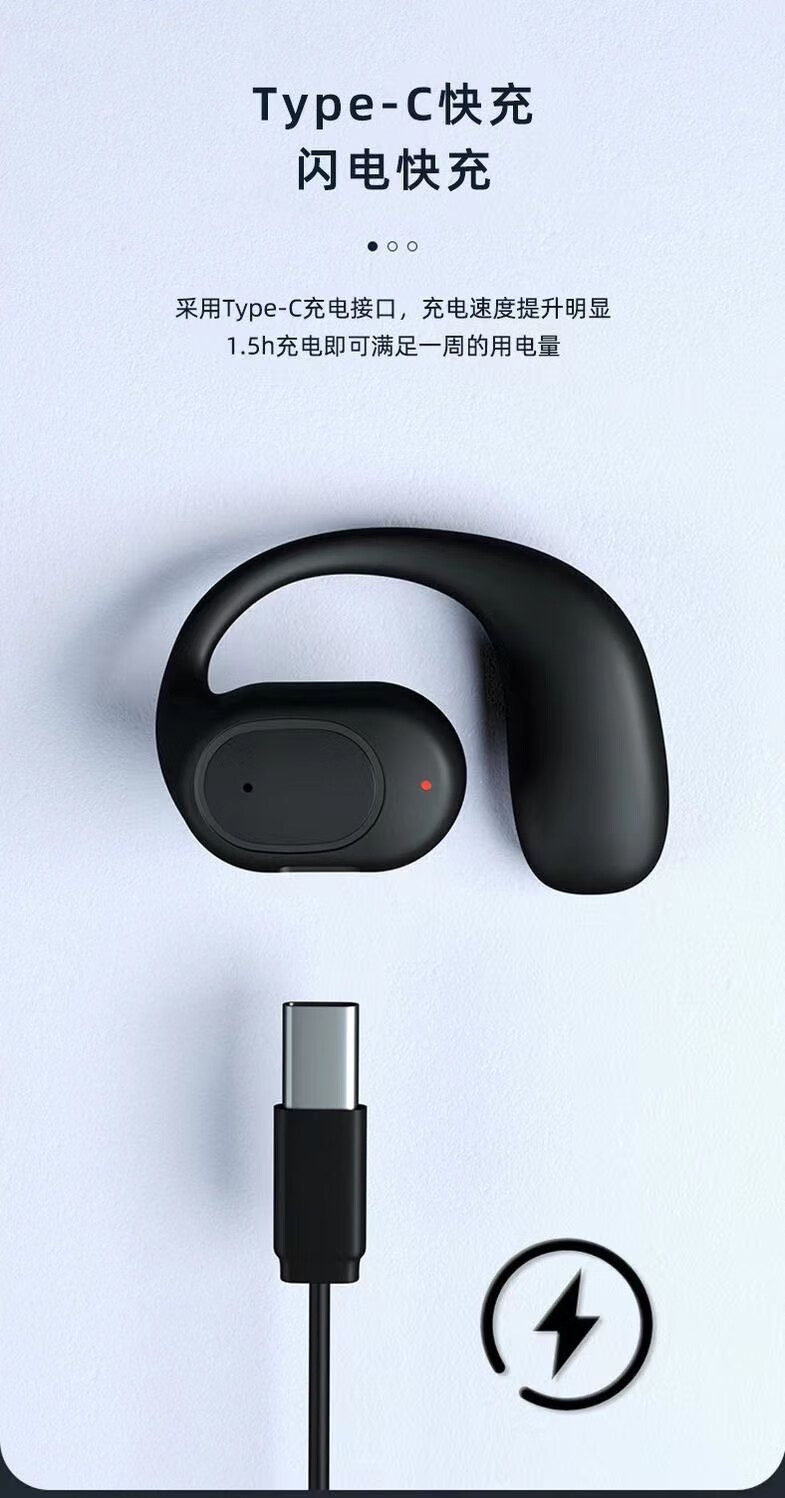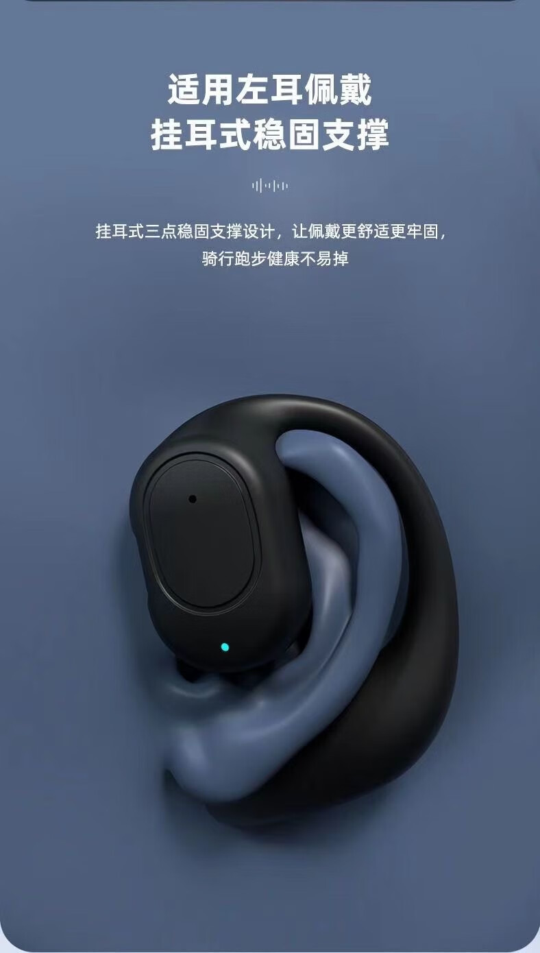 鑫羽音【优选好物】 通用无线蓝牙耳机开放不入耳挂耳式气骨传导超长续航开车运动音乐高清通话适用于华 顶配黑-HiFi音效+长续航+蓝牙5.3 单左耳【手机通用】送充电线