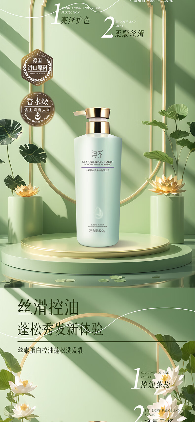 淳养丝素蛋白去屑止痒洗发水氨基酸控油蓬松洗头膏持久留香洗发露女 去屑止痒洗发水+烫染护发素 丝素蛋白精华