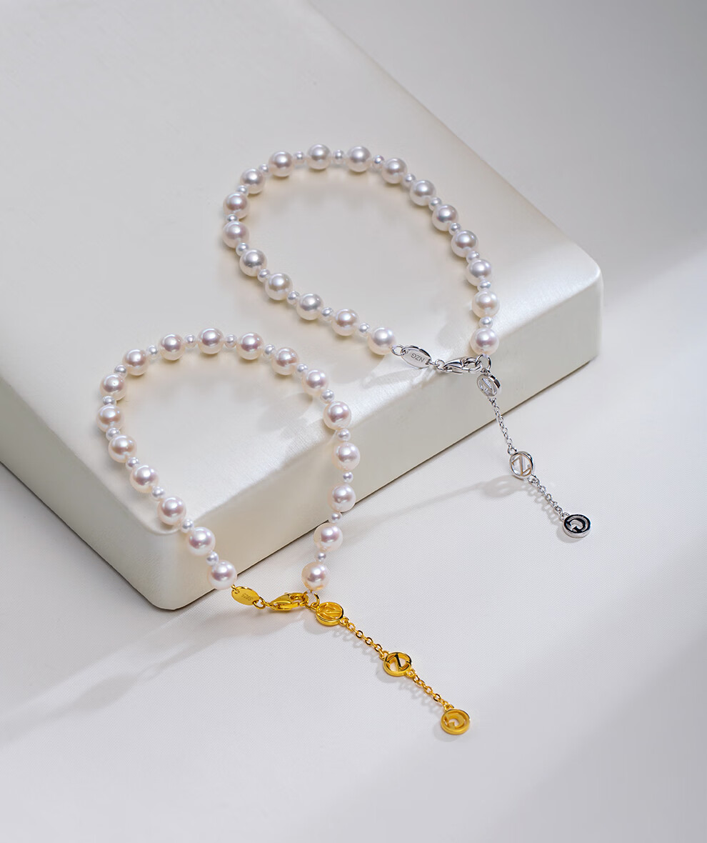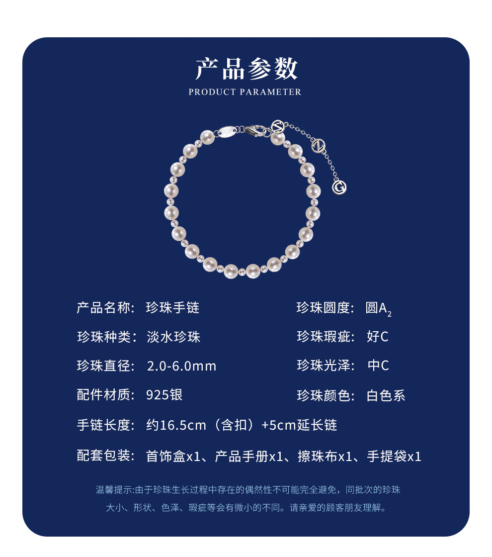 南珠宫淡水珍珠手链简约百搭年轻款生日礼物送女友C-HJS108SD-J 银色 2.0-6.0mm约16.5cm(含扣)+5cm延长链