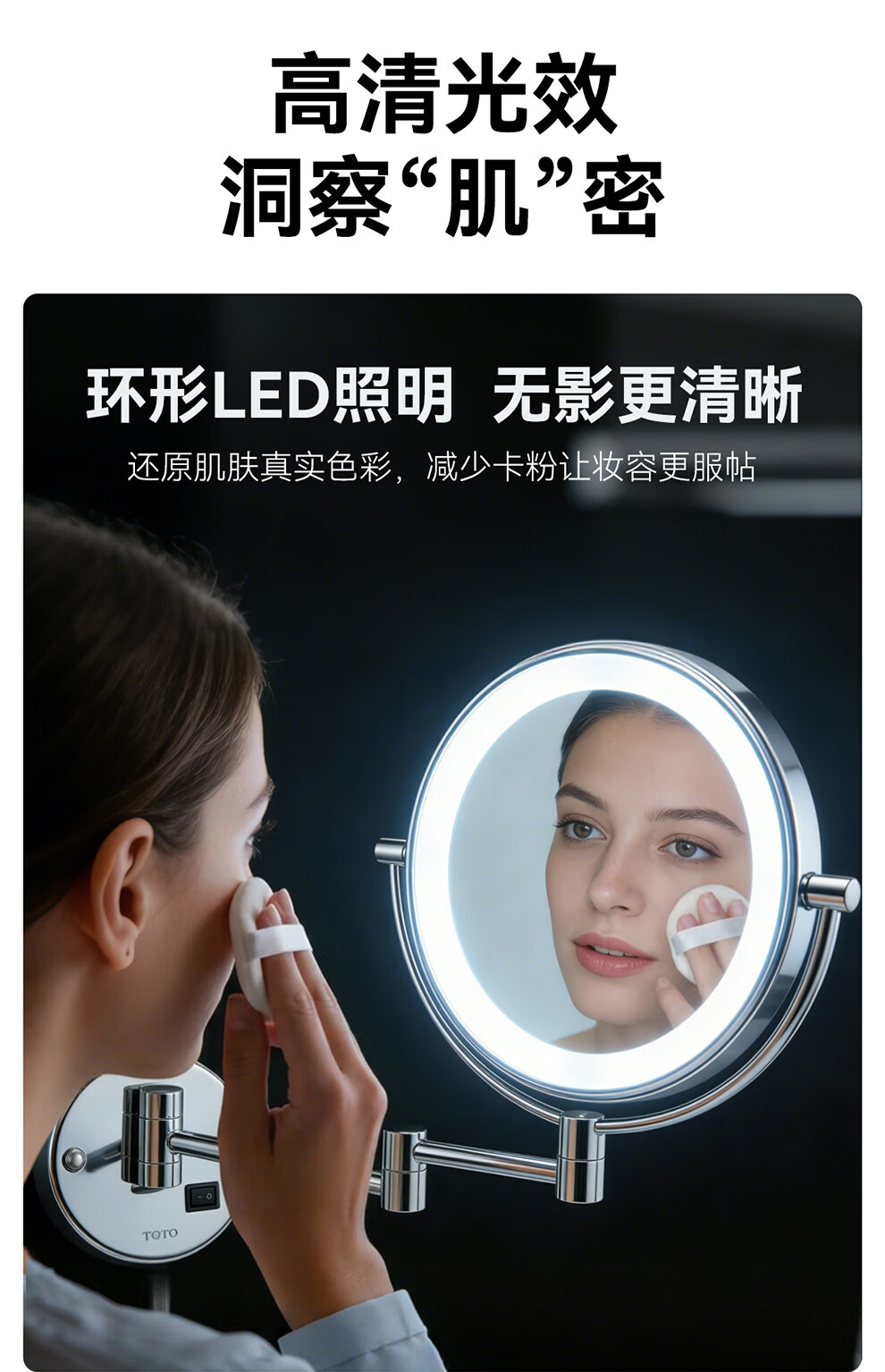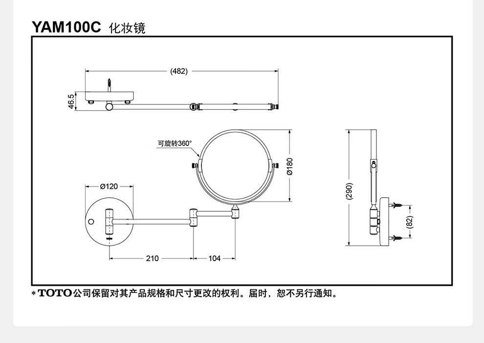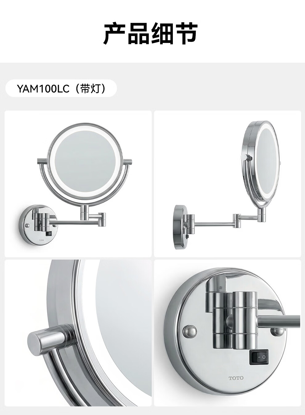 TOTO卫生间镜子洗手间放大化妆镜挂墙伸缩镜折叠壁挂双面梳妆镜(11) YAM100C【可伸缩 3倍放大】
