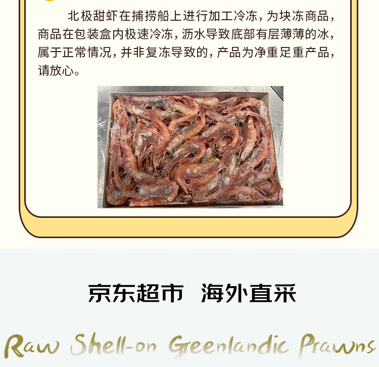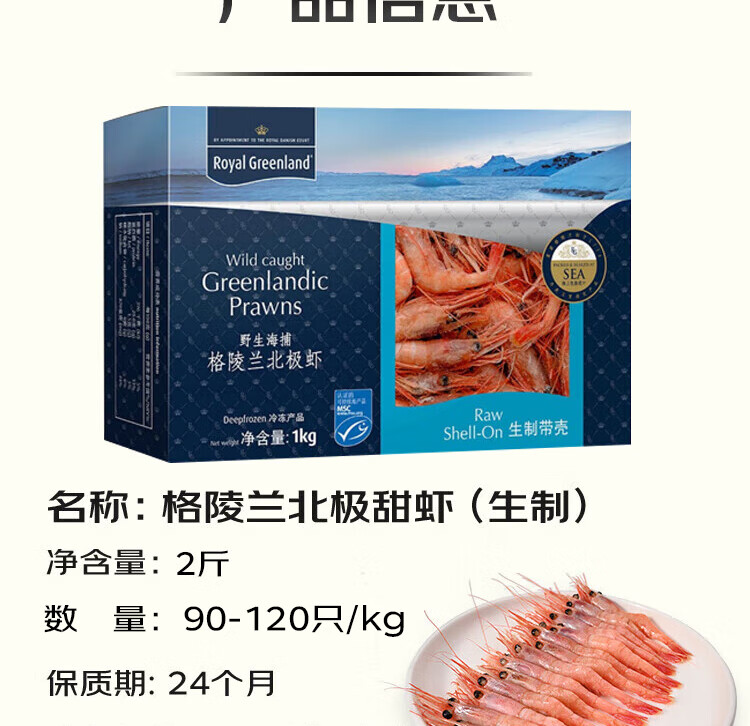 京东超市北极甜虾刺身2斤 90-120只/盒 MSC认证 新老包装交替