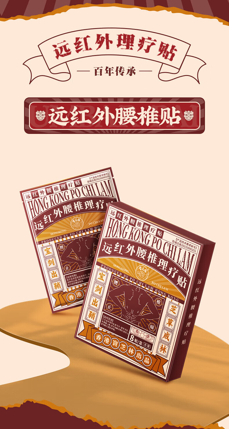 关德兴香港宝芝林腰椎间盘突出膏药压迫神经腰肌劳损腰椎间盘专用贴3盒