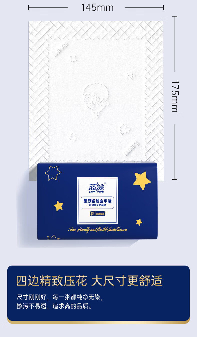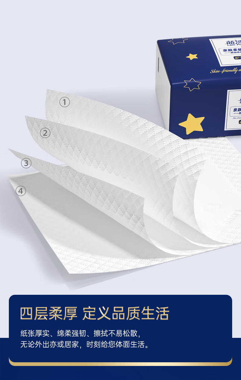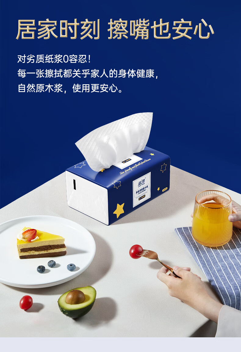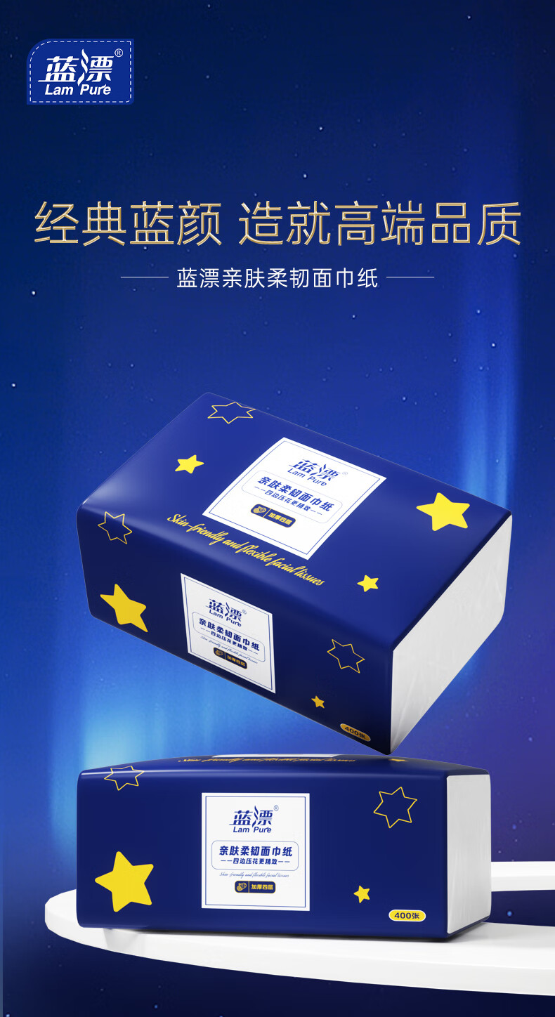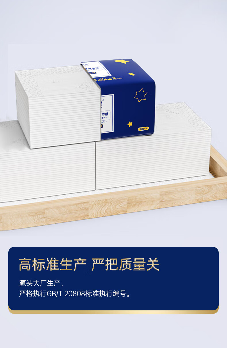 蓝漂抽纸4层400张*20包加厚原生木浆家用卫生纸巾面巾餐巾纸抽整箱装