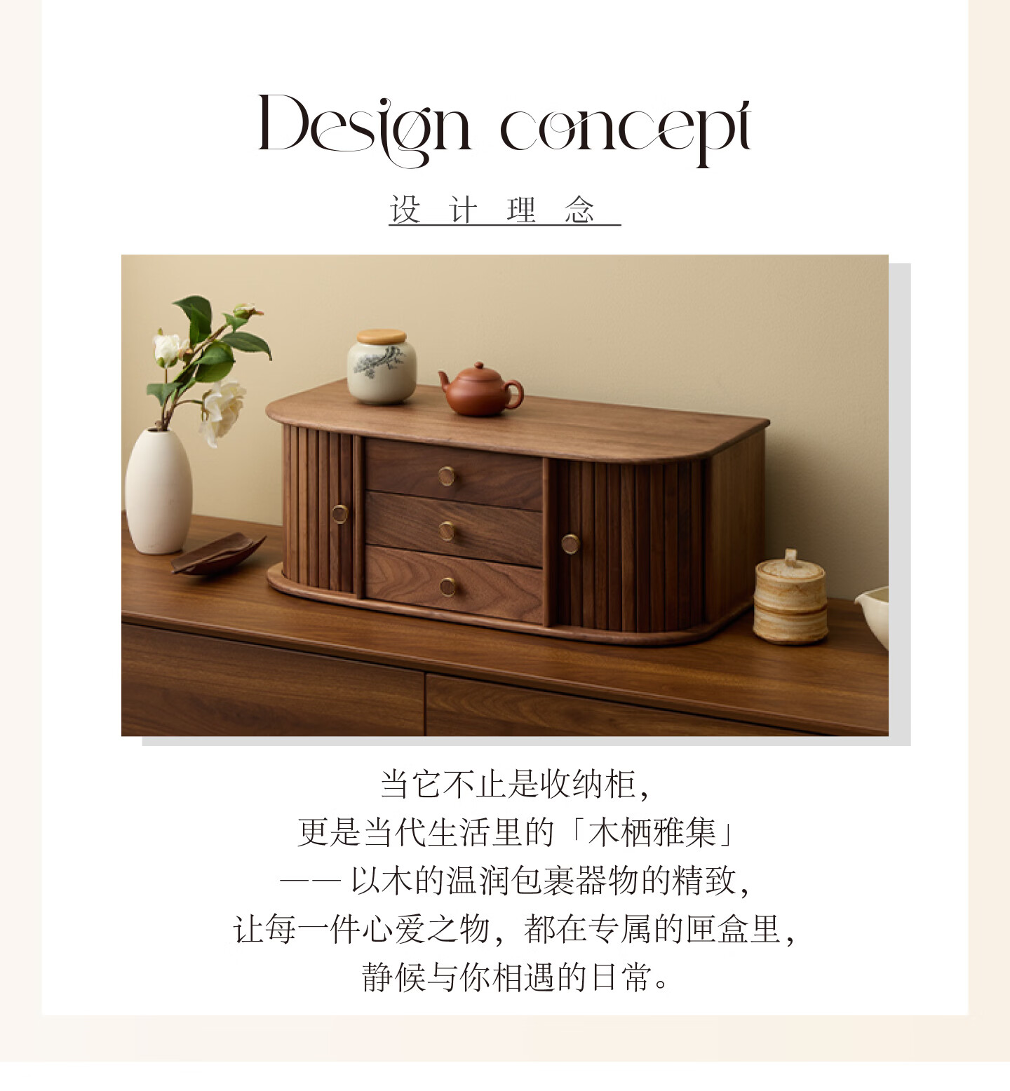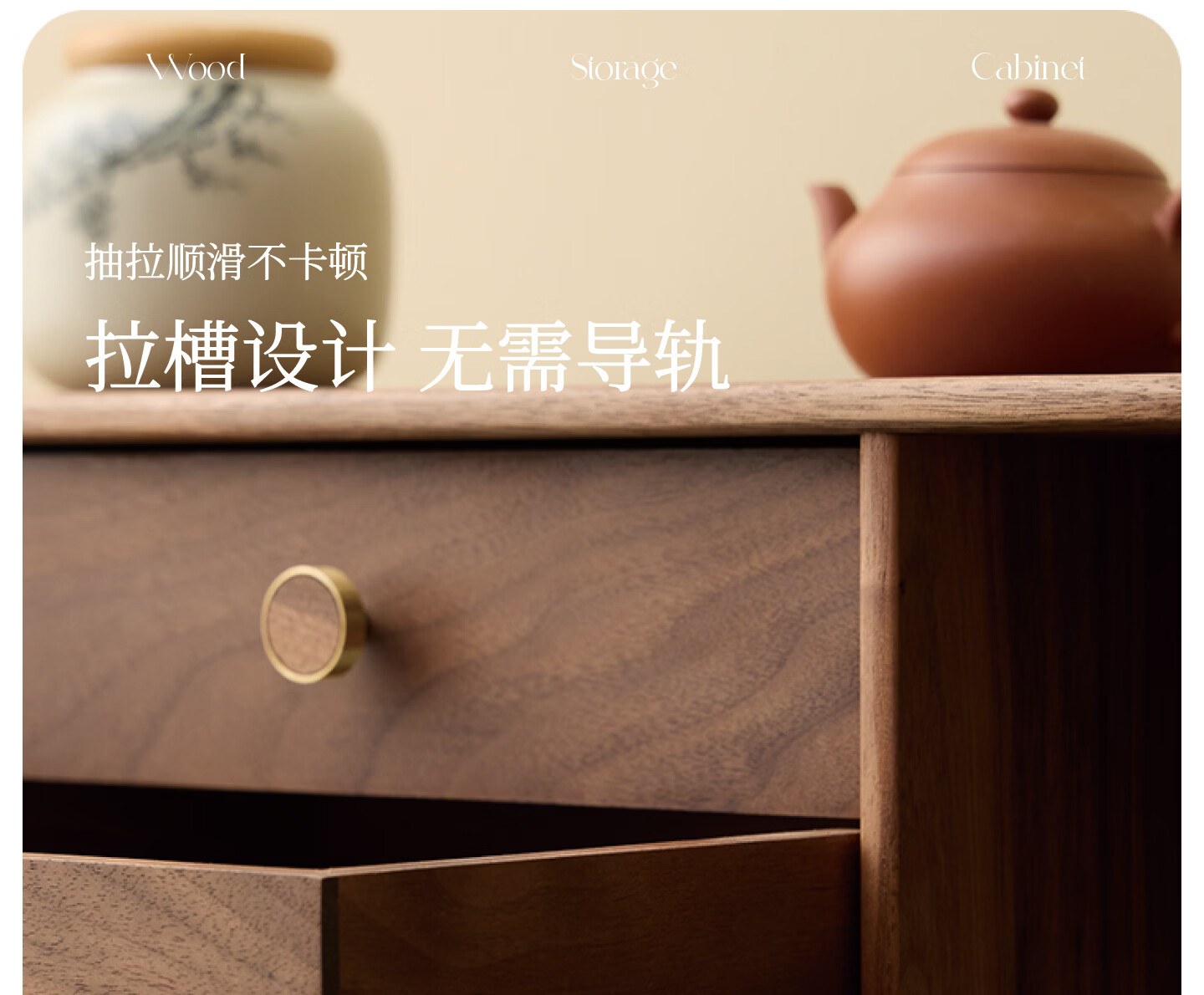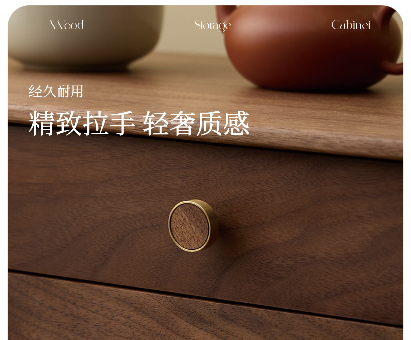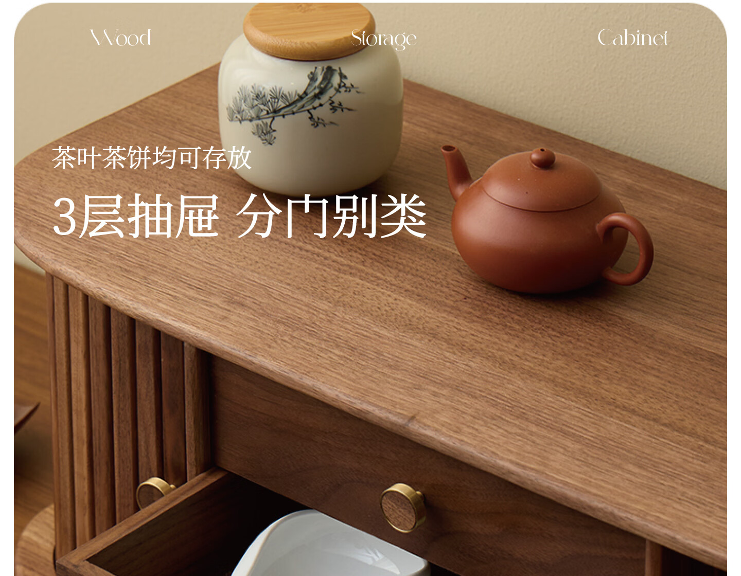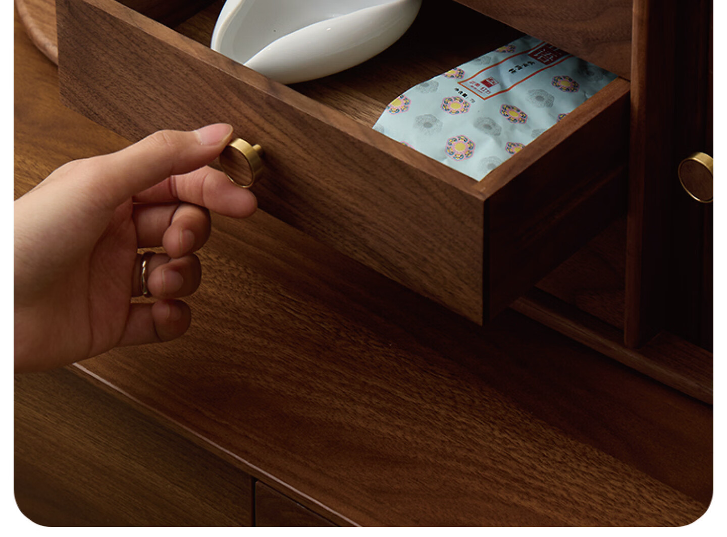 梵瀚黑胡桃木桌面收纳柜新中式抽屉收纳柜轻奢杂物茶具茶杯储物柜 云溪收纳柜 黑胡桃木