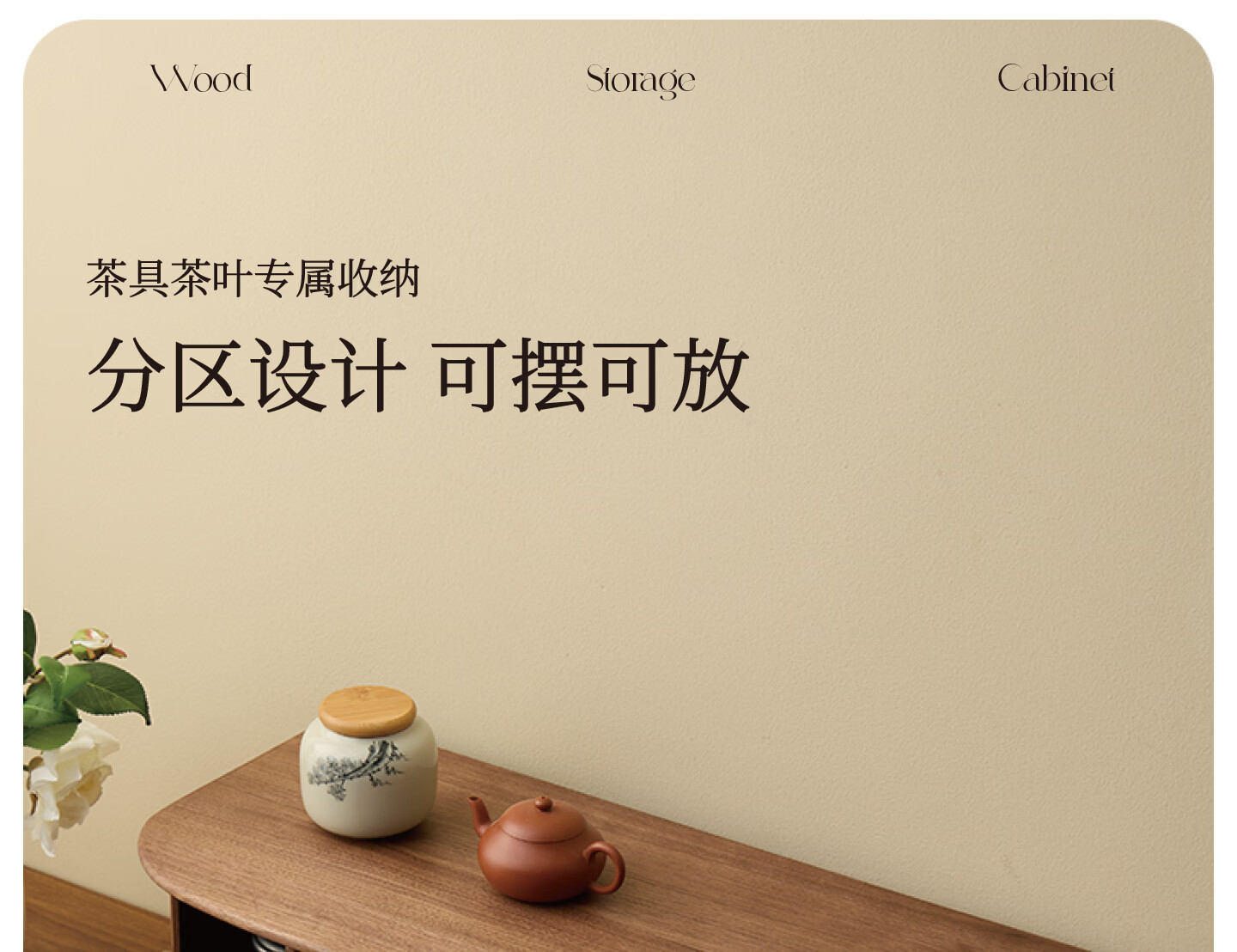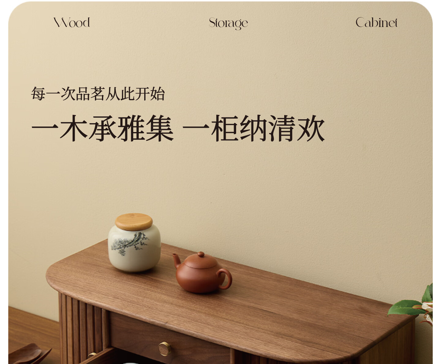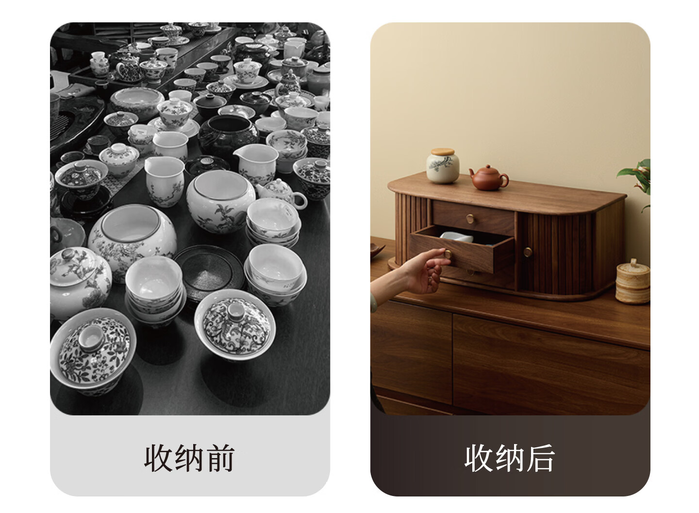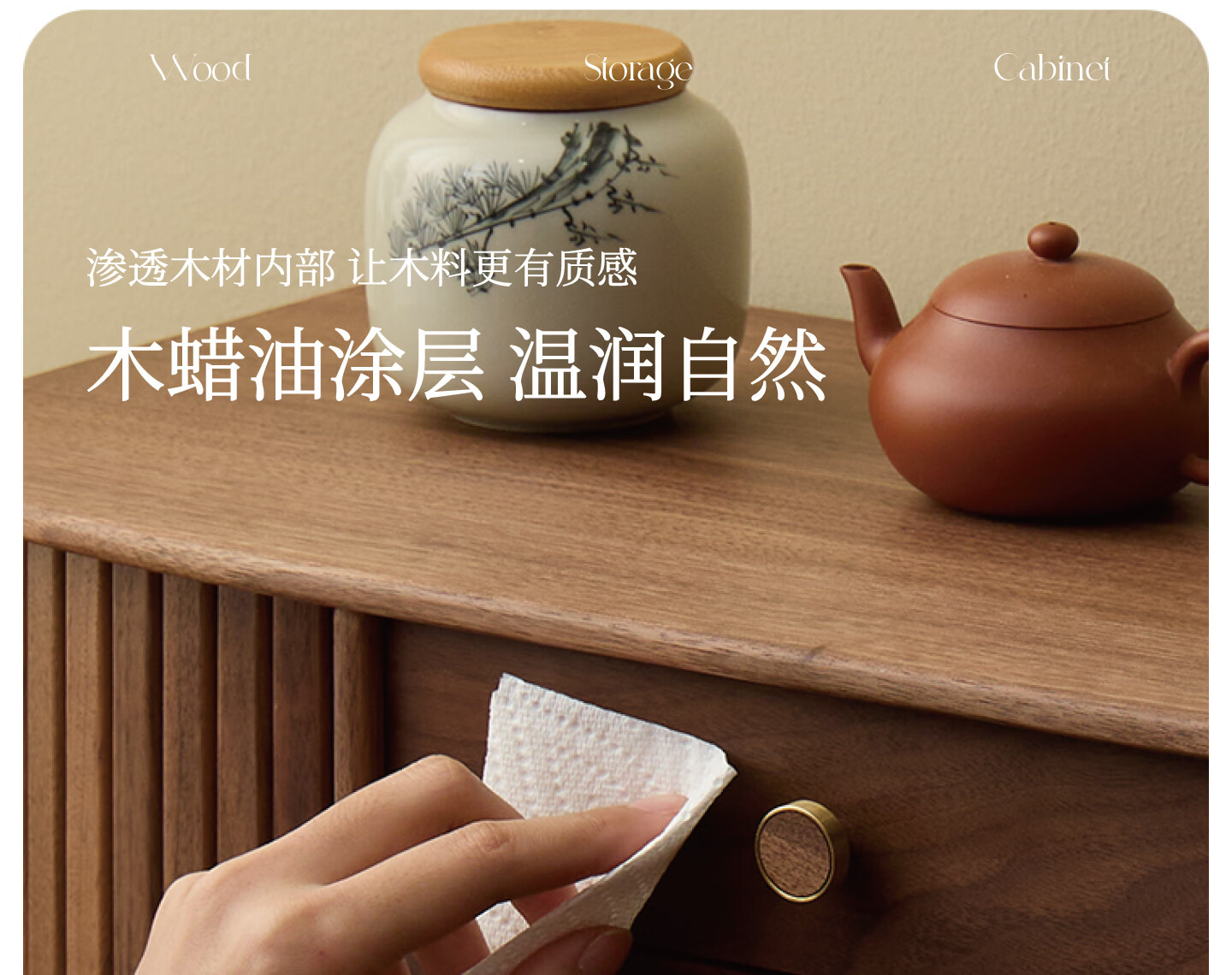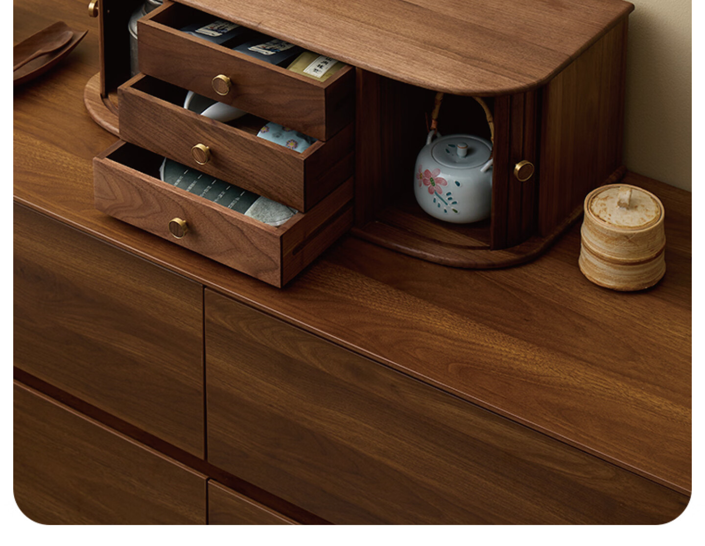 梵瀚黑胡桃木桌面收纳柜新中式抽屉收纳柜轻奢杂物茶具茶杯储物柜 云溪收纳柜 黑胡桃木