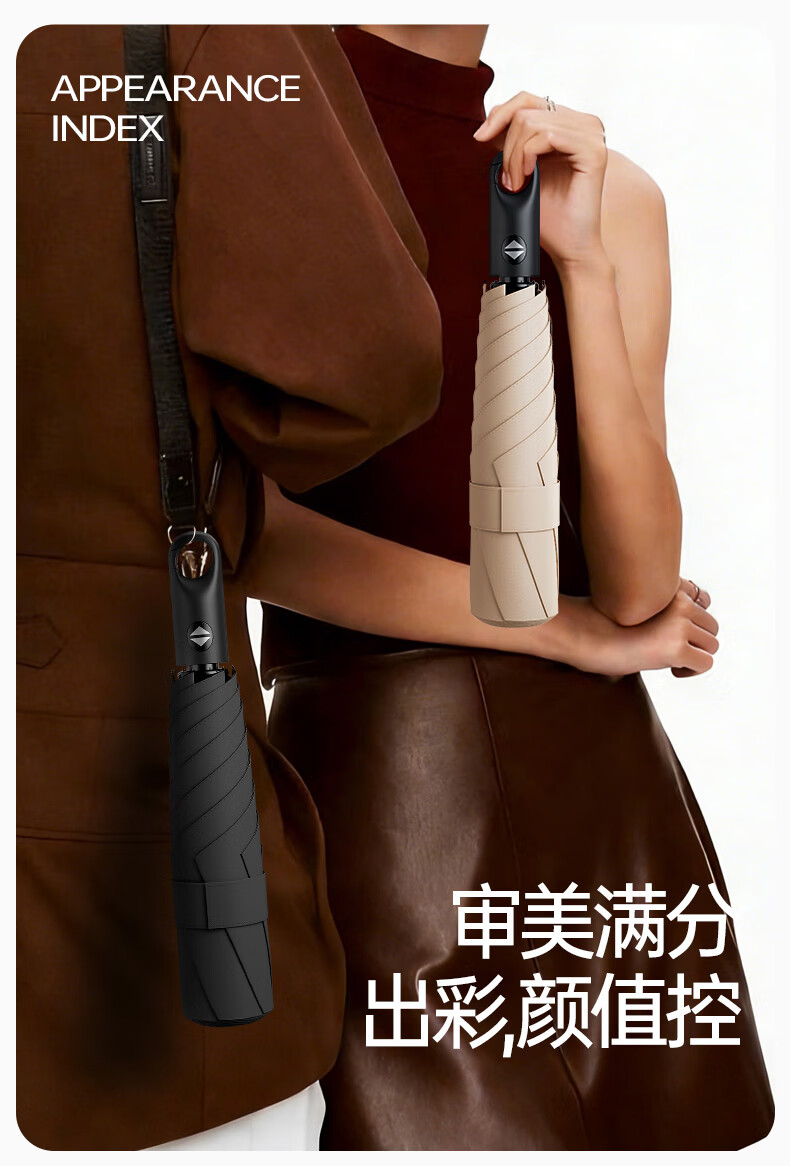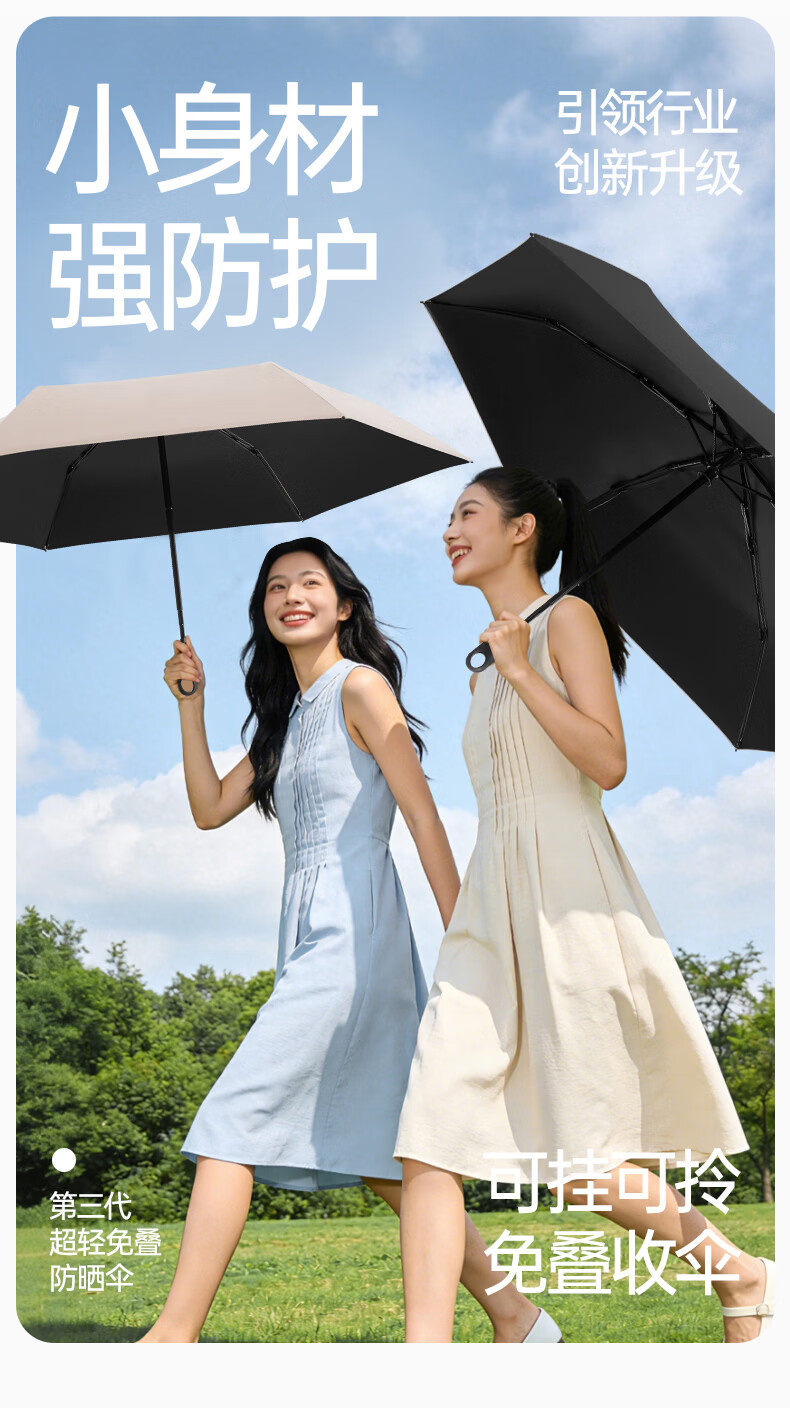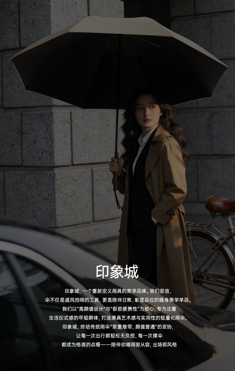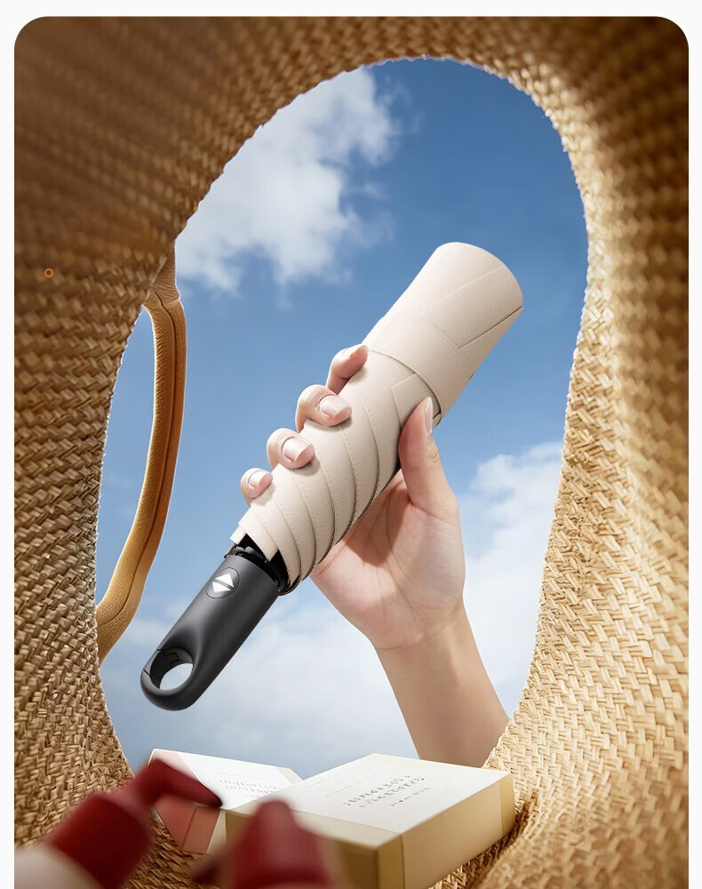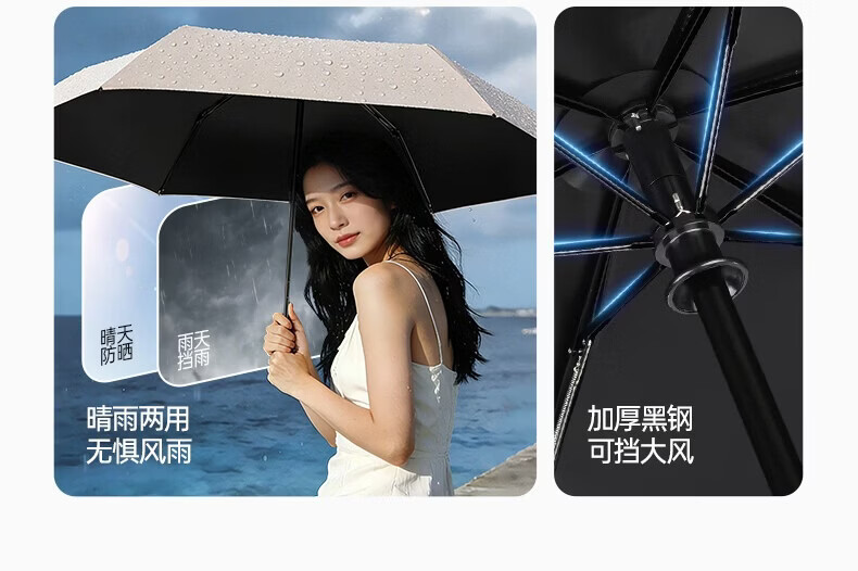 印象城易折叠自动雨伞晴雨两用黑胶防晒遮阳伞轻小可折叠迷你便携太阳伞 易折叠-黑色