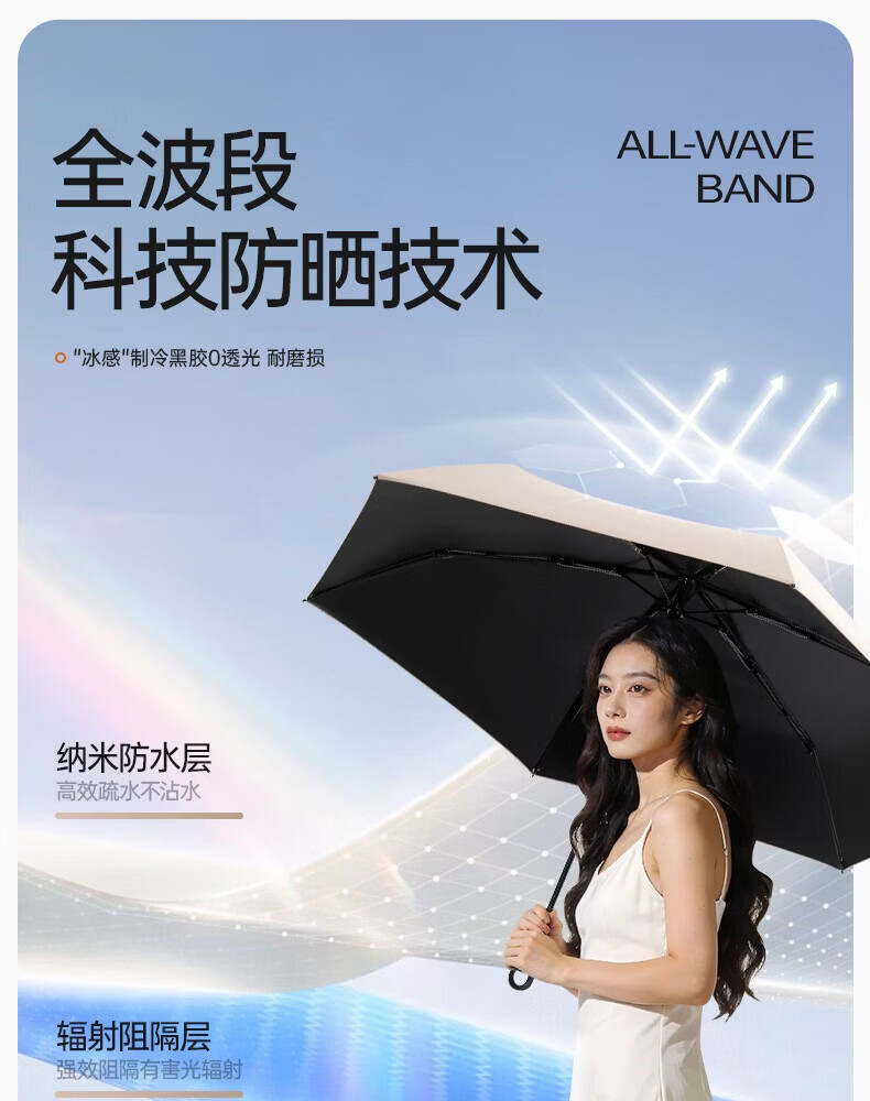 天堂伞新品防晒防紫外线太阳伞遮阳伞印花卡通便携折叠晴雨伞两用女 三折-水光蓝