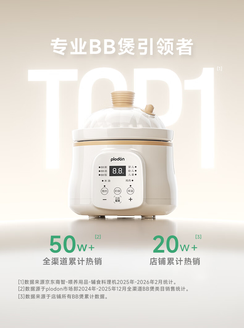 浦利顿(PLODON)电炖锅分月龄BB煲粥饭锅微压炖汤辅食机升级AI防糊防溢宝宝辅食锅
