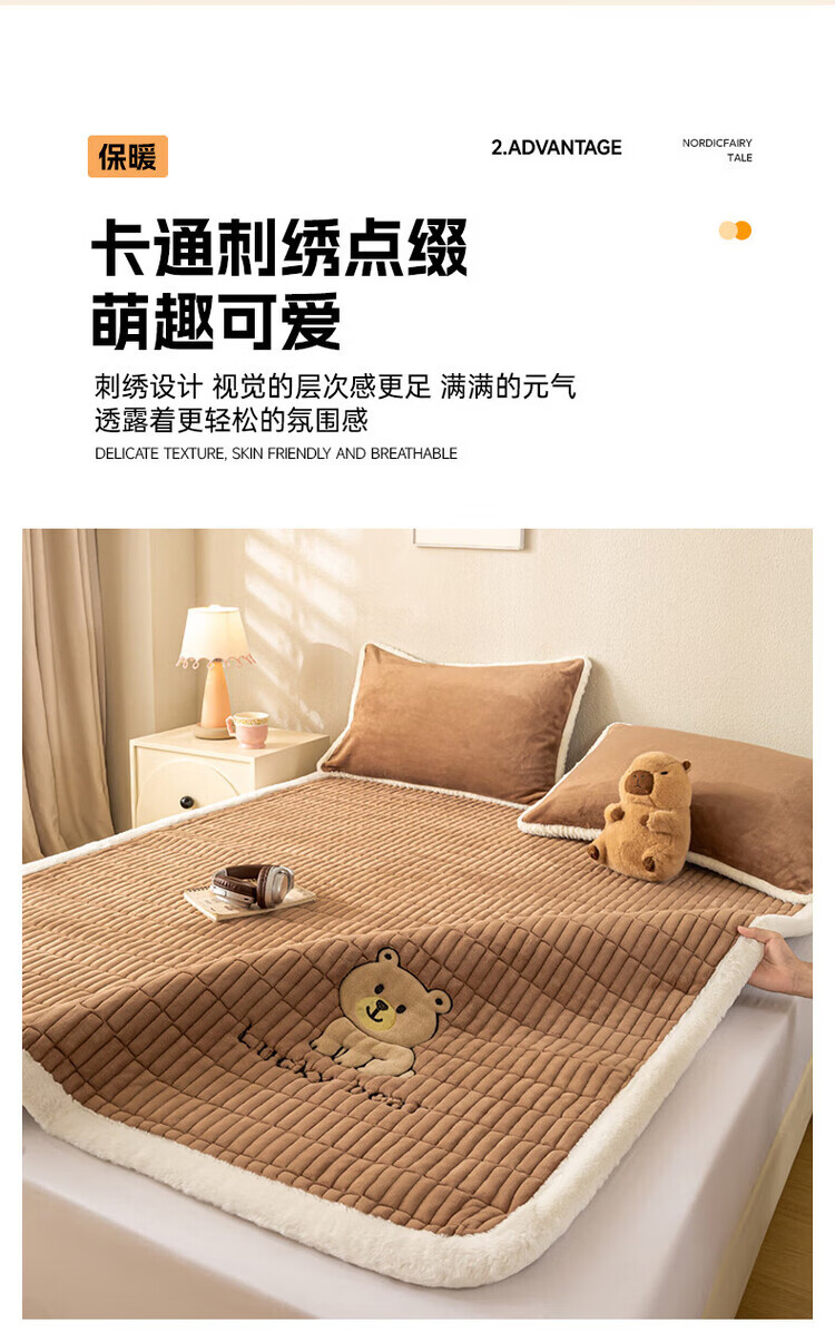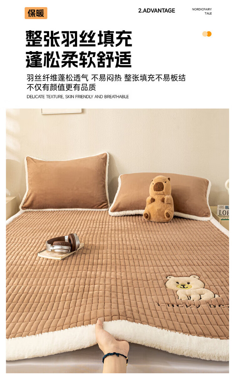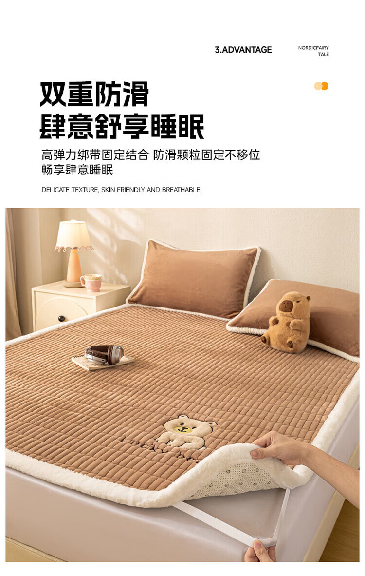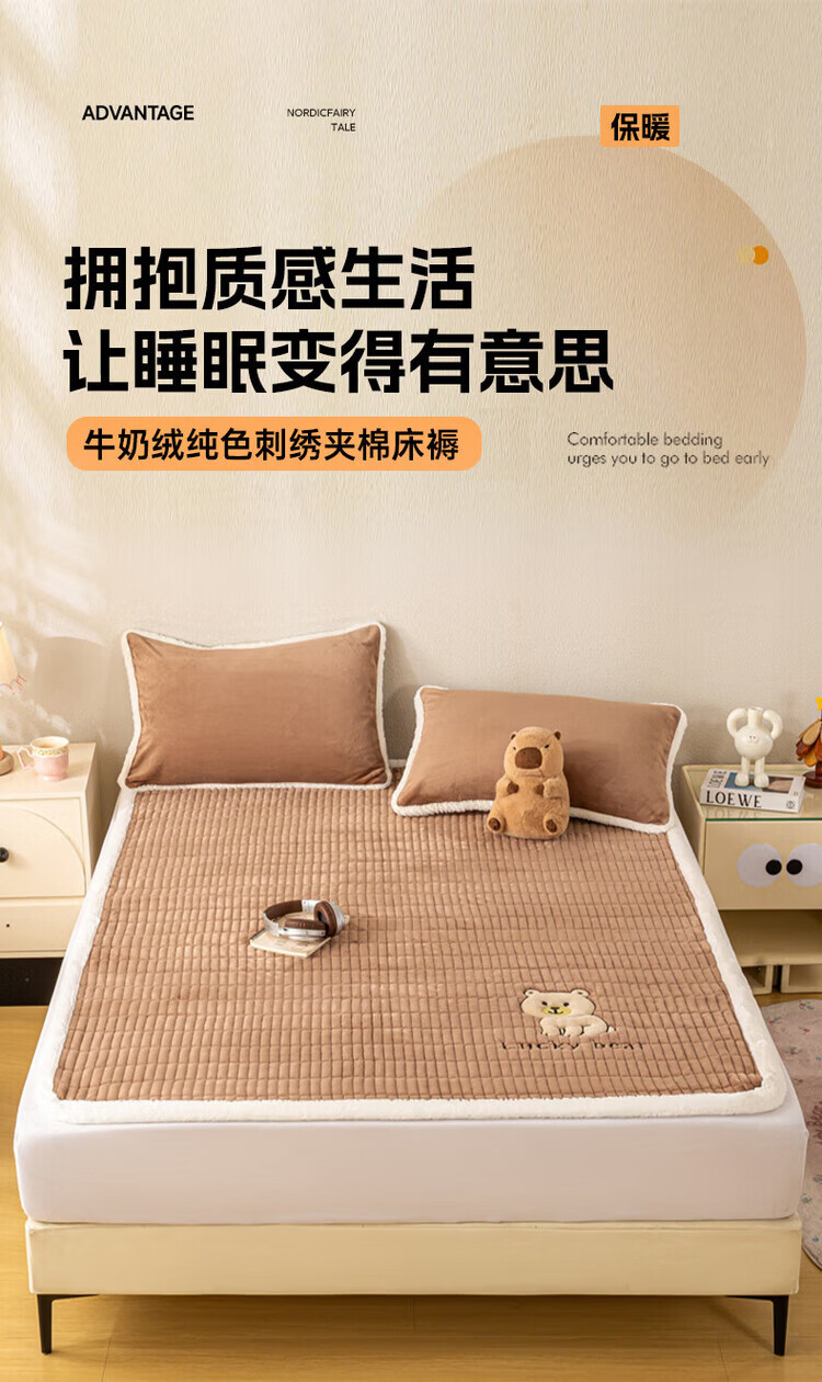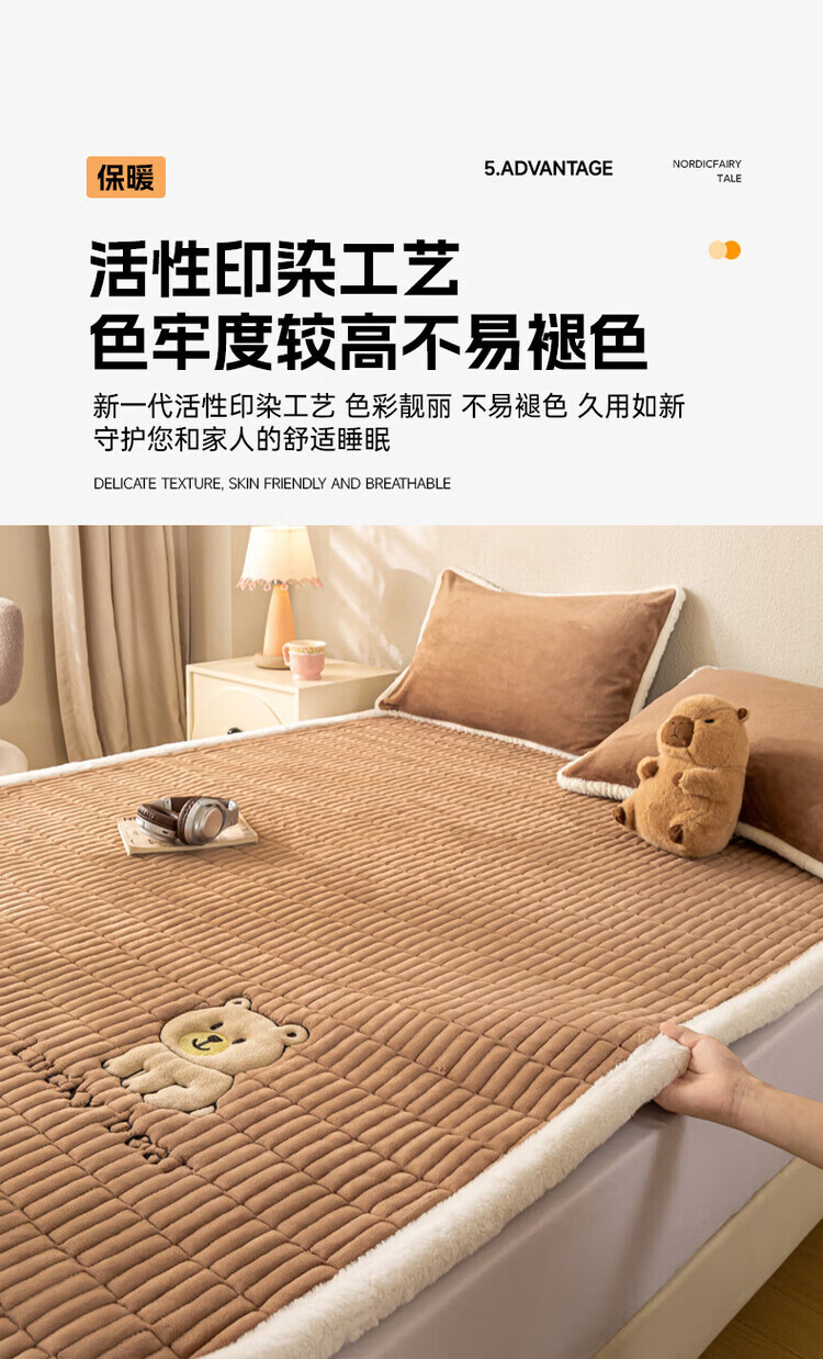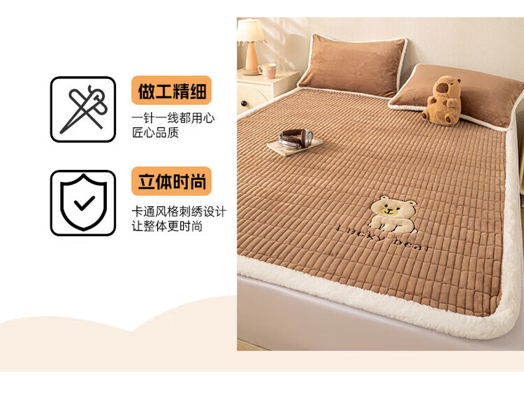 无印良品牛奶绒床褥软盖垫加厚床铺垫被冬季加绒床垫遮盖物床褥子 维尼-咖 【单床褥】150*200cm