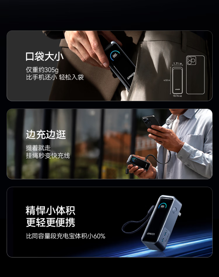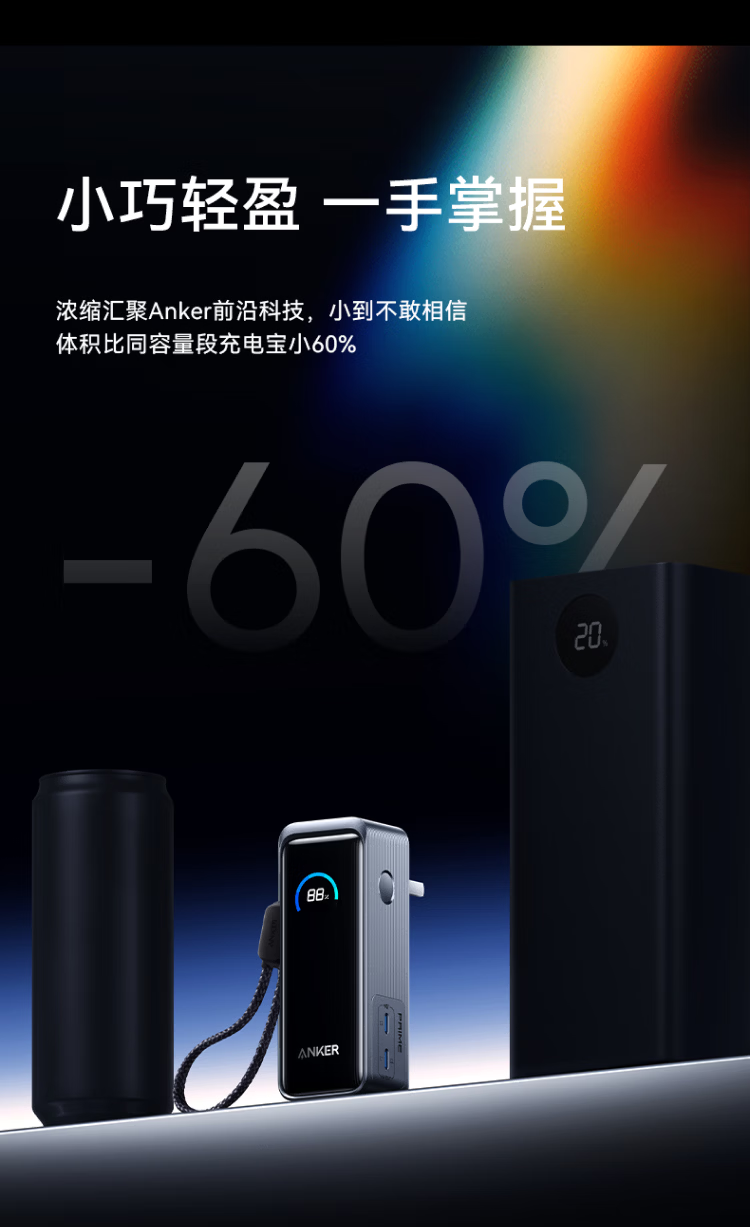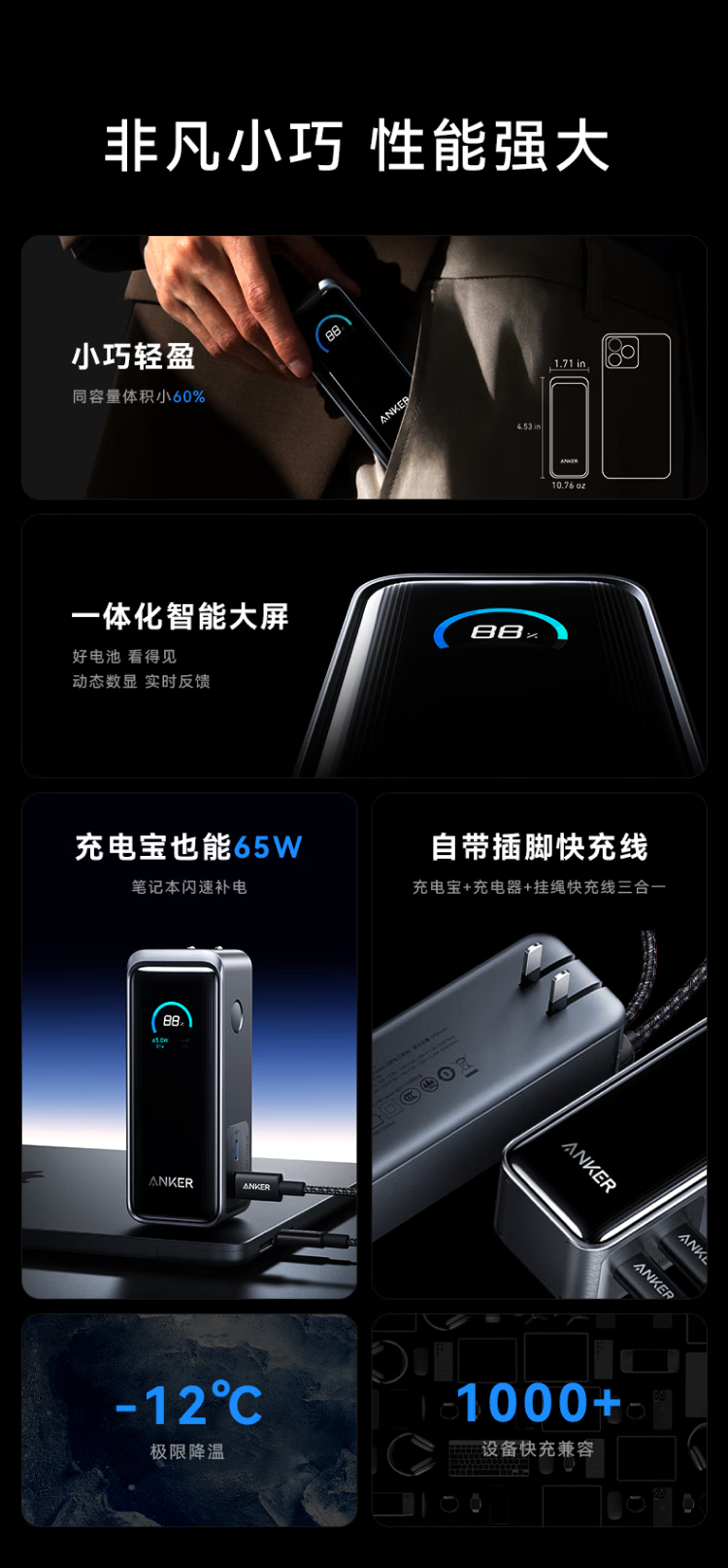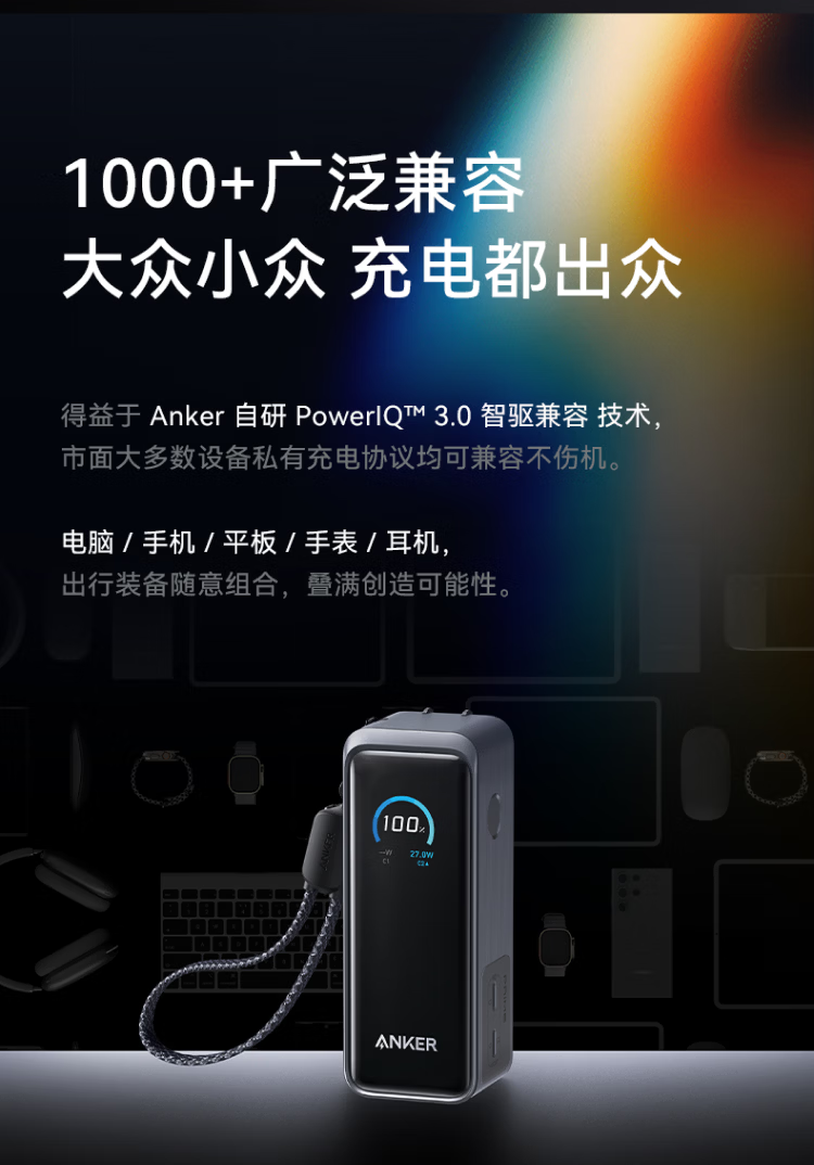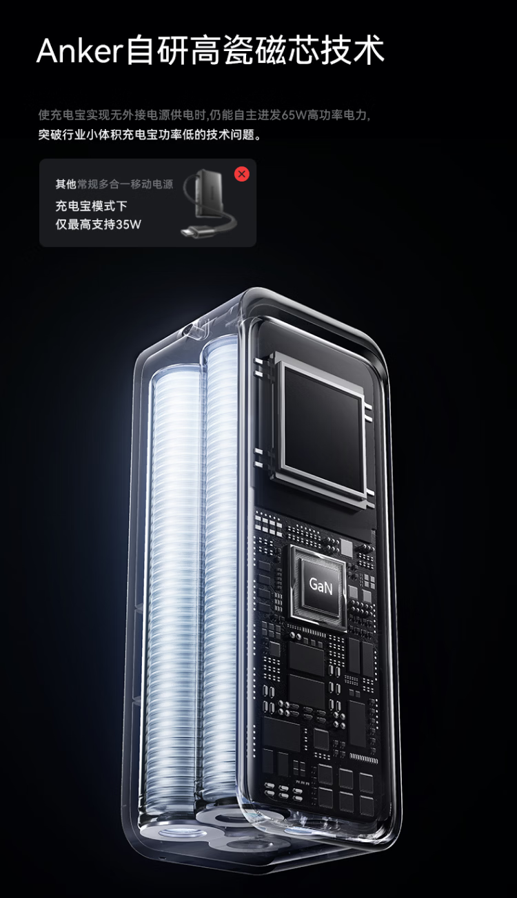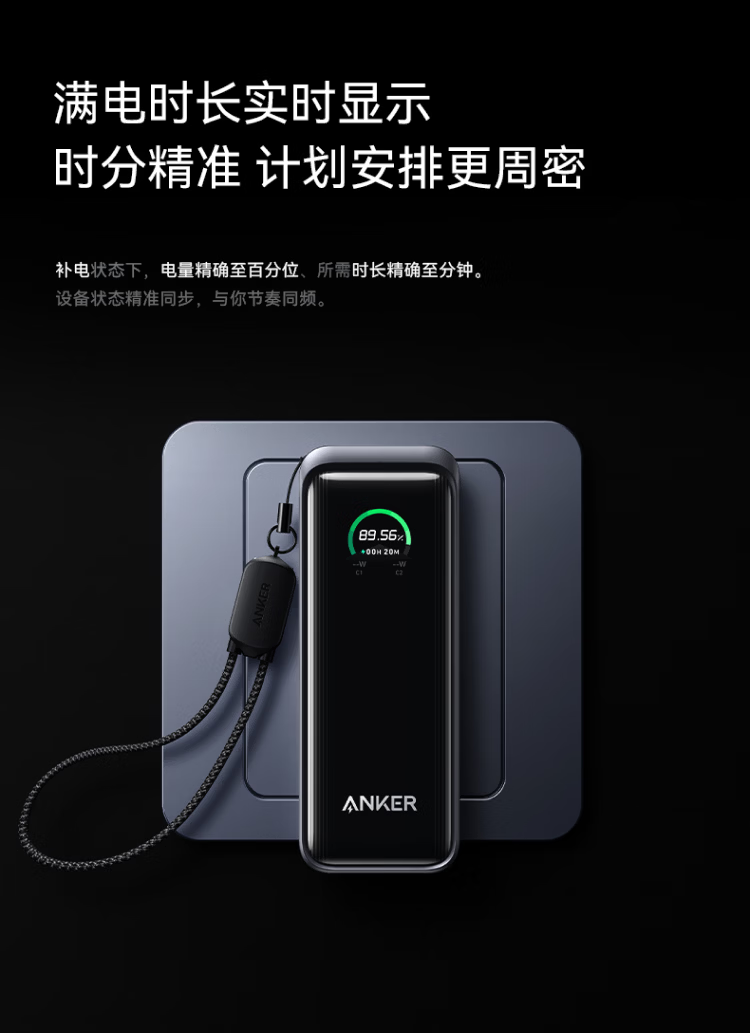 ANKERPrime【3C认证上飞机】安克充电宝自带插头器三二合一便携65W超快充笔记本移动电源户外储能电源