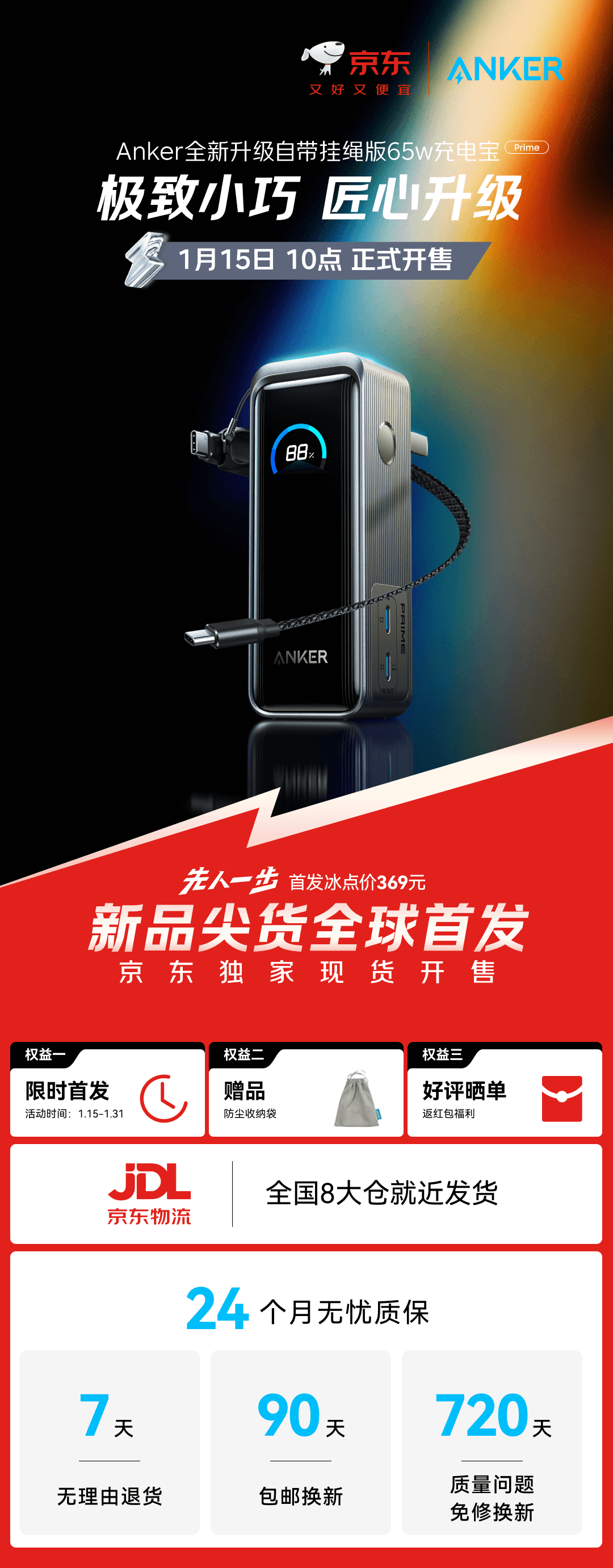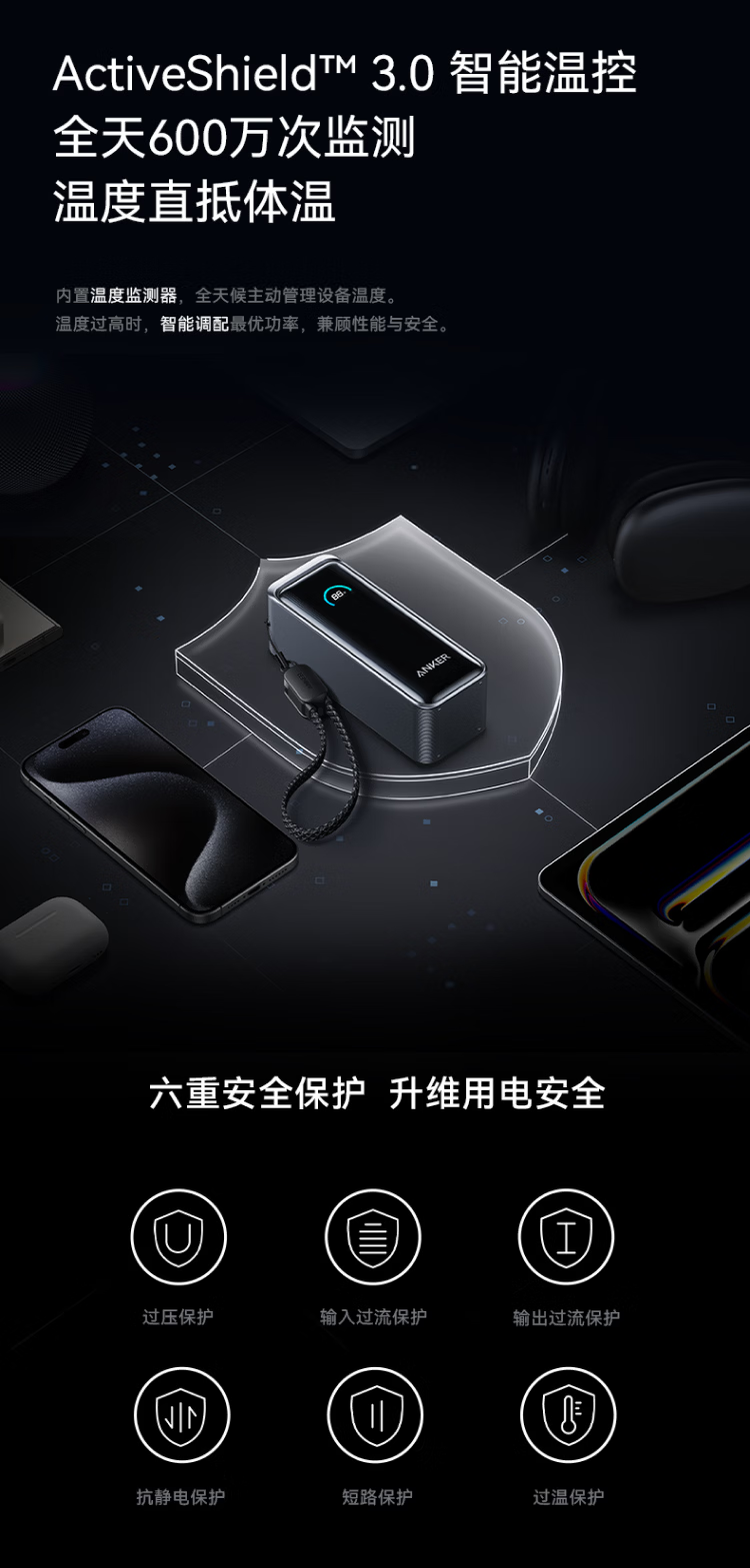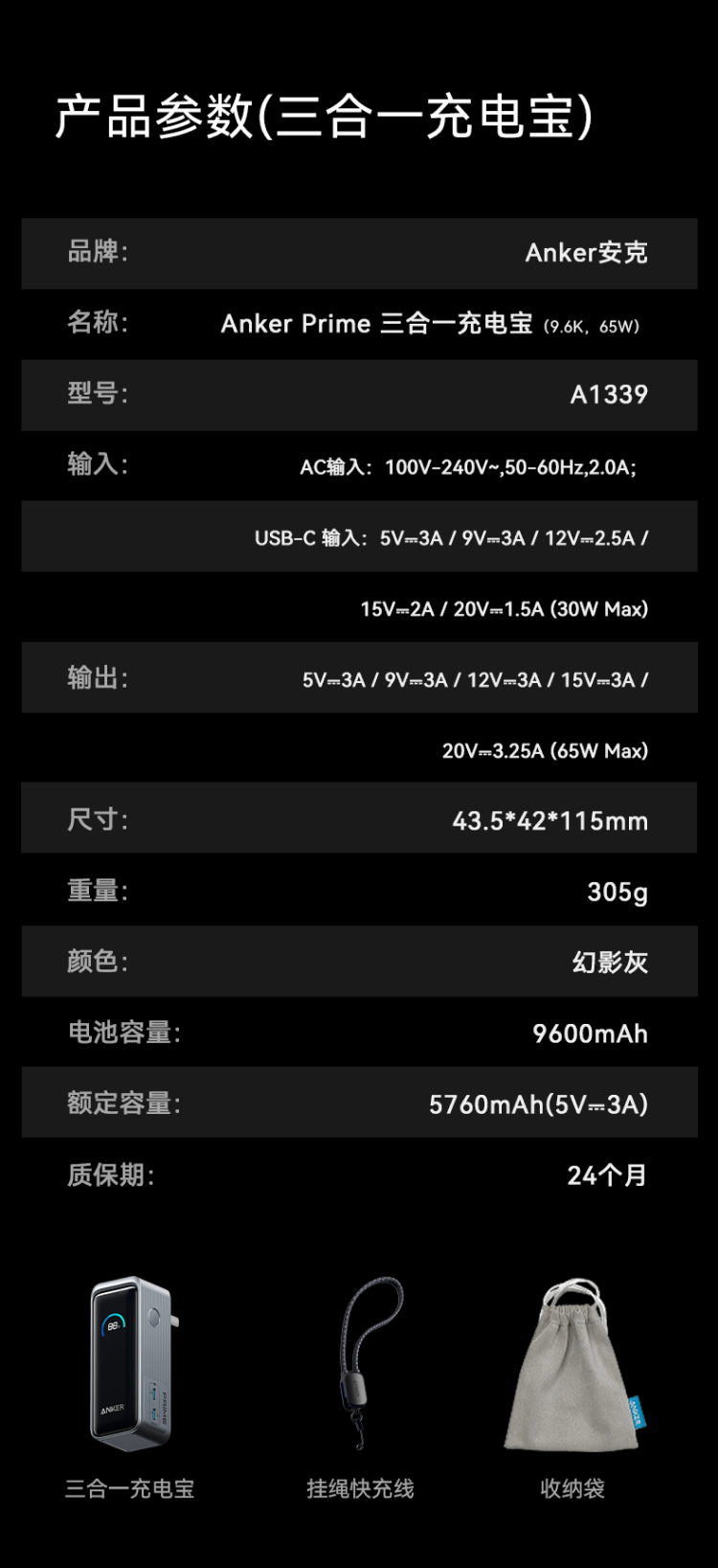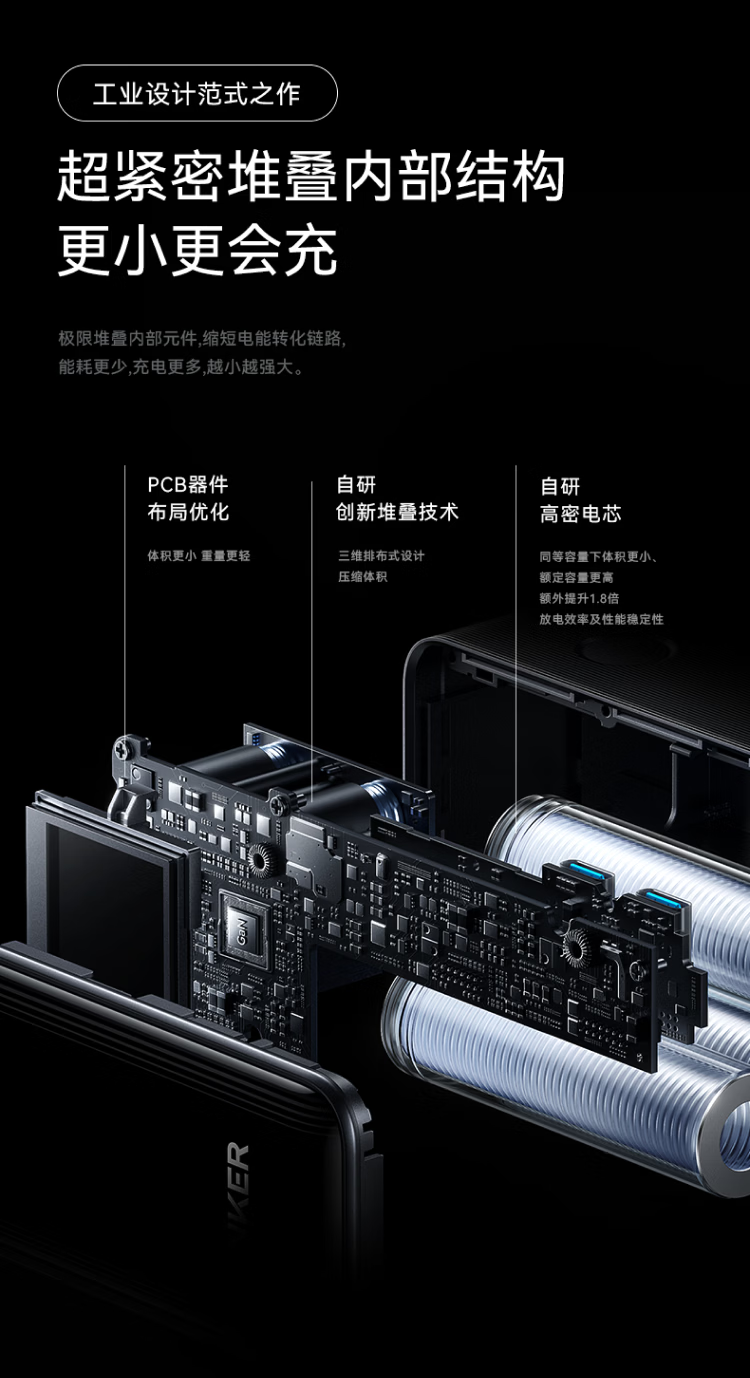 ANKERPrime【3C认证上飞机】安克充电宝自带插头器三二合一便携65W超快充笔记本移动电源户外储能电源