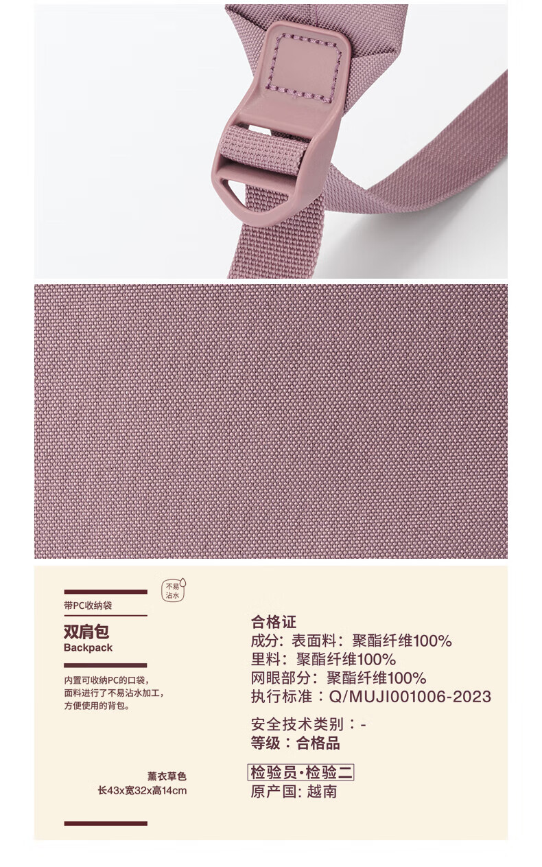 MUJI带PC收纳袋双肩包休闲包 黑色6s 大包